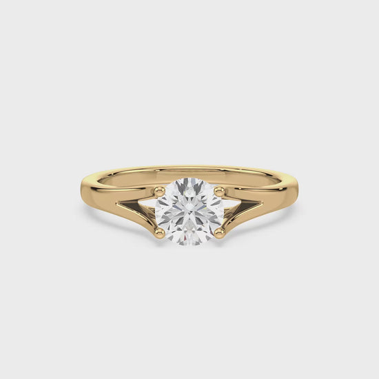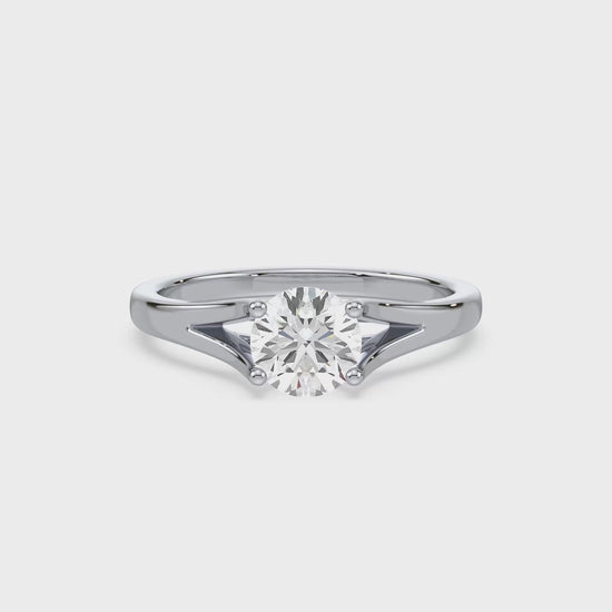 A stunning 1-carat round diamond takes centre stage in this classic solitaire ring. The simple, elegant design allows the beauty of the diamond to shine, making it a perfect choice for a proposal or special occasion.
