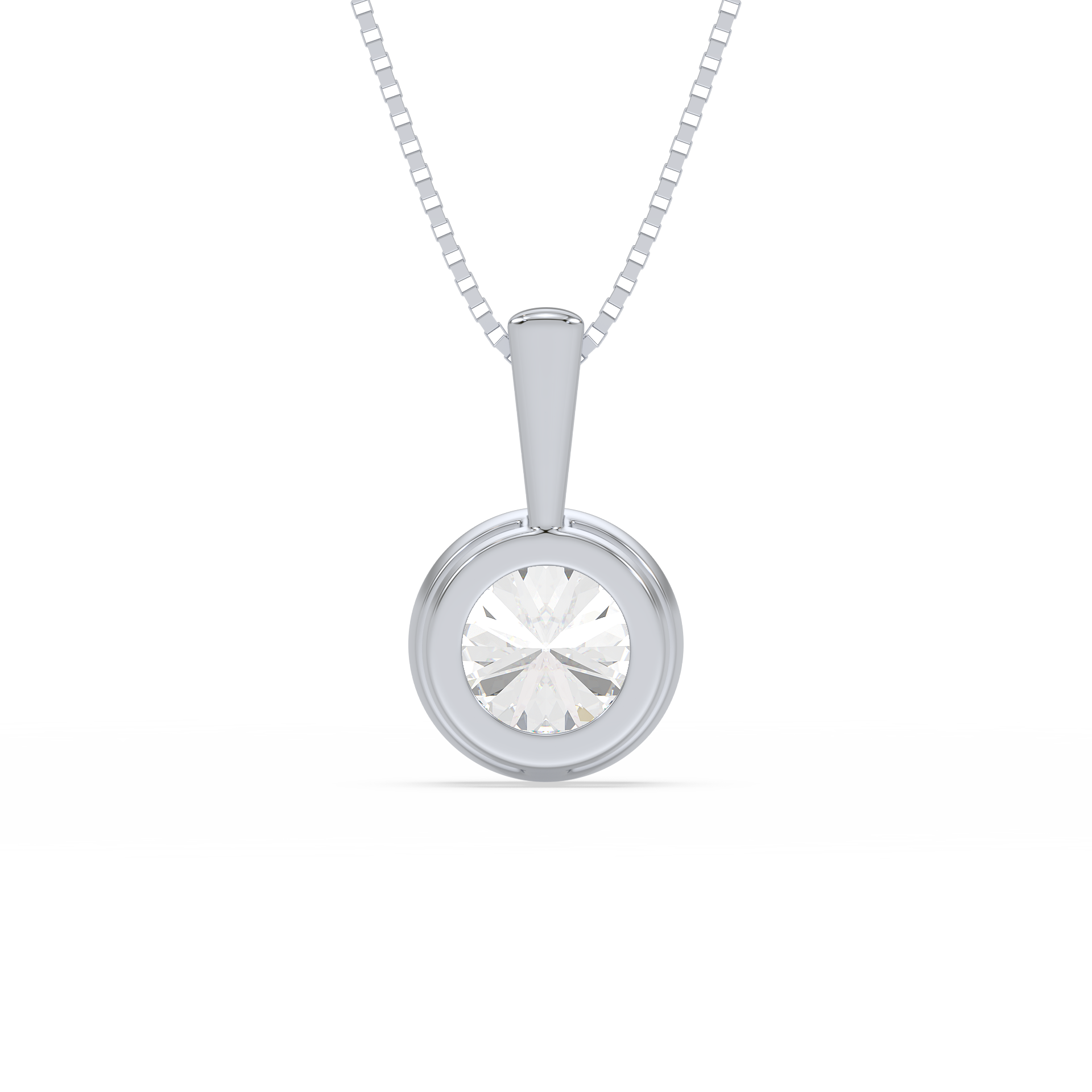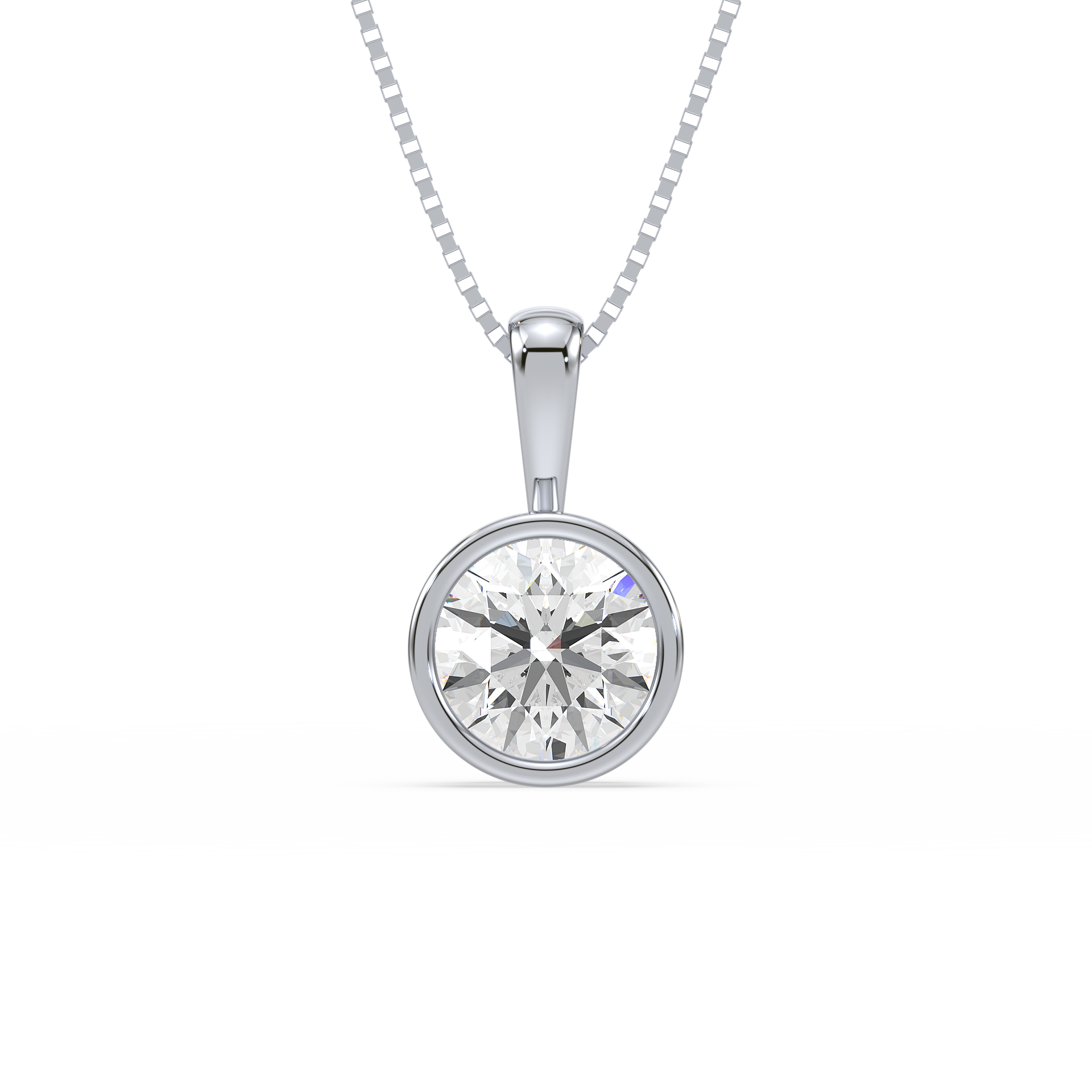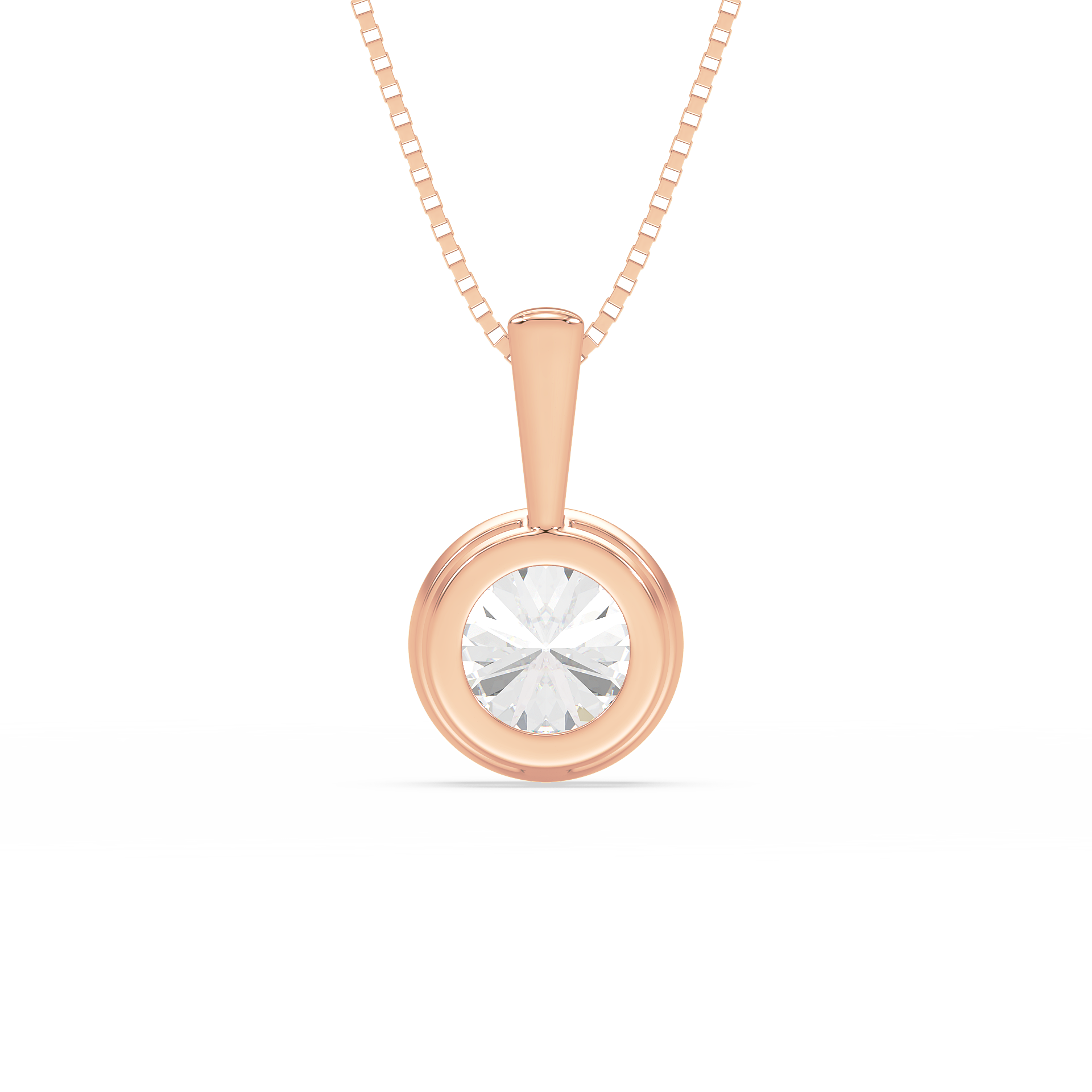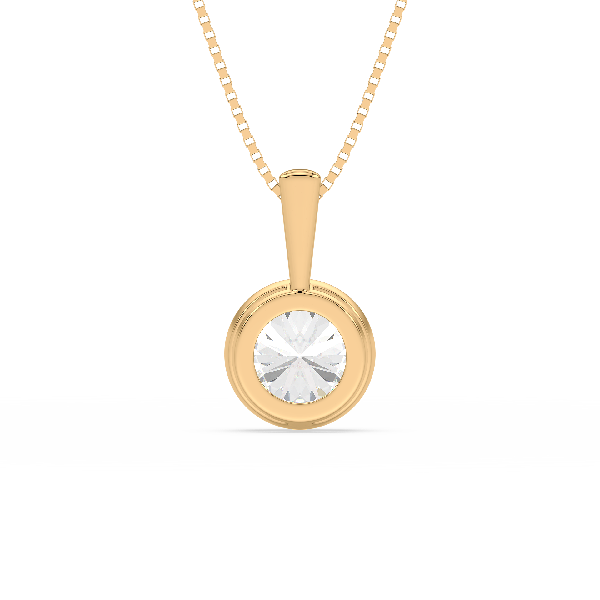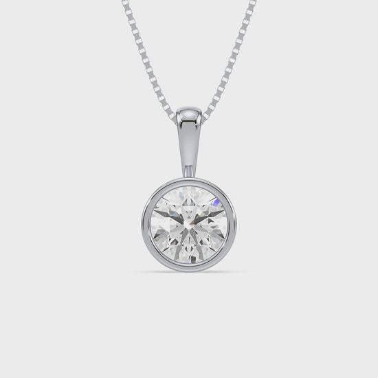 This sleek and modern pendant features a 1-carat round diamond set in a smooth bezel setting. The bezel setting creates a sleek, clean look, highlighting the diamond’s brilliance while offering a contemporary and secure way to wear it every day.