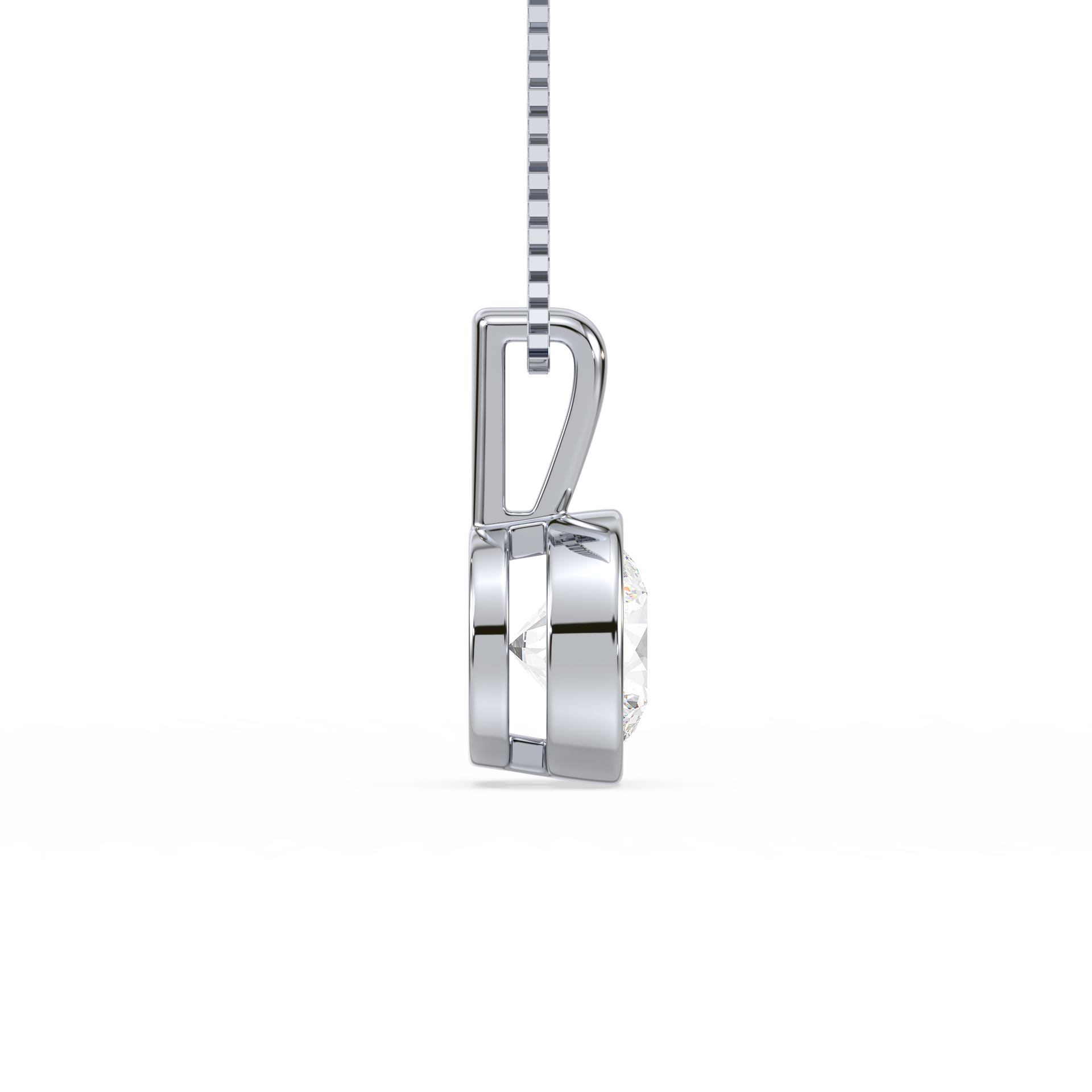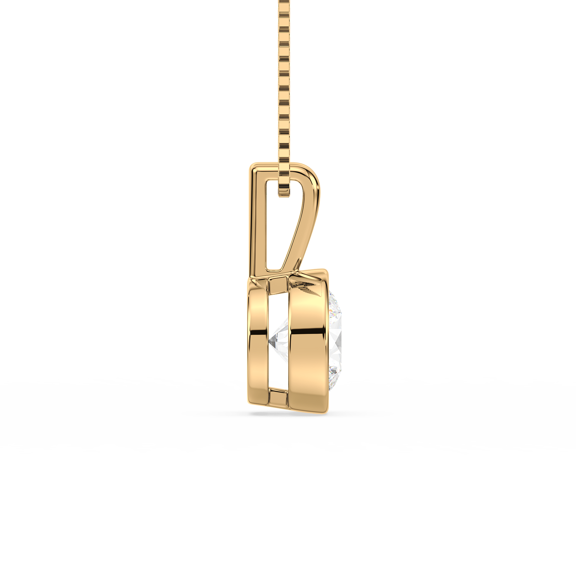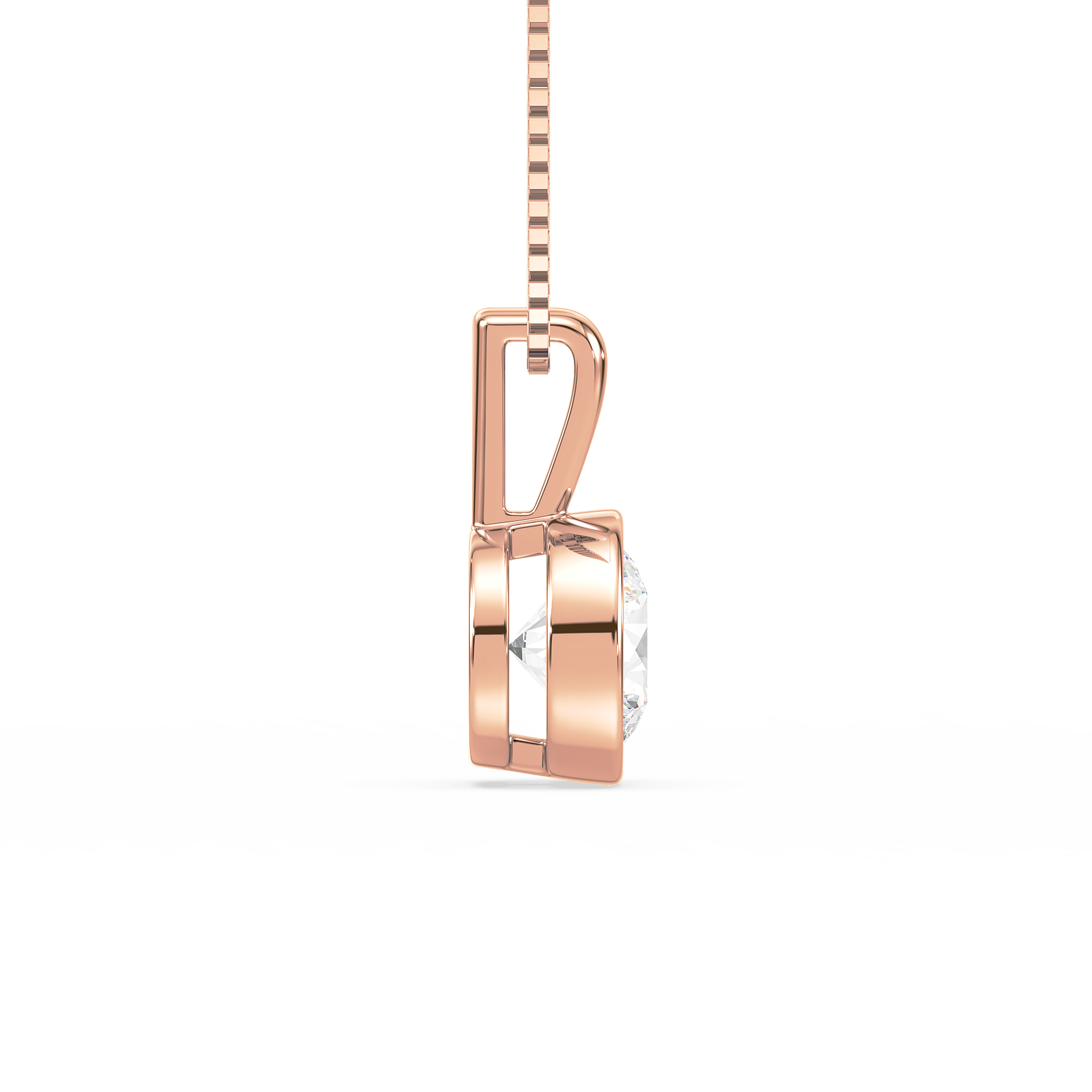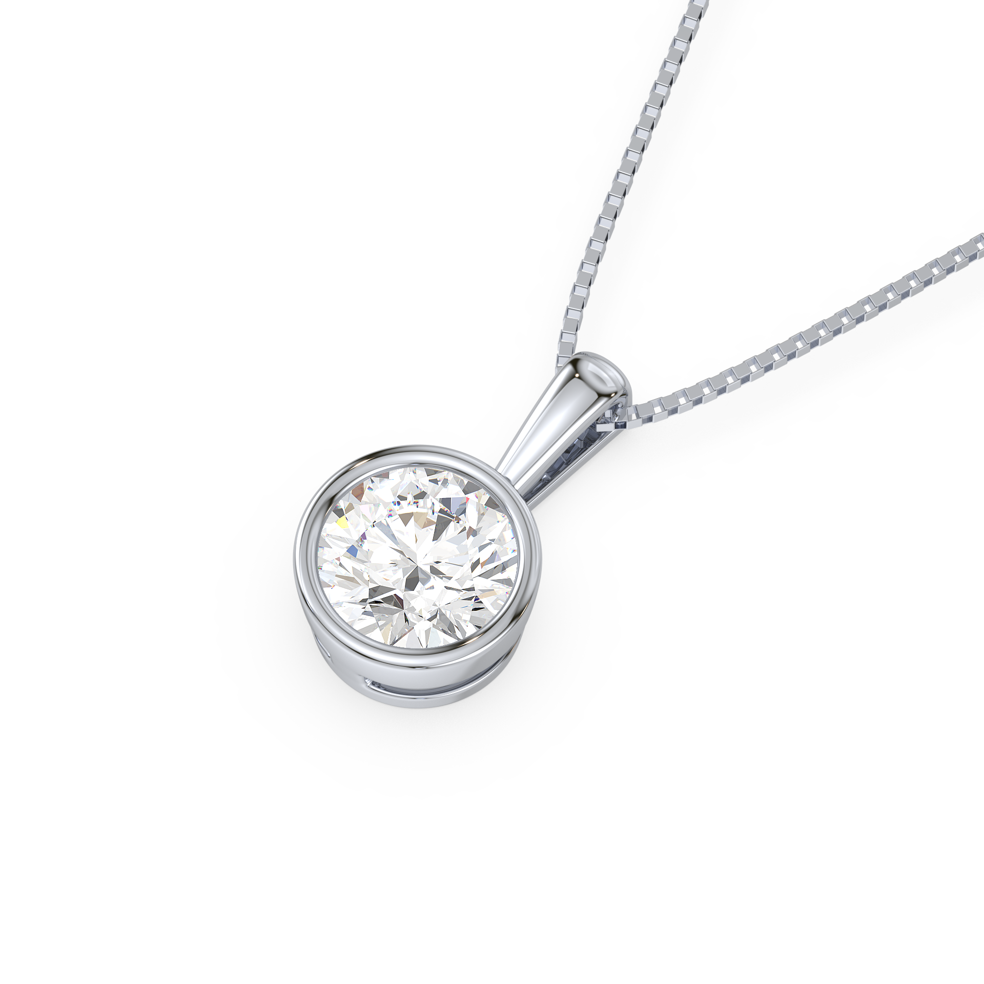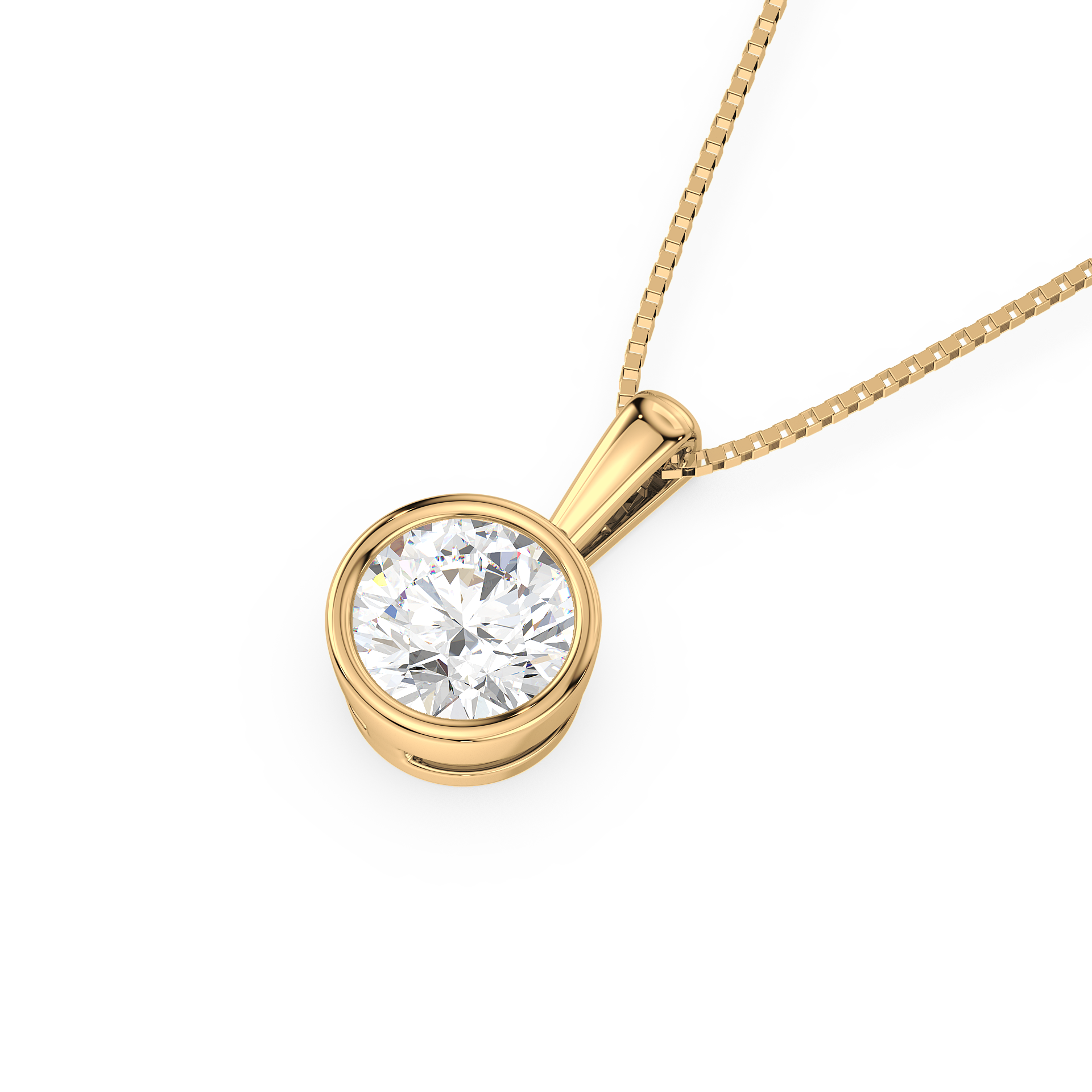 This sleek and modern pendant features a 1-carat round diamond set in a smooth bezel setting. The bezel setting creates a sleek, clean look, highlighting the diamond’s brilliance while offering a contemporary and secure way to wear it every day.