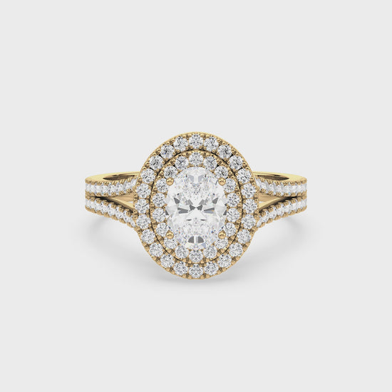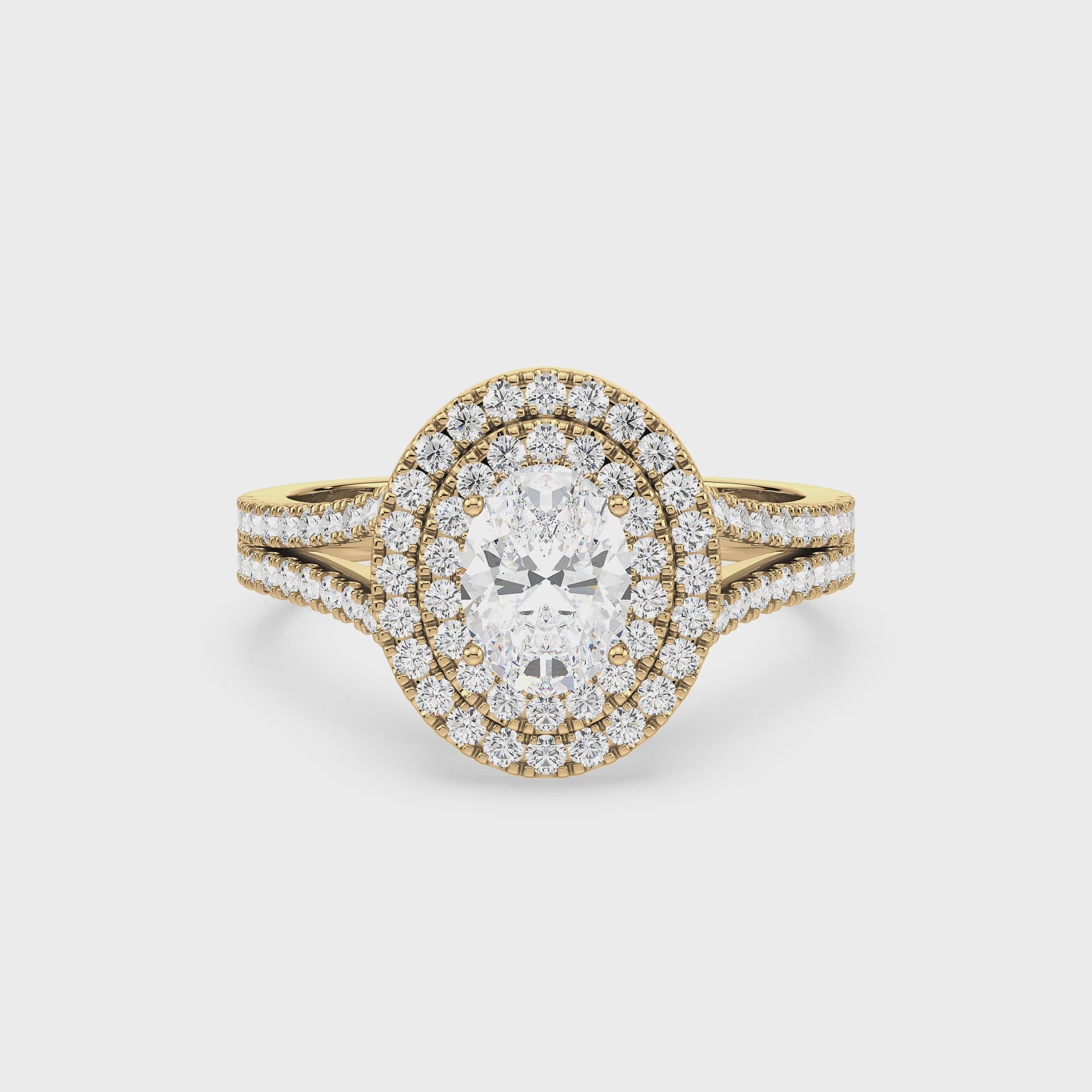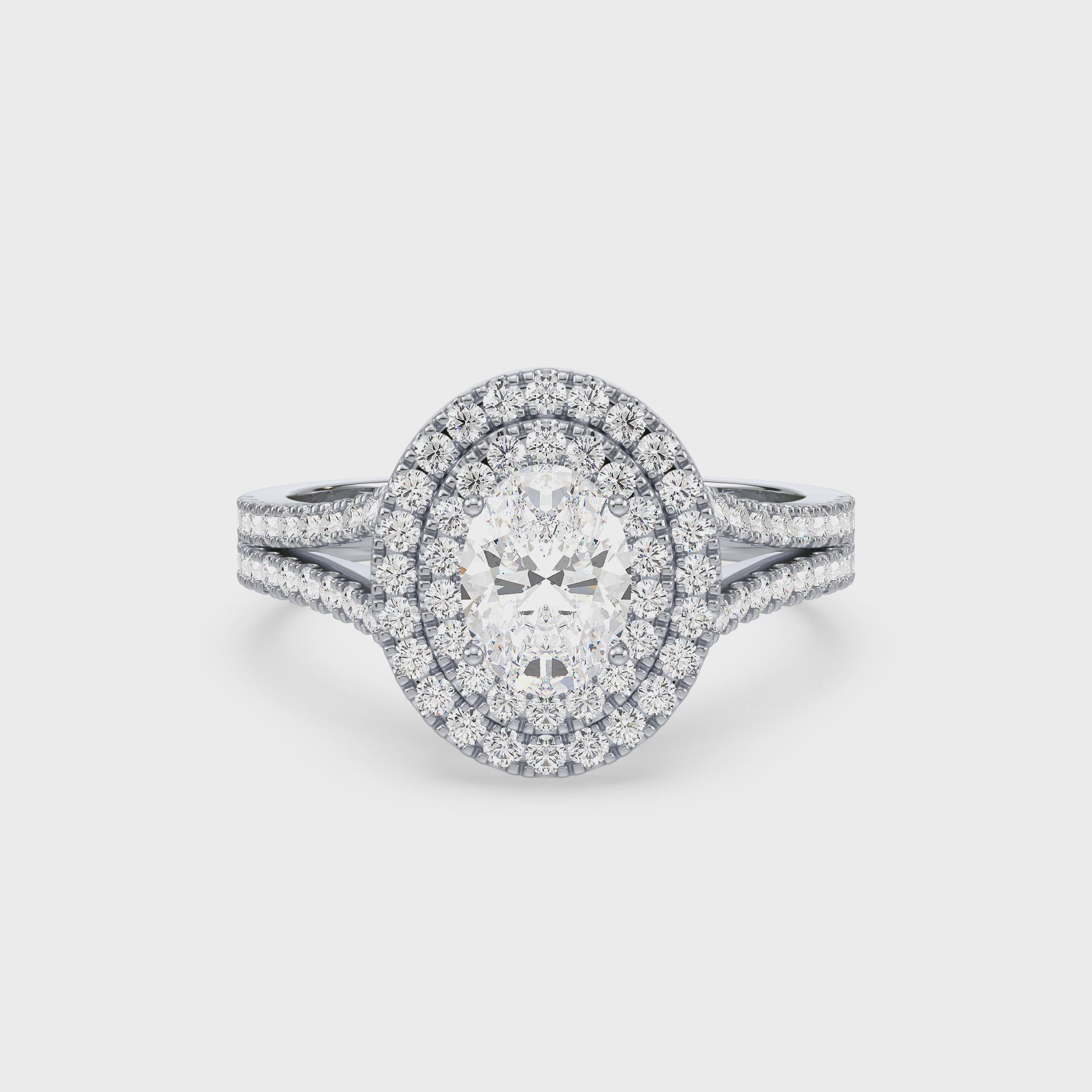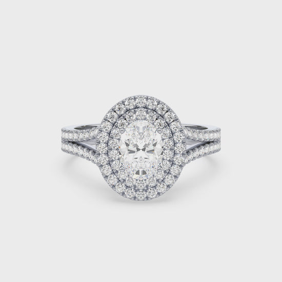 The Accented Oval Solitaire Double Band Ring features a stunning oval diamond at its centre, set against two elegantly layered bands. Accentuated with diamond details, this ring blends modern flair with classic elegance for a truly unique look.