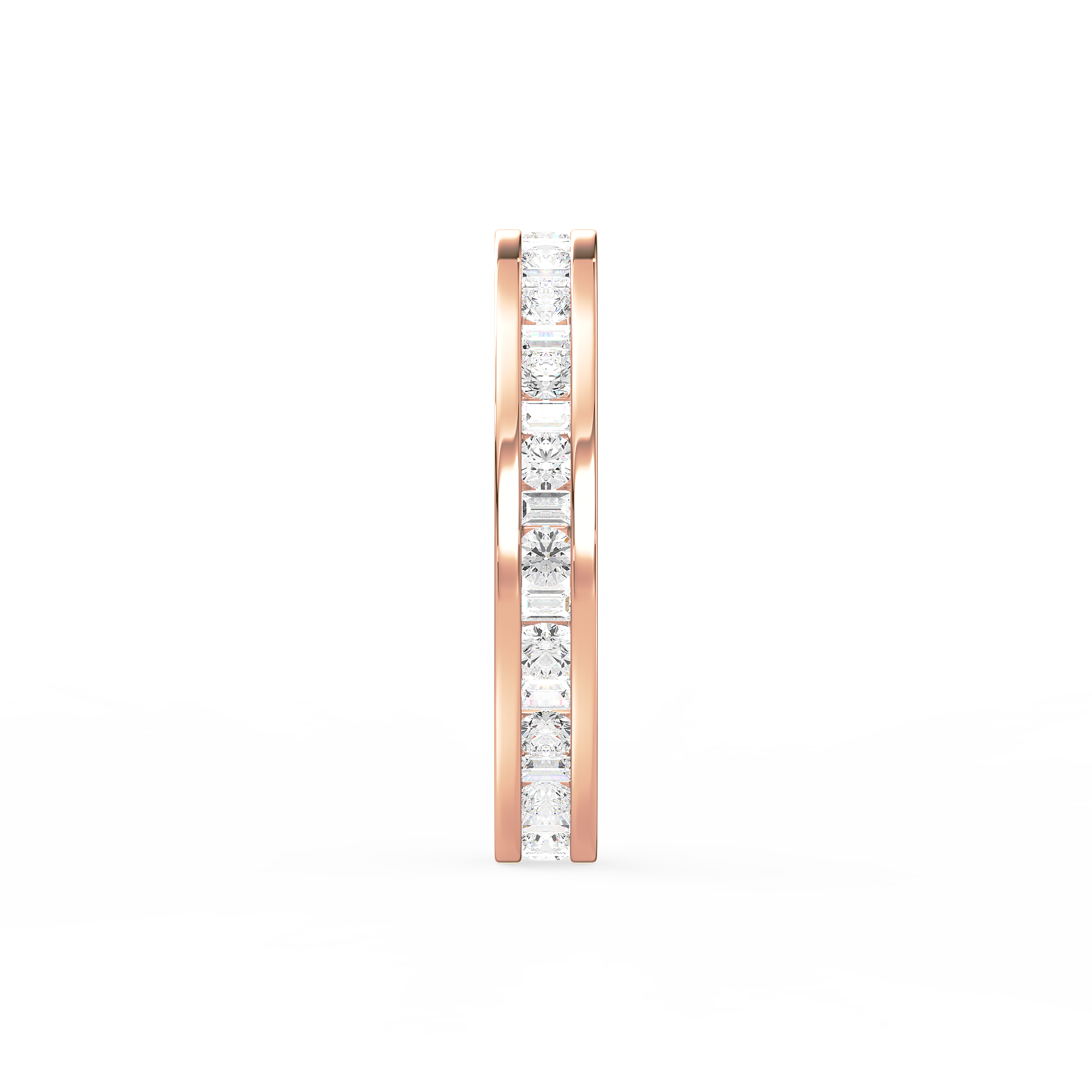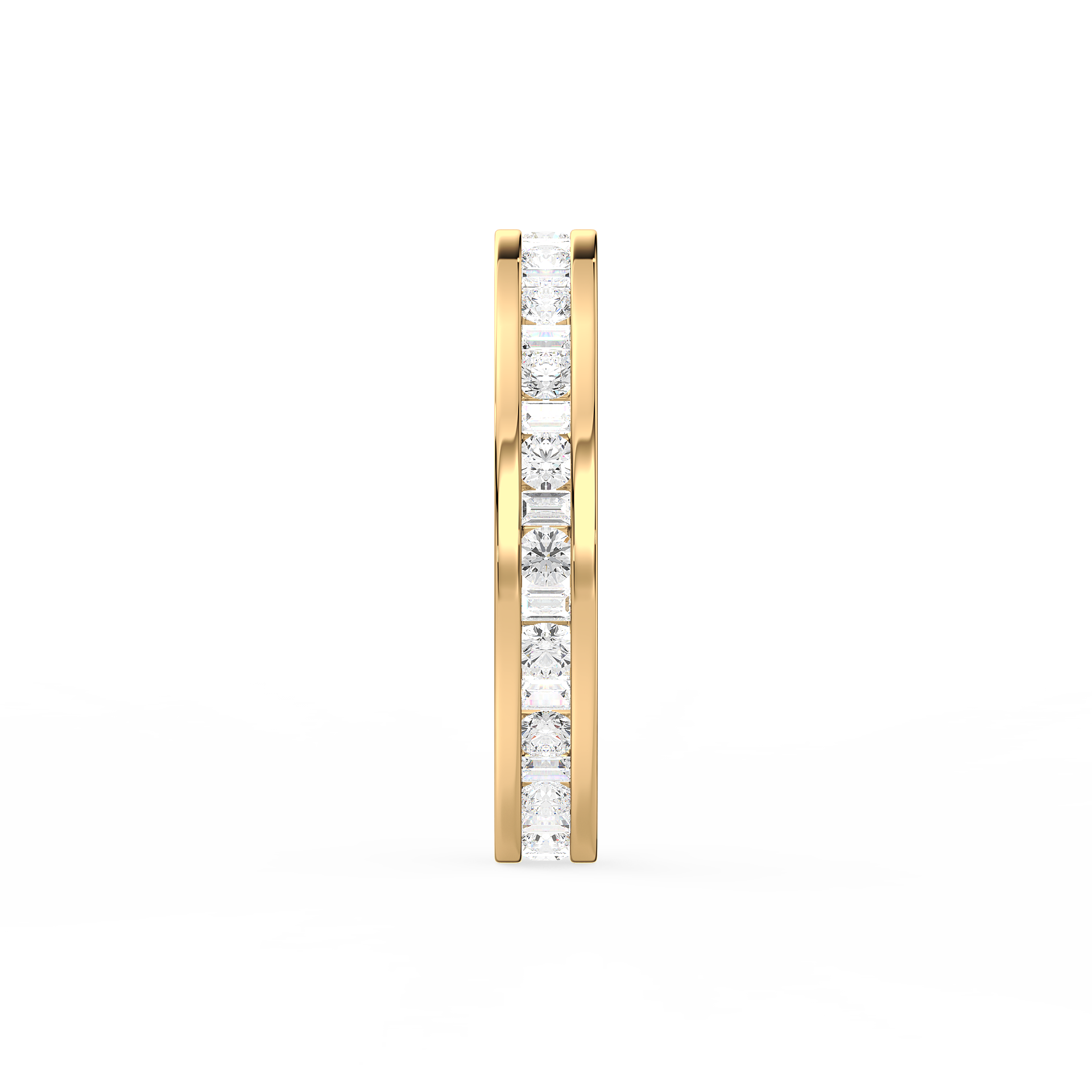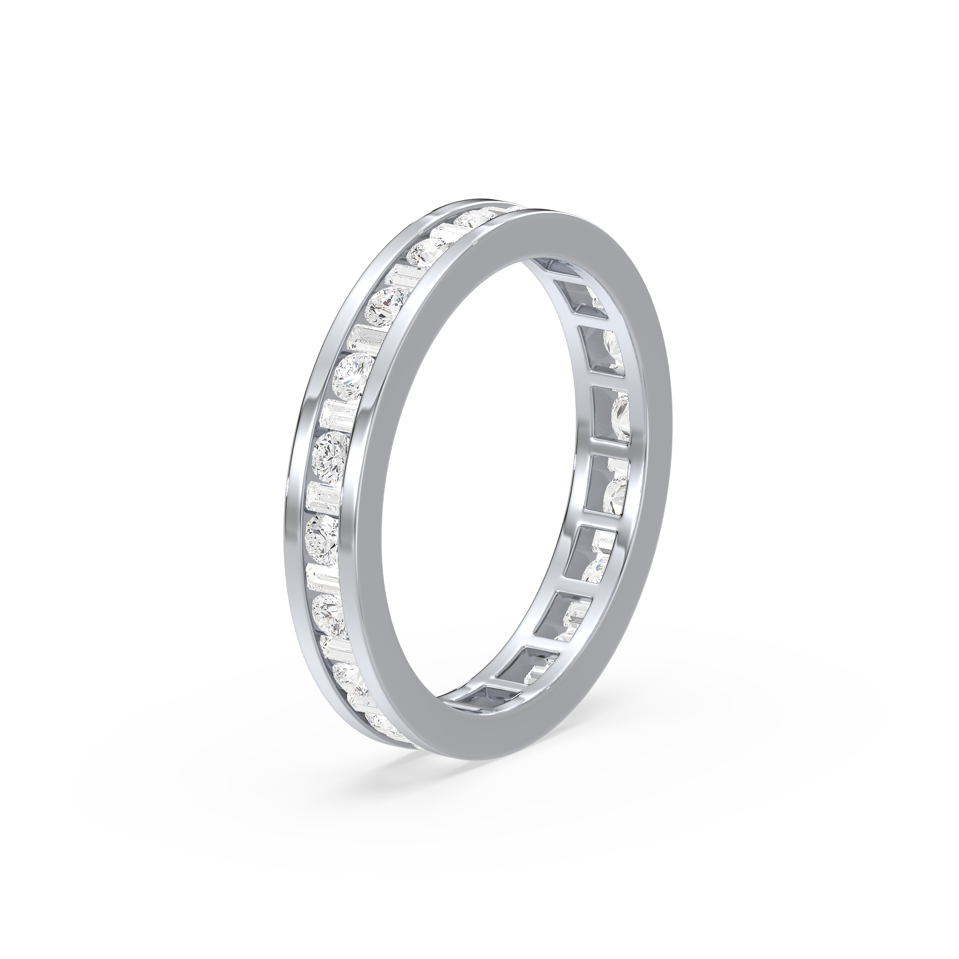 This Baguette-Round Channel Eternity Ring showcases alternating baguette and round diamonds, all securely set in a channel setting for a sleek, contemporary look. Its continuous design creates a timeless symbol of love that shines from every angle.