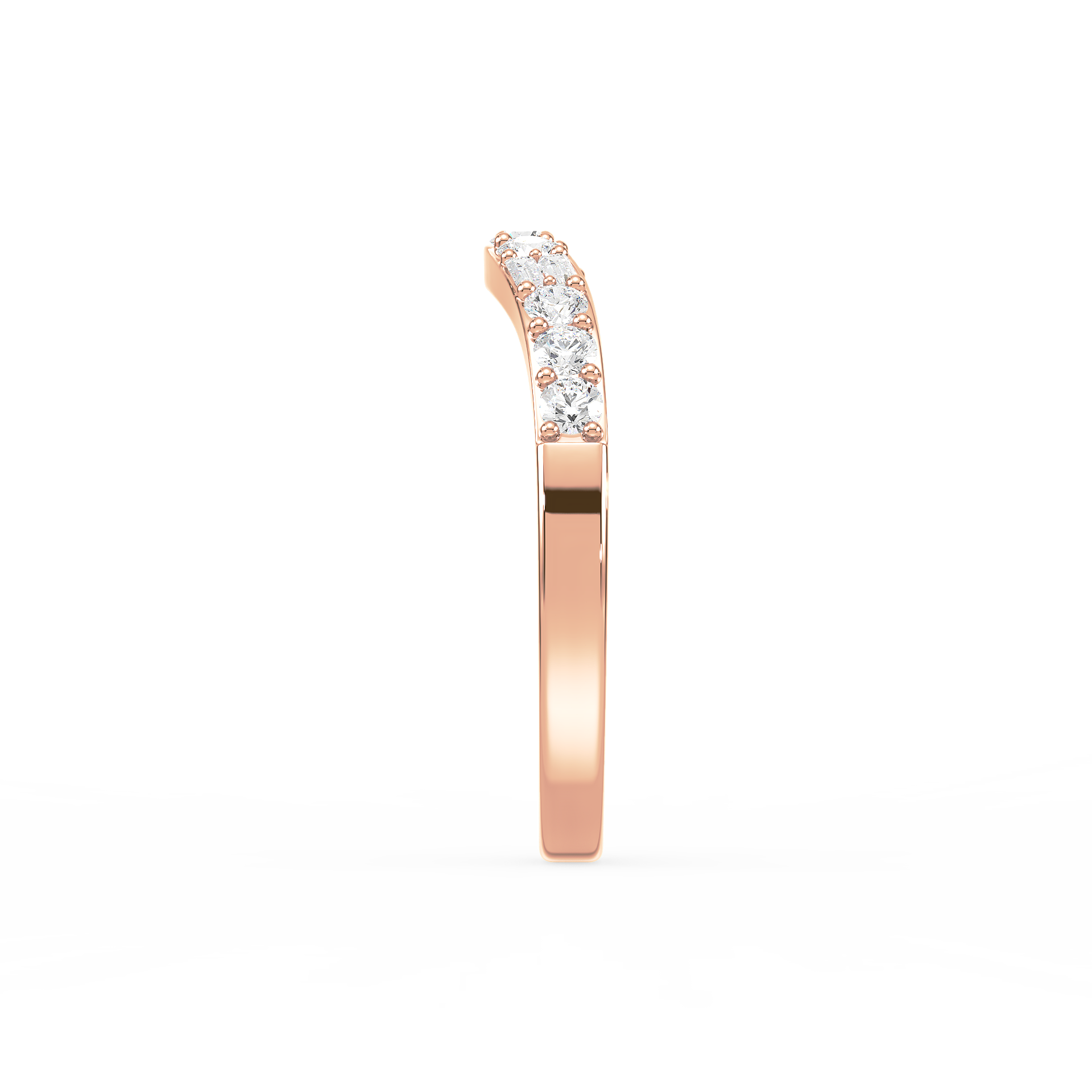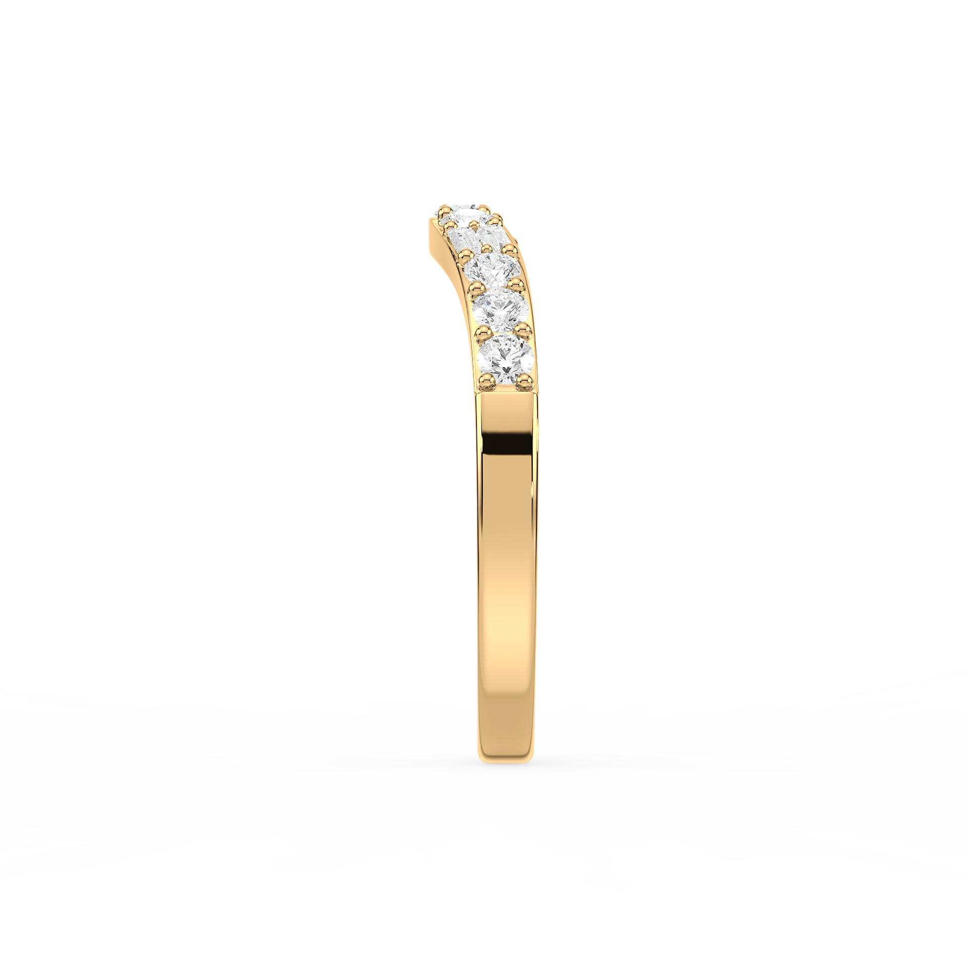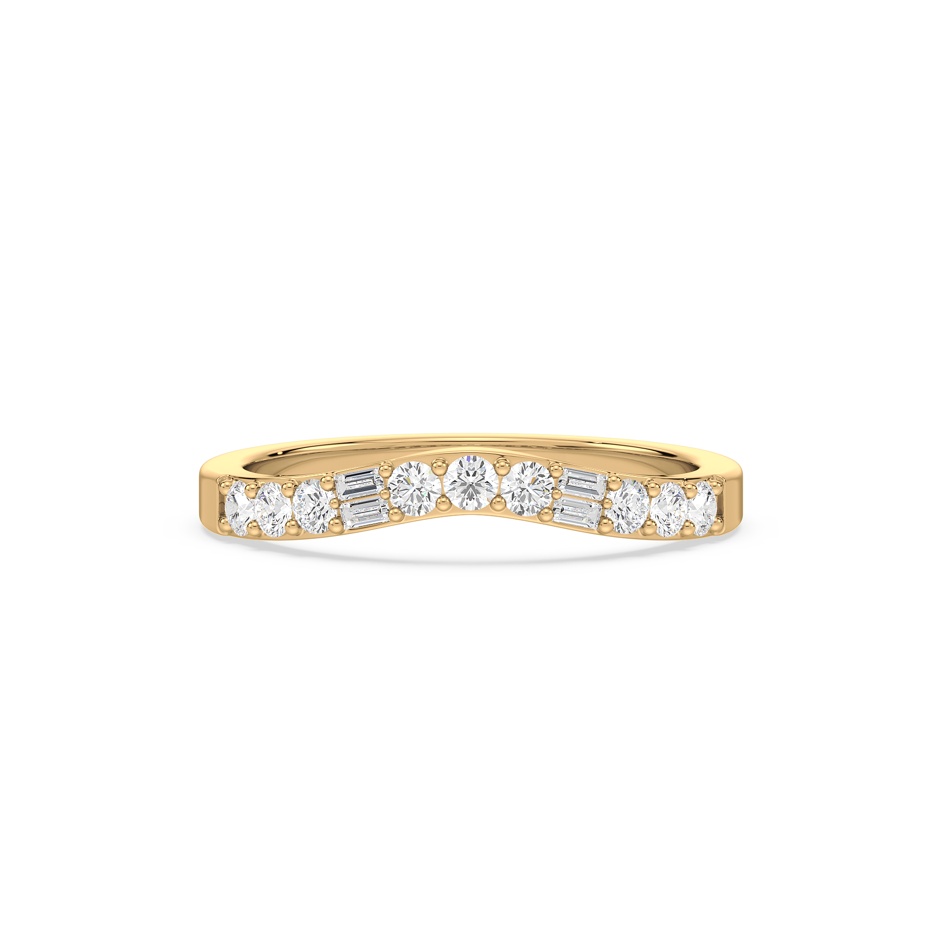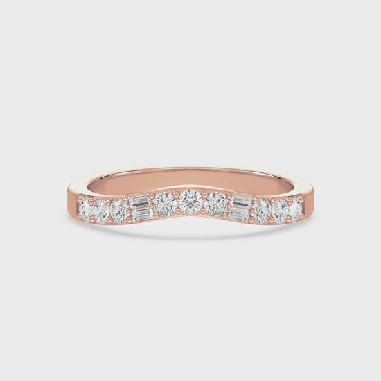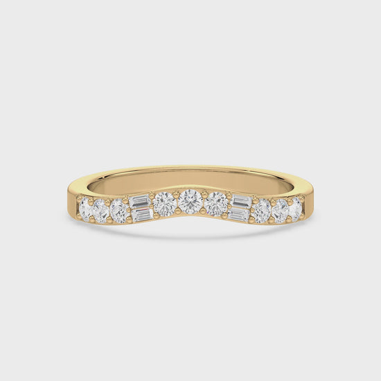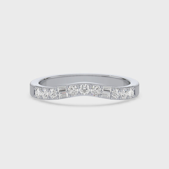 The Chevron Half Eternity Band features a distinctive V-shaped design, adorned with sparkling diamonds along the sides. This elegant and contemporary half eternity ring adds a touch of flair, making it a stylish symbol of lasting commitment.