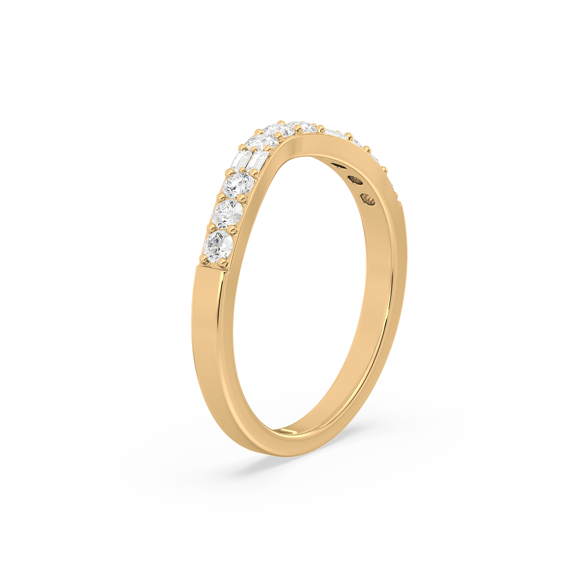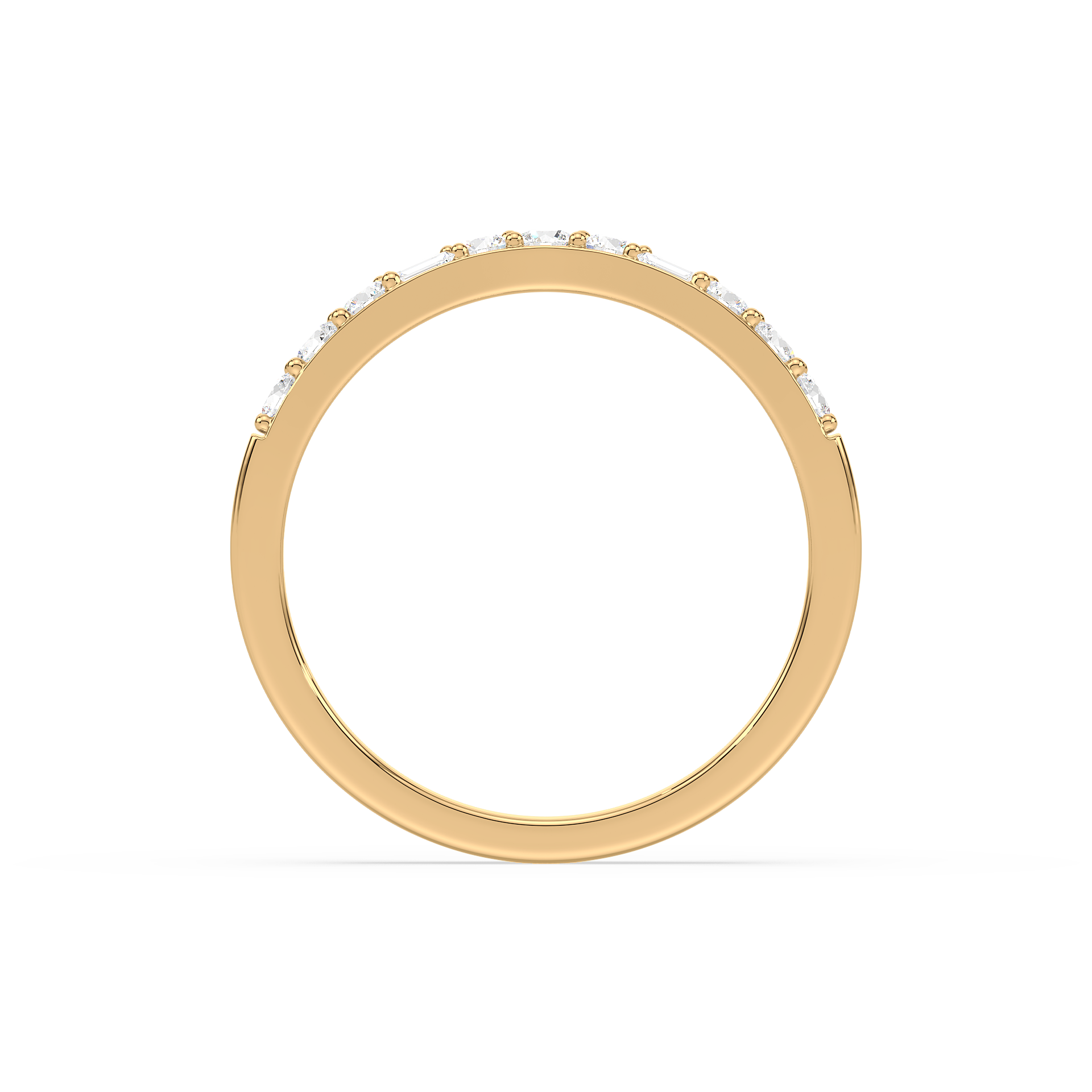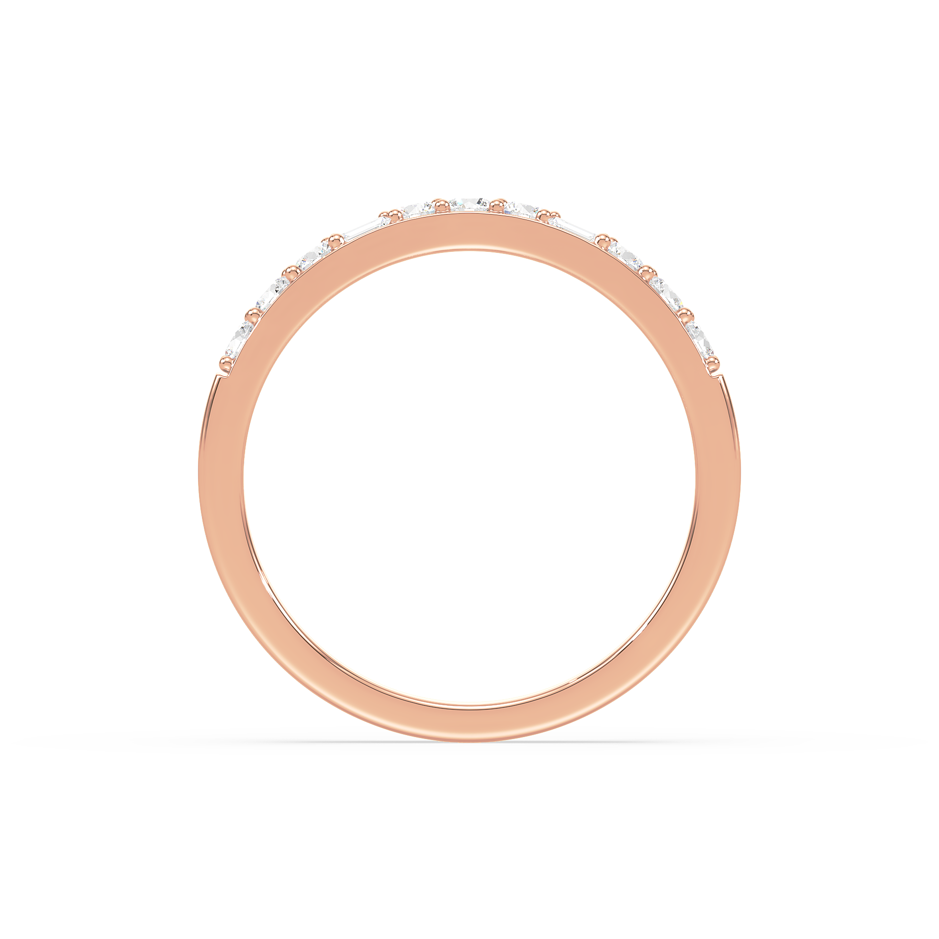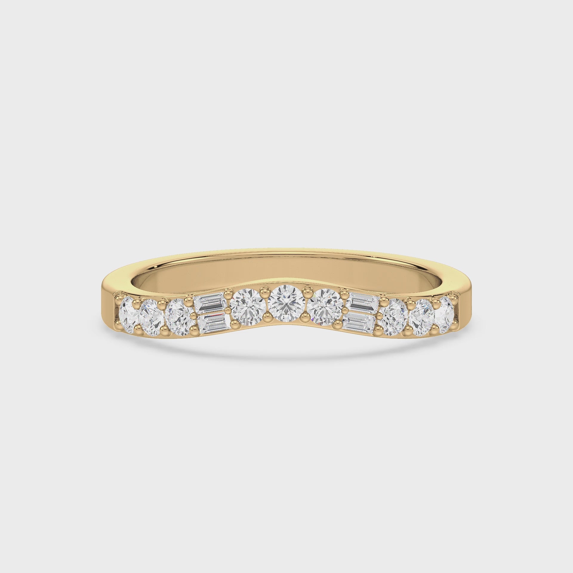 The Chevron Half Eternity Band features a distinctive V-shaped design, adorned with sparkling diamonds along the sides. This elegant and contemporary half eternity ring adds a touch of flair, making it a stylish symbol of lasting commitment.