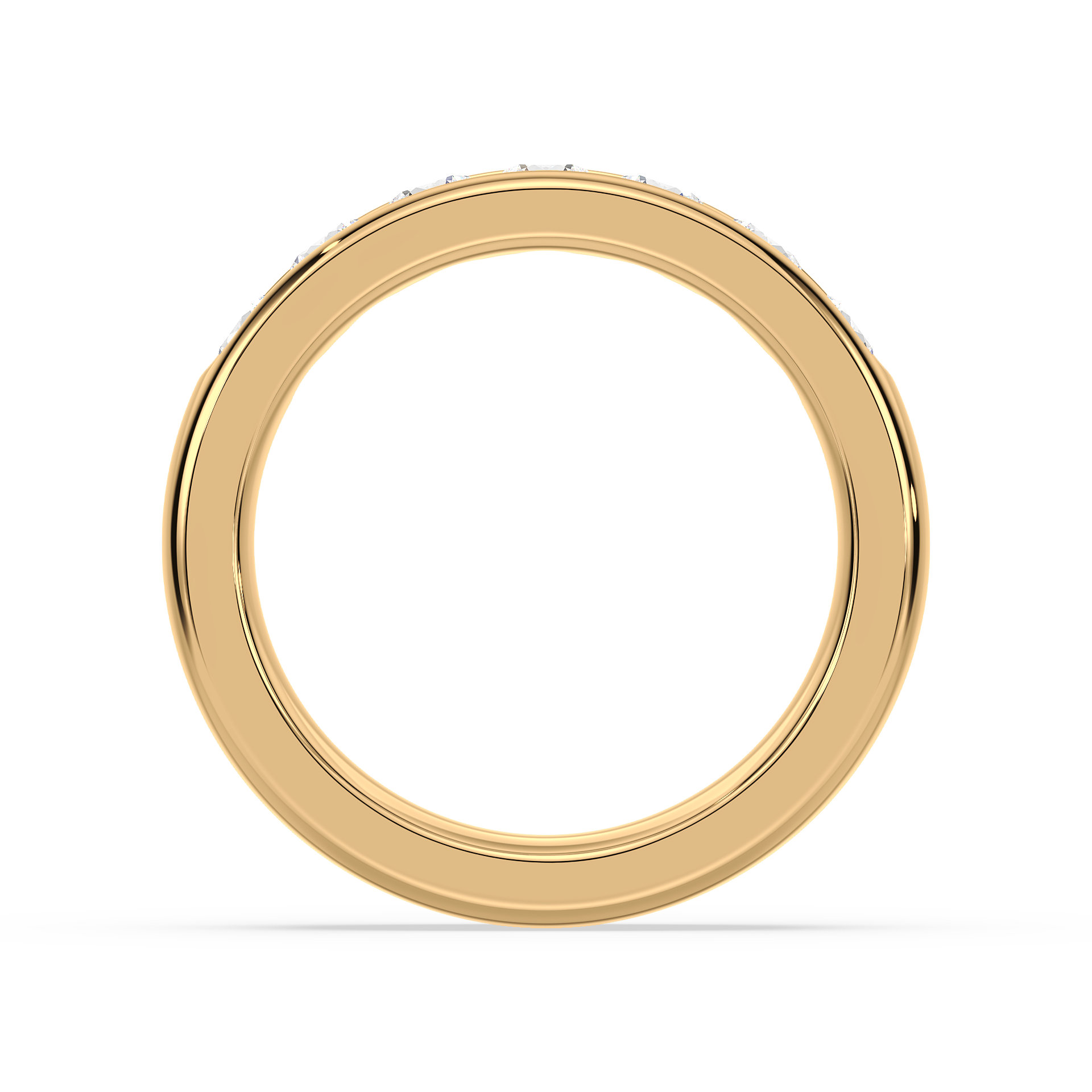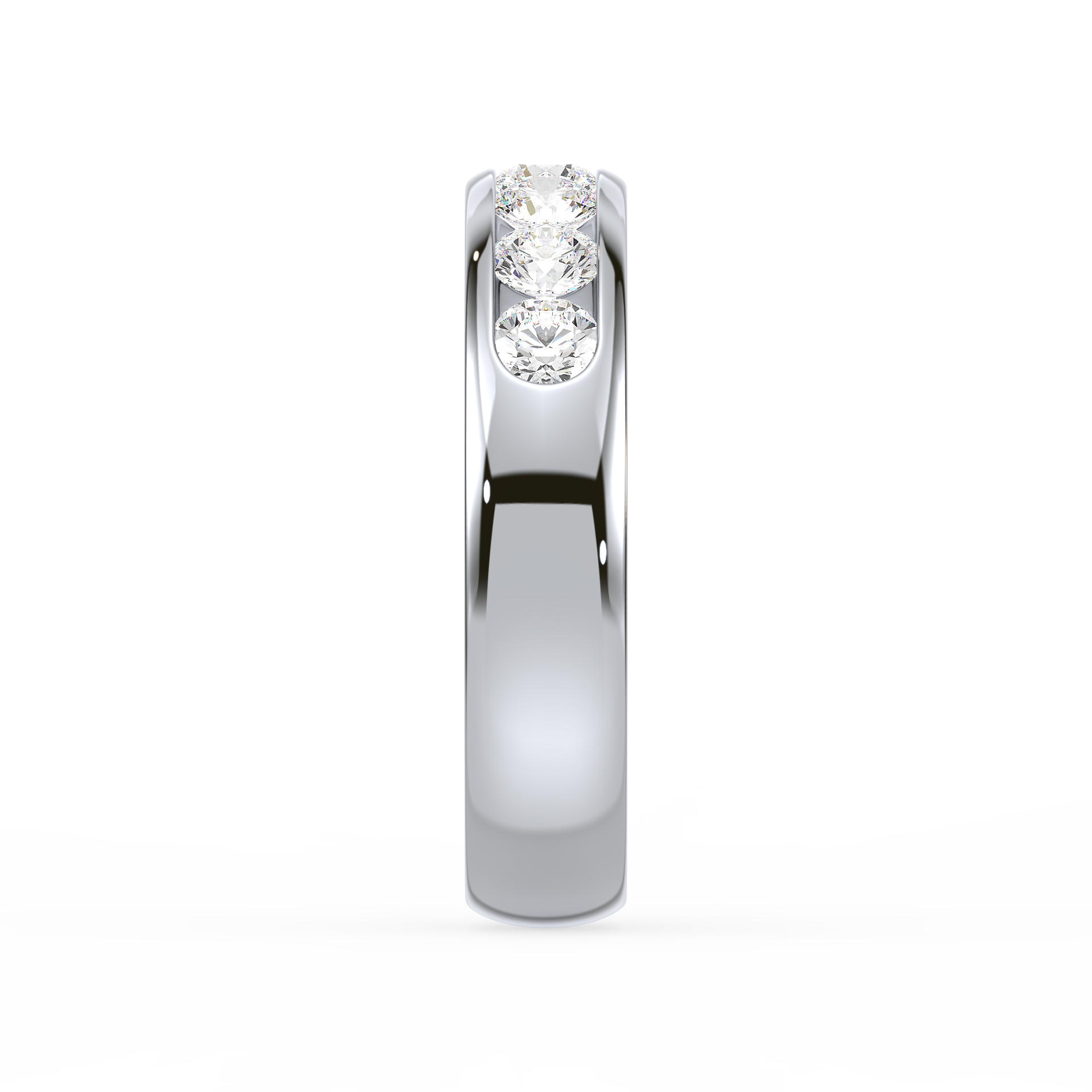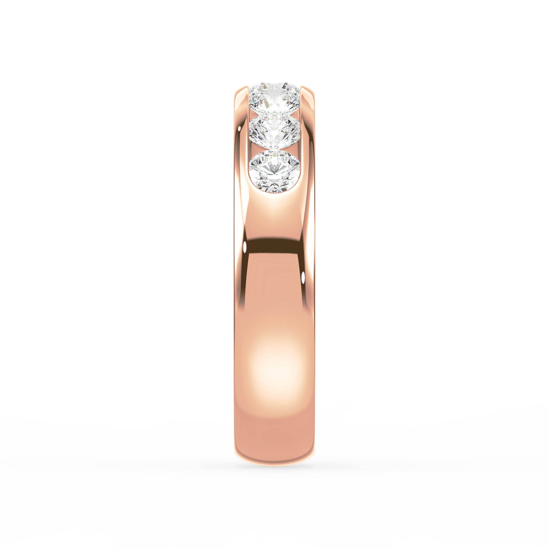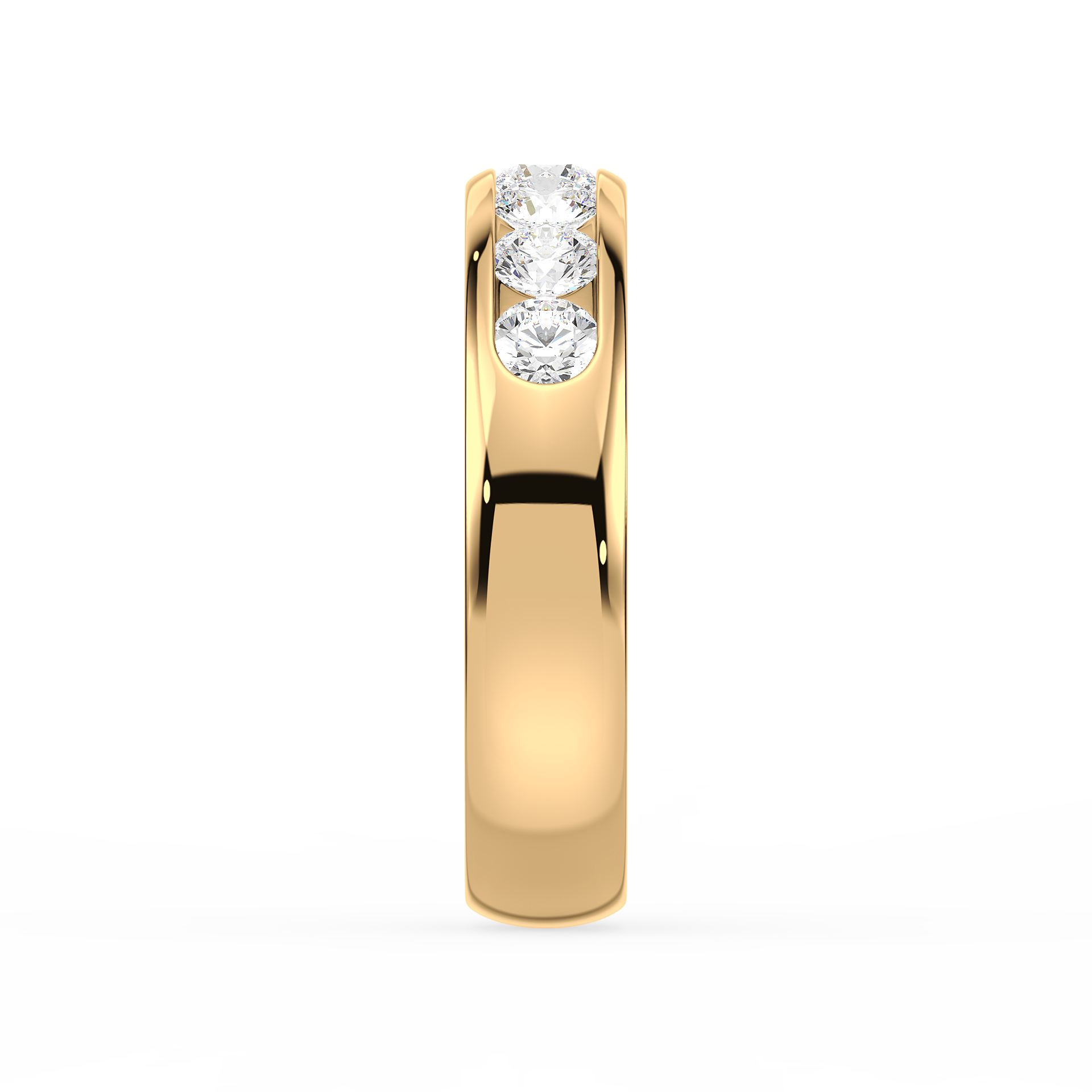 This channel-set seven-stone ring features a row of sparkling diamonds arranged in a sleek, seamless design. Ideal as an anniversary band or a stand-alone piece, its modern elegance is perfect for everyday wear.