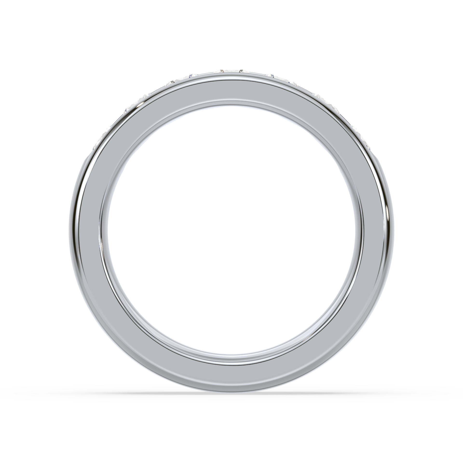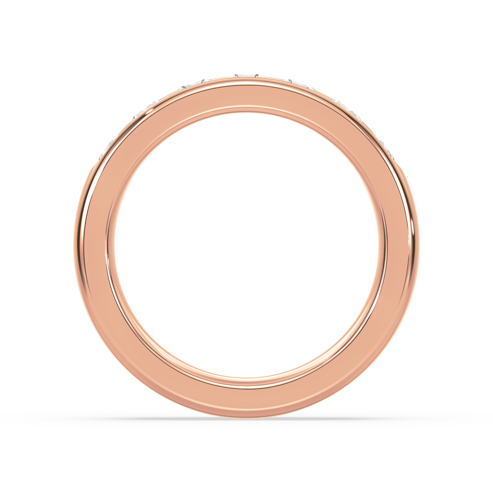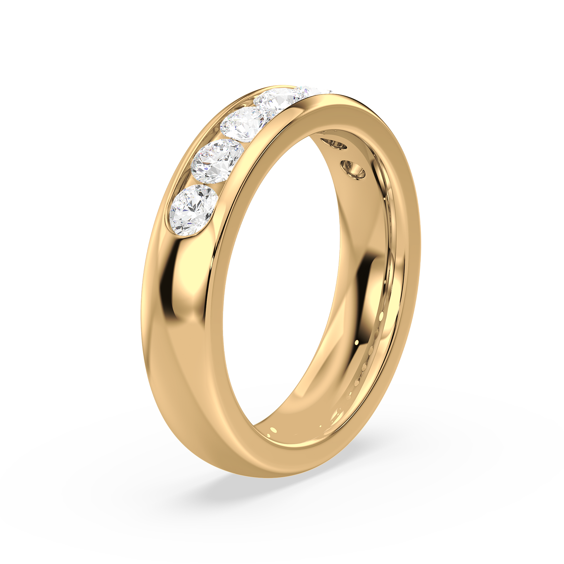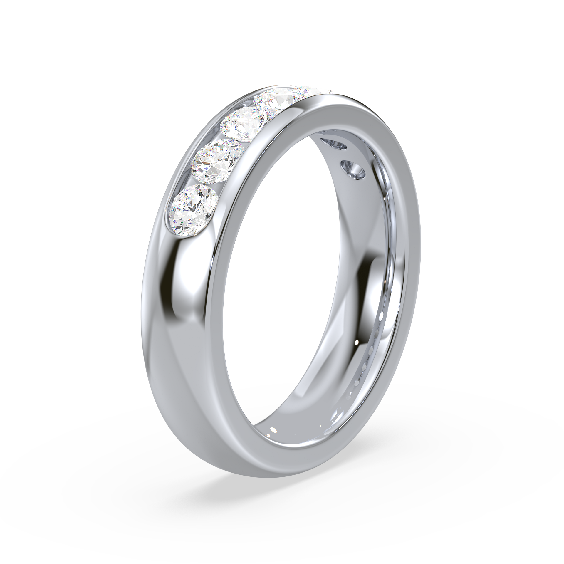 This channel-set seven-stone ring features a row of sparkling diamonds arranged in a sleek, seamless design. Ideal as an anniversary band or a stand-alone piece, its modern elegance is perfect for everyday wear.