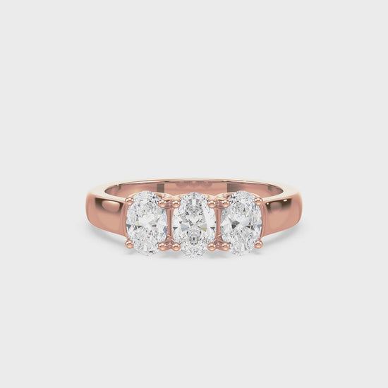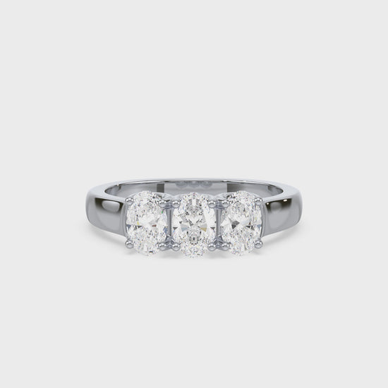 The Classic Oval Trilogy Ring features a stunning trio of oval diamonds, each set in a sophisticated band. A symbol of the past, present, and future, this elegant design captures timeless beauty while celebrating the enduring power of love.