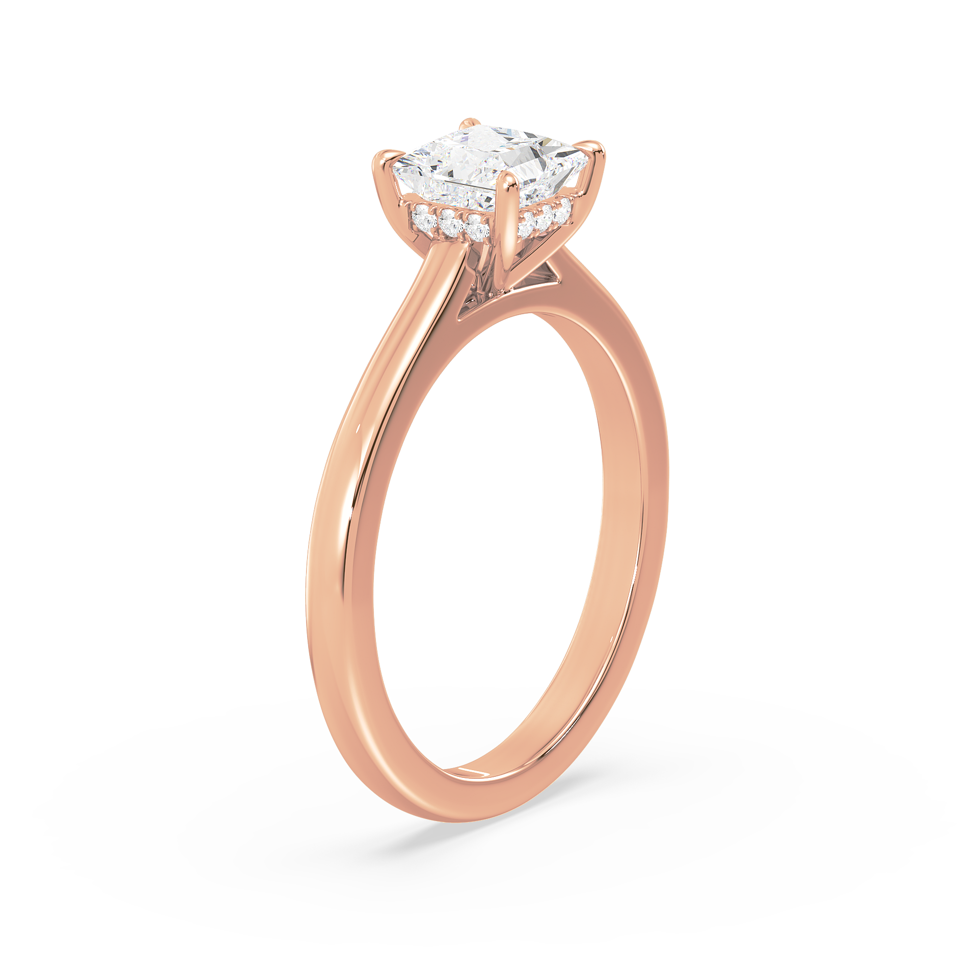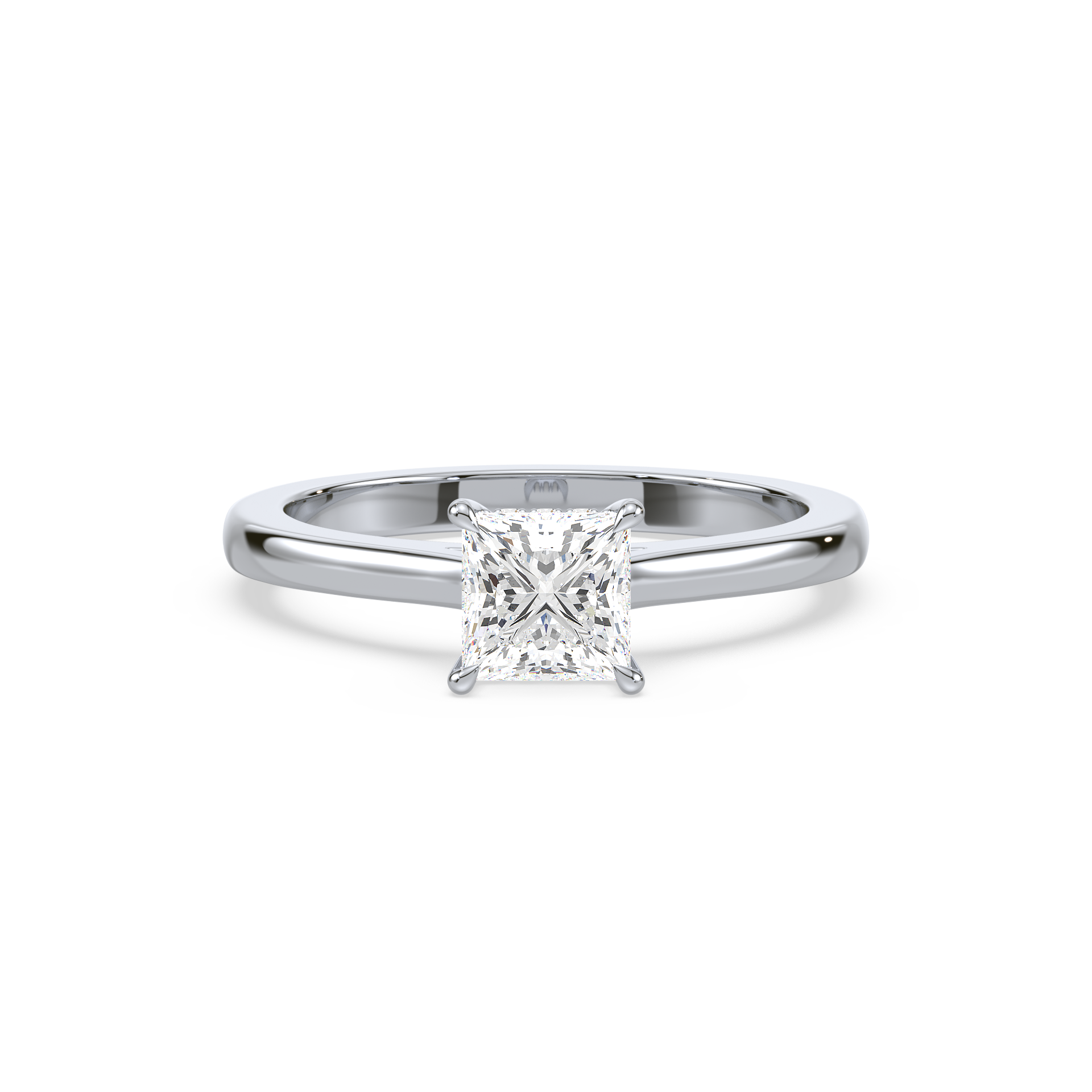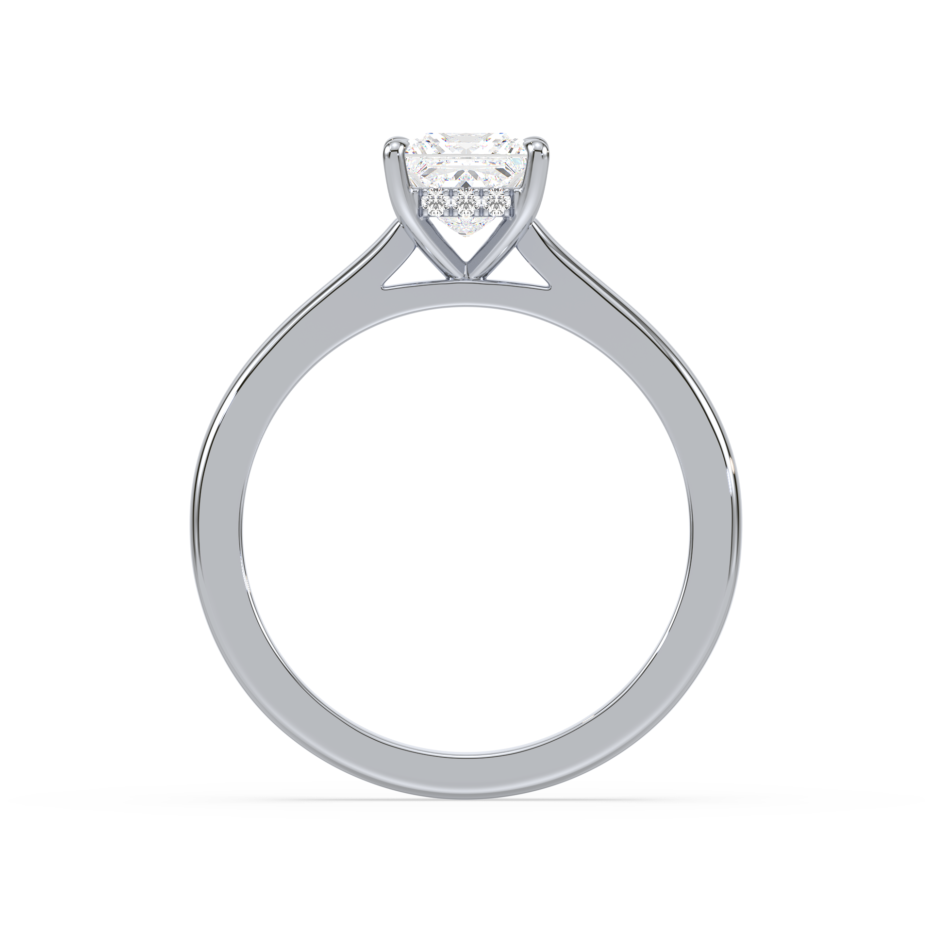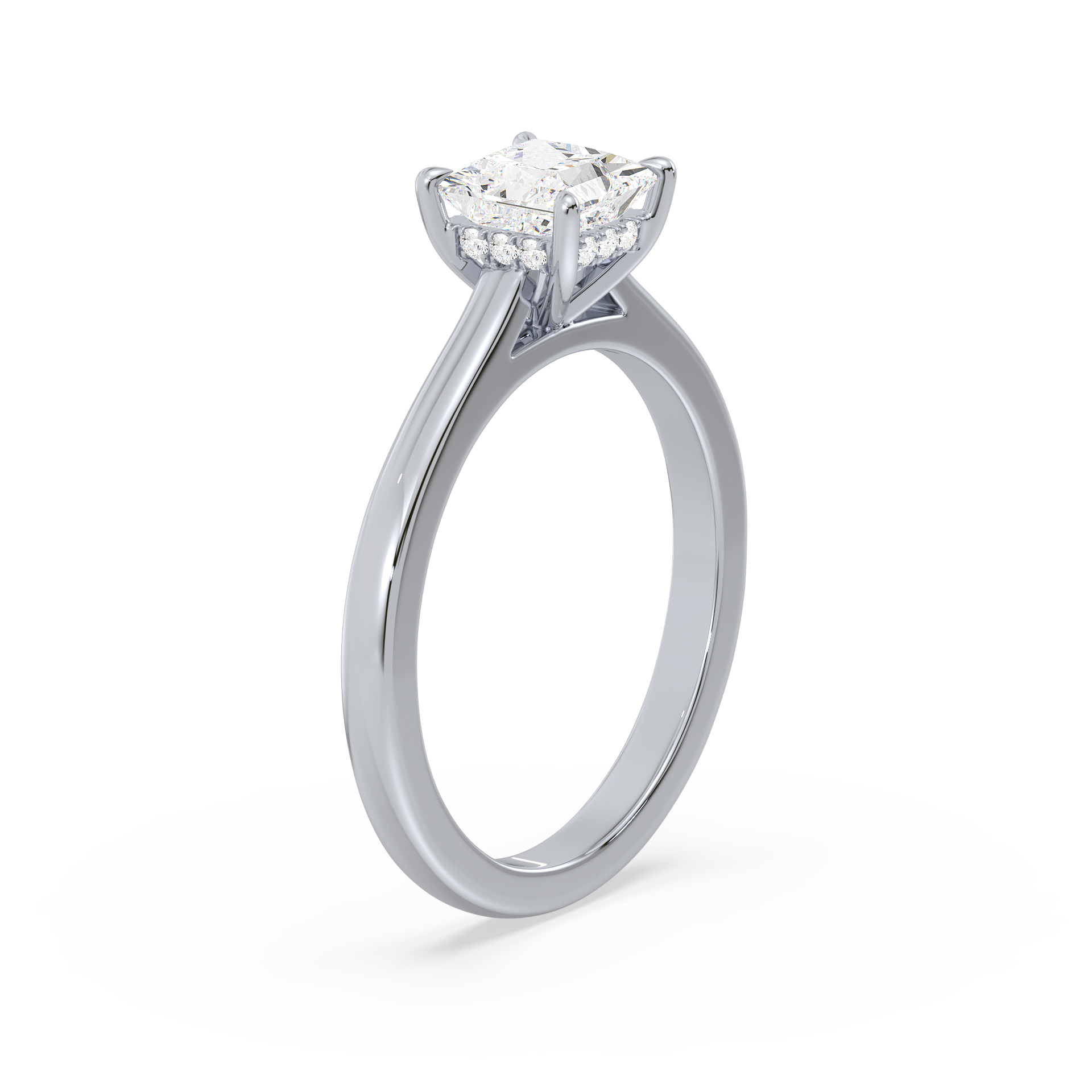 The Classic Princess Halo Ring features a stunning princess-cut diamond surrounded by a halo of smaller diamonds. This elegant design combines the geometric beauty of the princess cut with the sparkle of the halo, creating a timeless piece of jewellery.