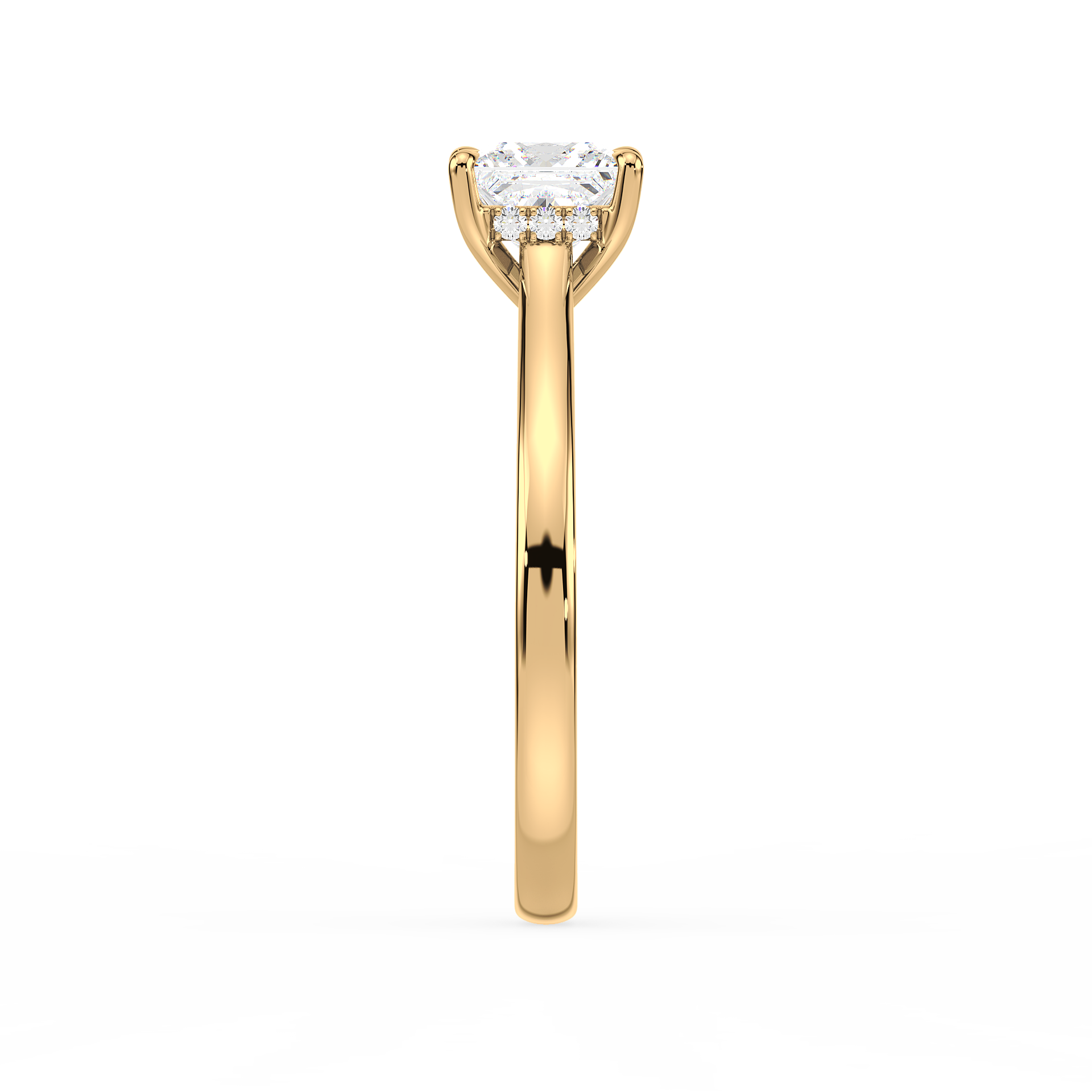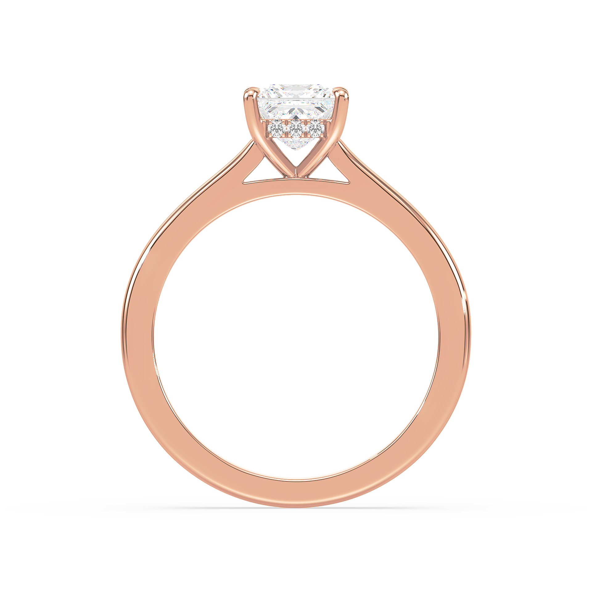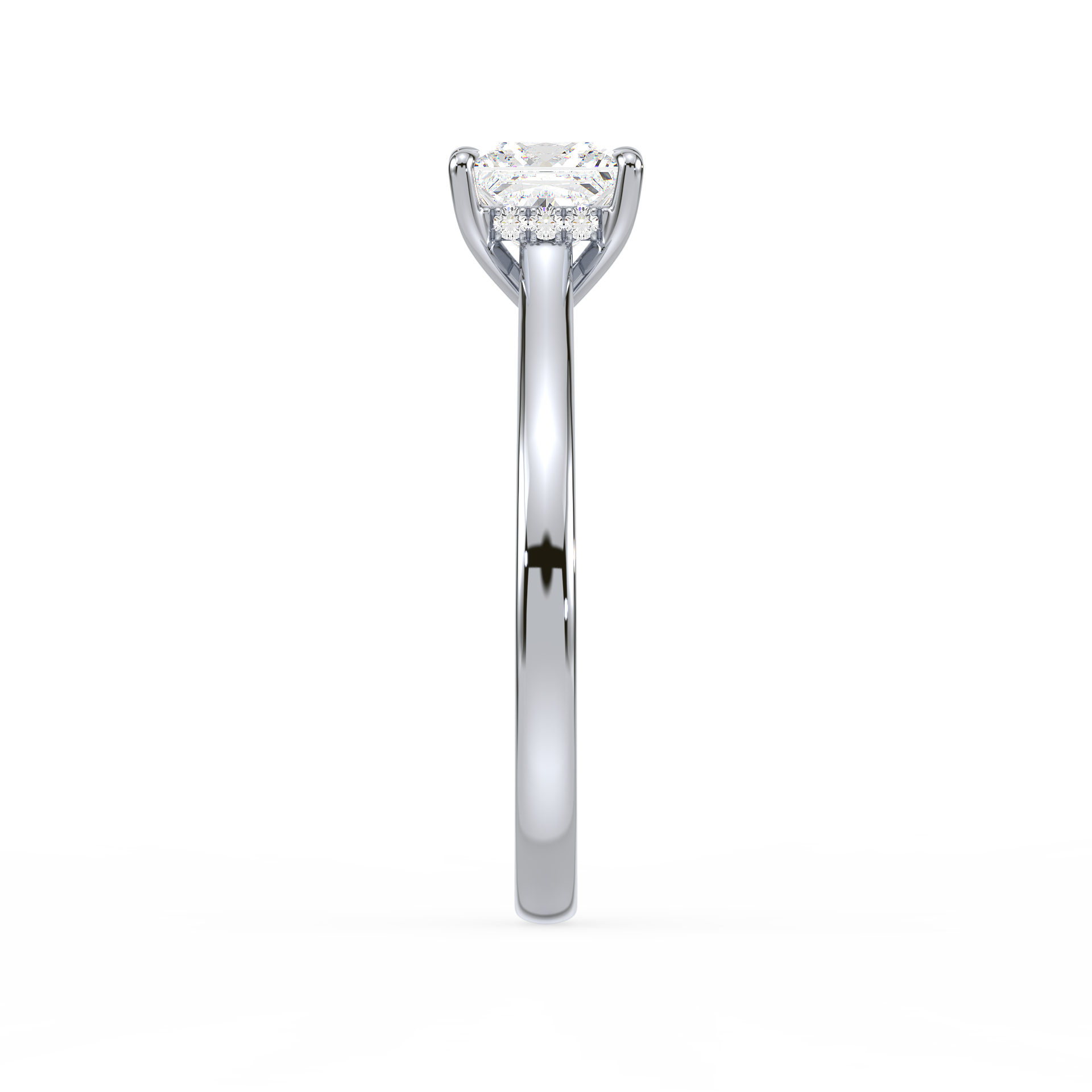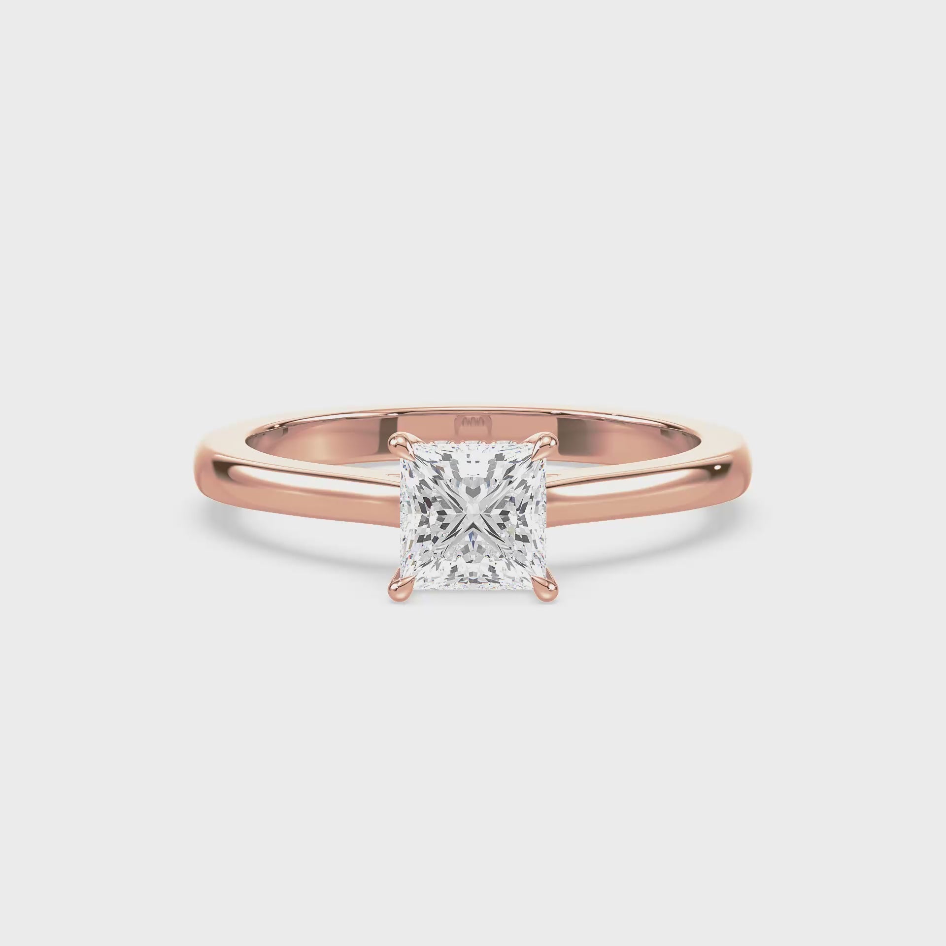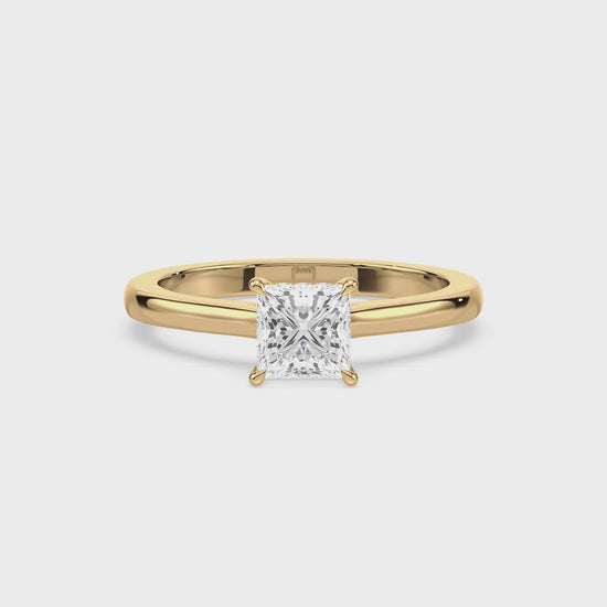 The Classic Princess Halo Ring features a stunning princess-cut diamond surrounded by a halo of smaller diamonds. This elegant design combines the geometric beauty of the princess cut with the sparkle of the halo, creating a timeless piece of jewellery.
