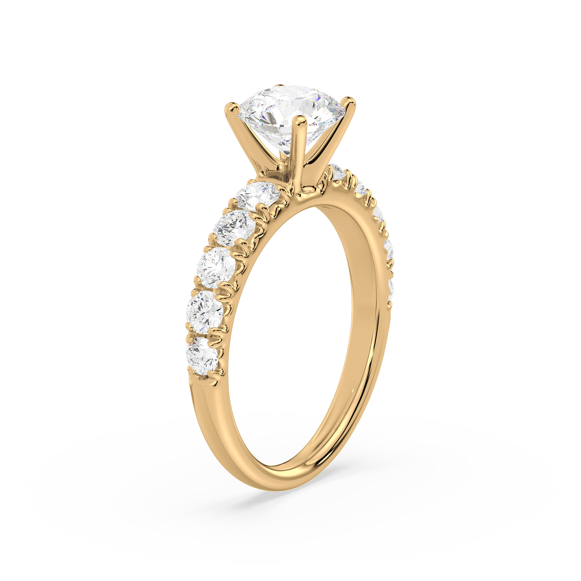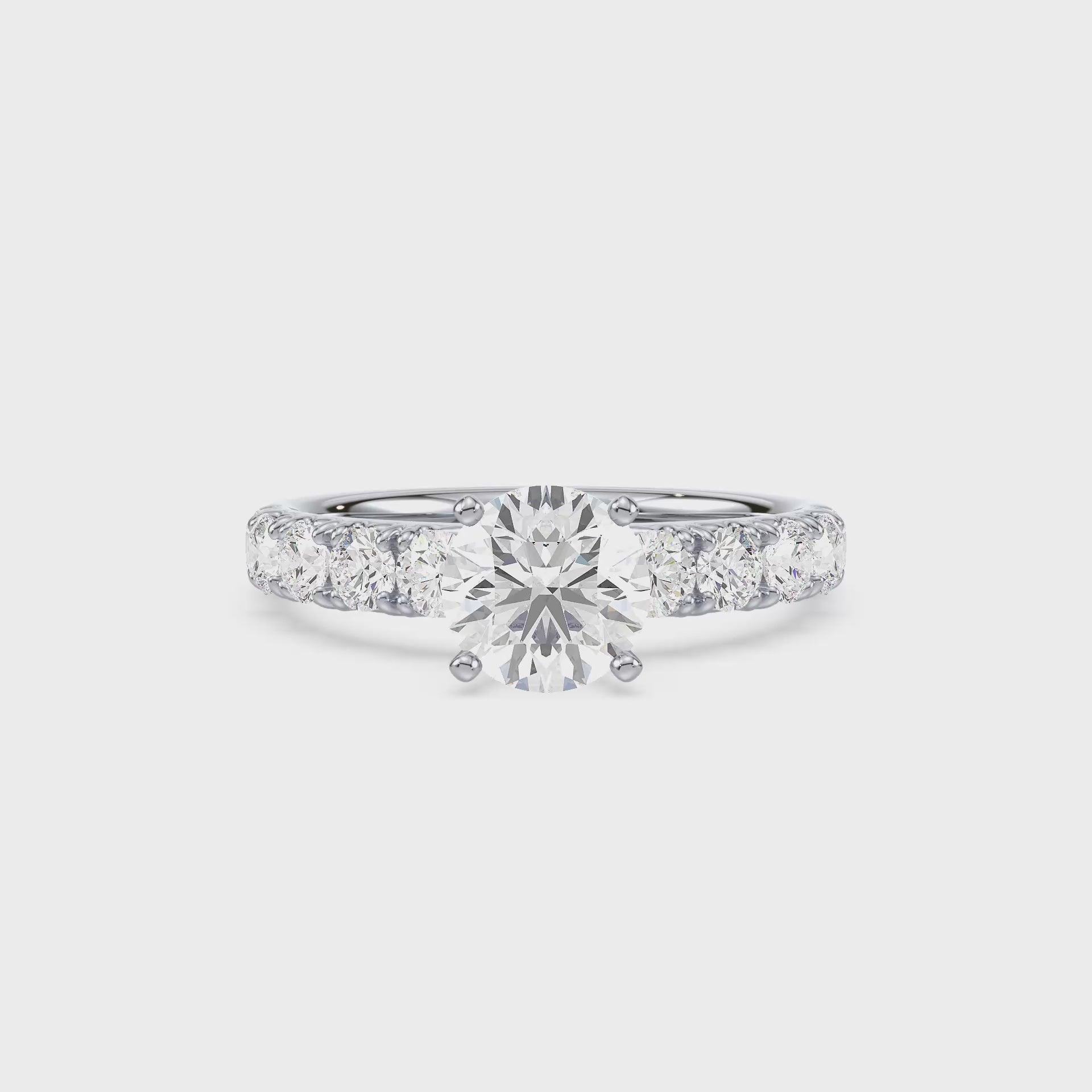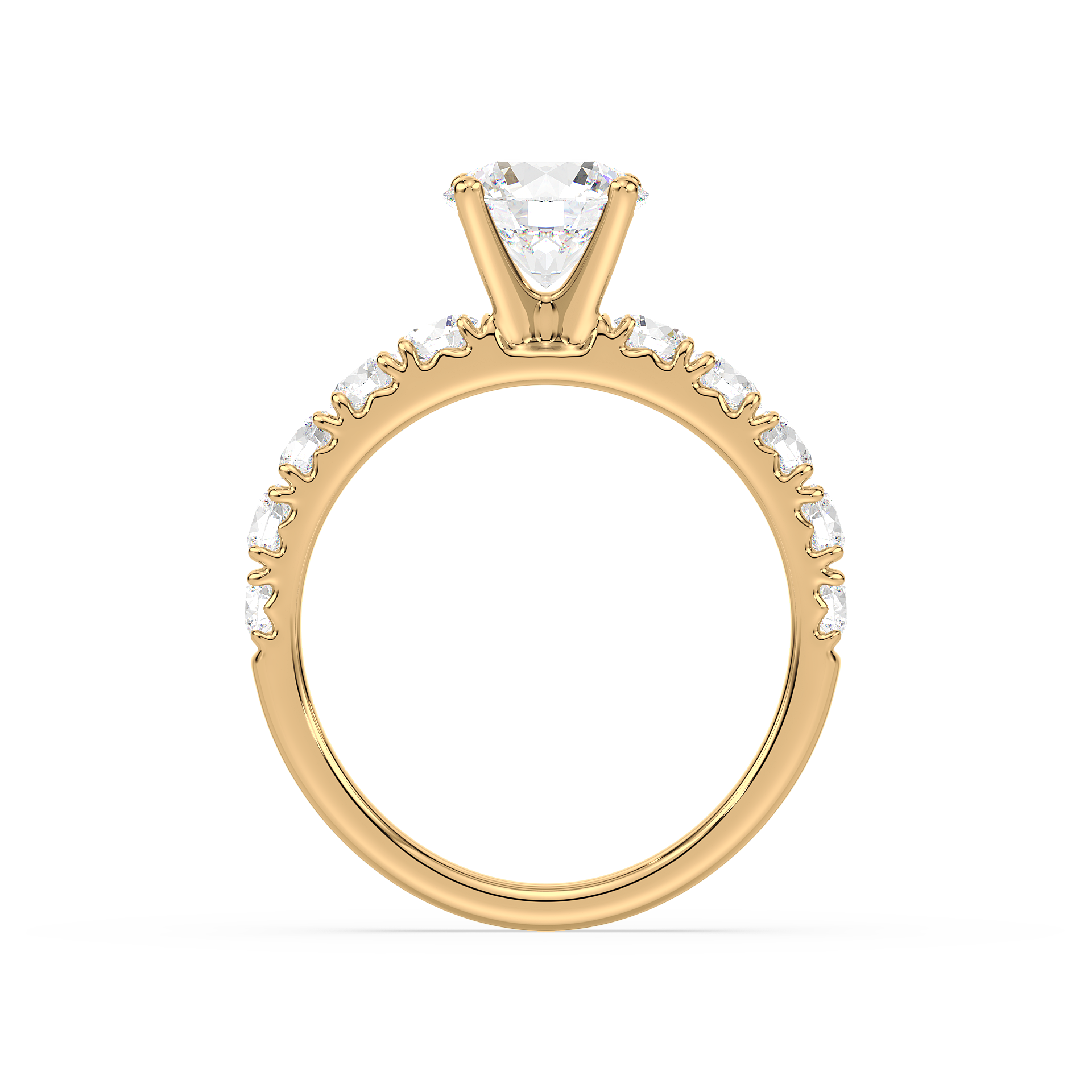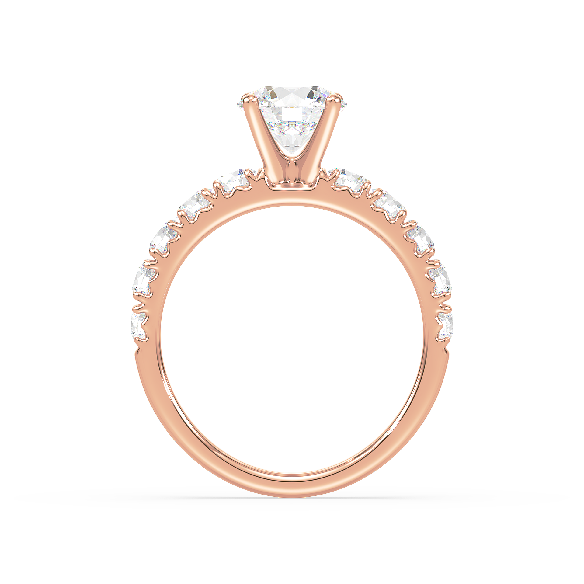 A timeless design, this Classic Round Centre French Pavé Ring features a brilliant round diamond at its center, with pave diamonds set along the band in a French setting, creating a seamless, sparkling display that catches the eye from every angle.