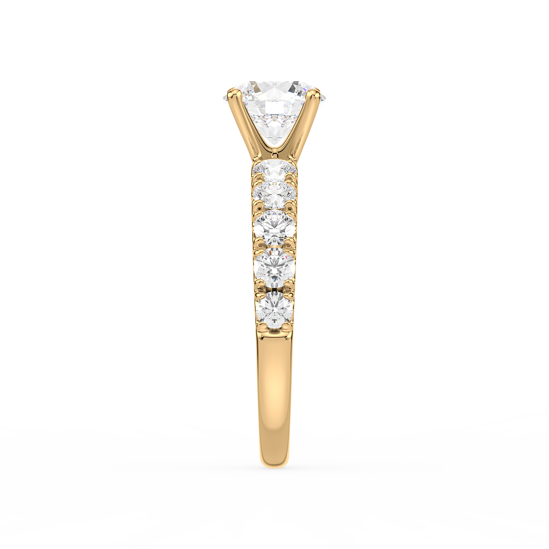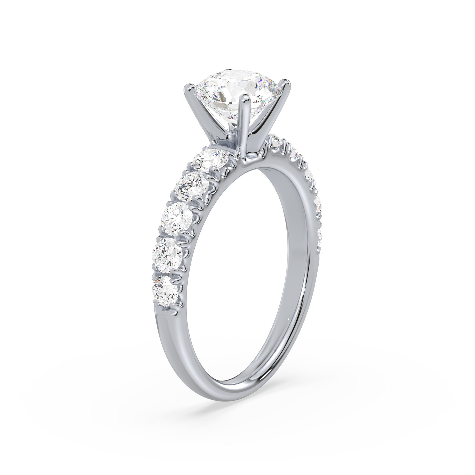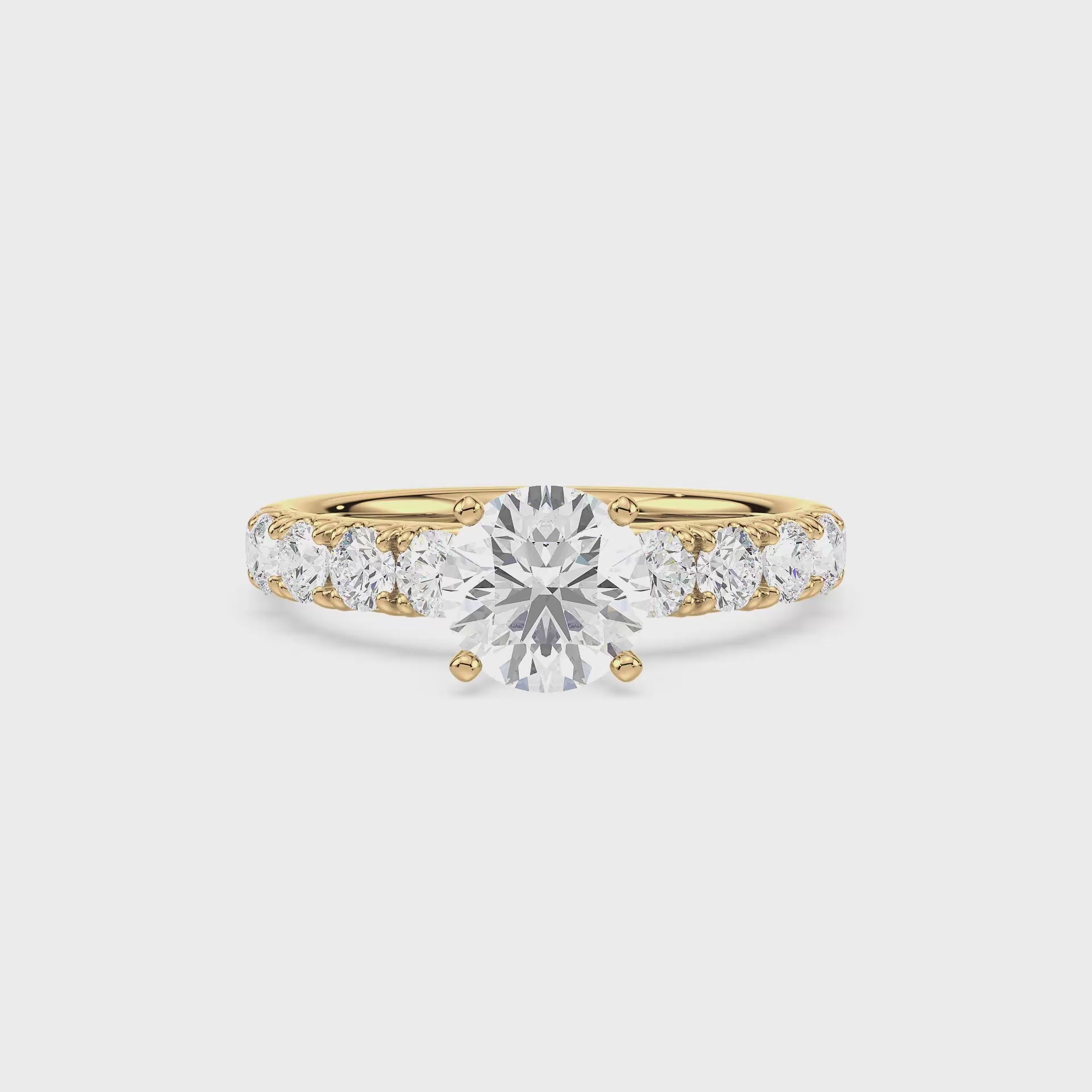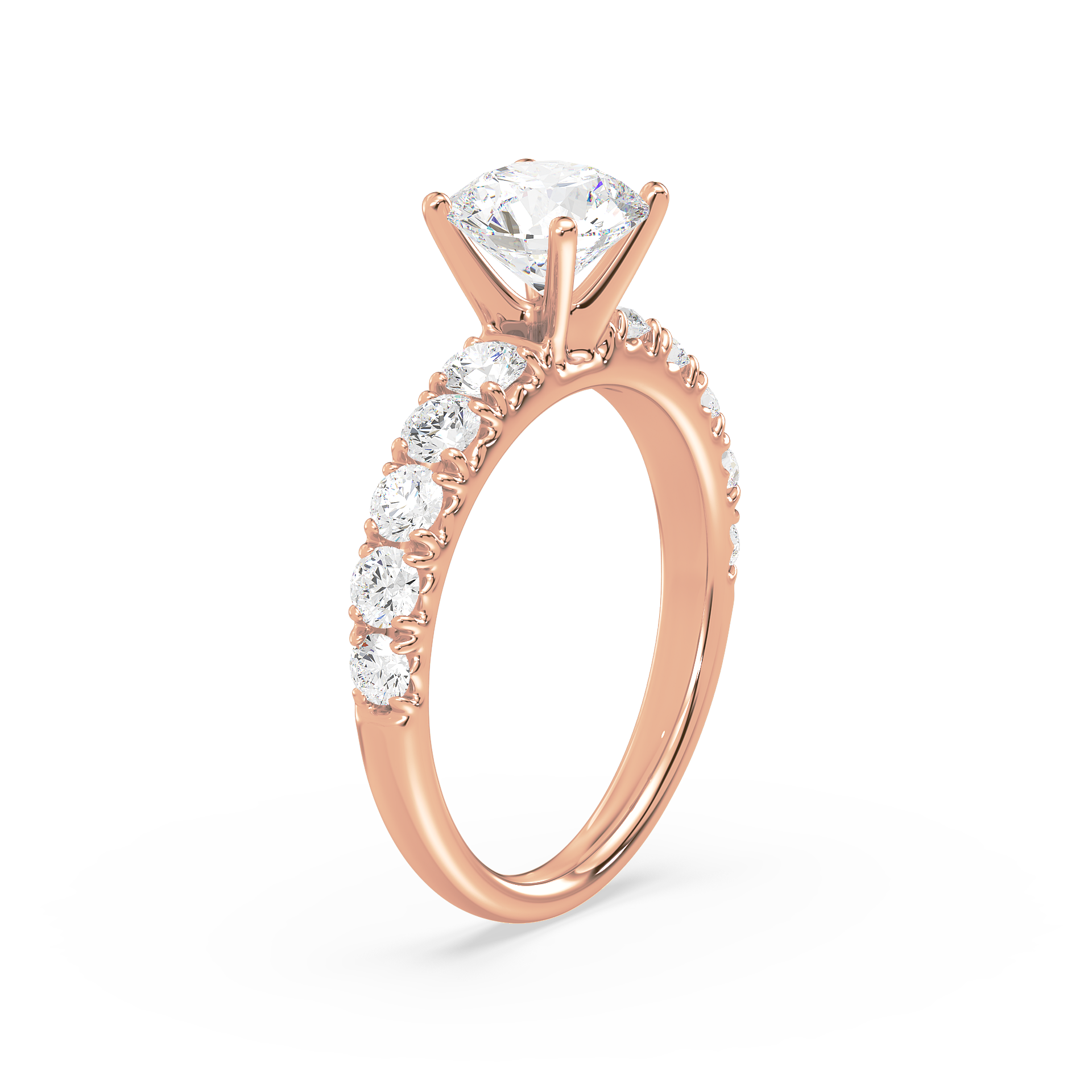 A timeless design, this Classic Round Centre French Pavé Ring features a brilliant round diamond at its center, with pave diamonds set along the band in a French setting, creating a seamless, sparkling display that catches the eye from every angle.