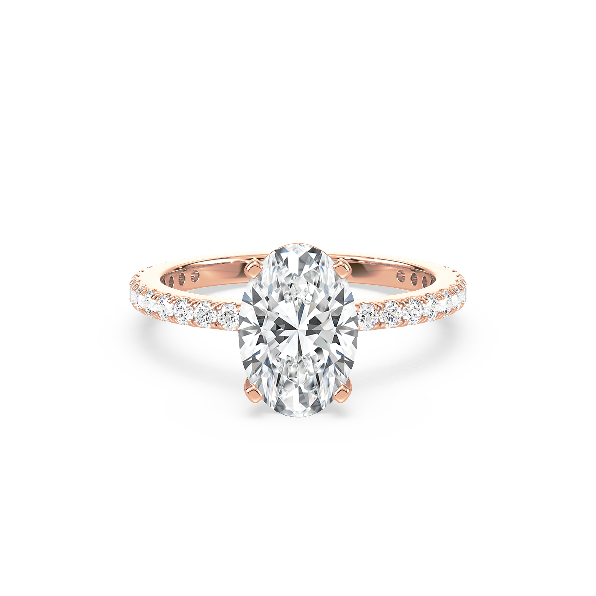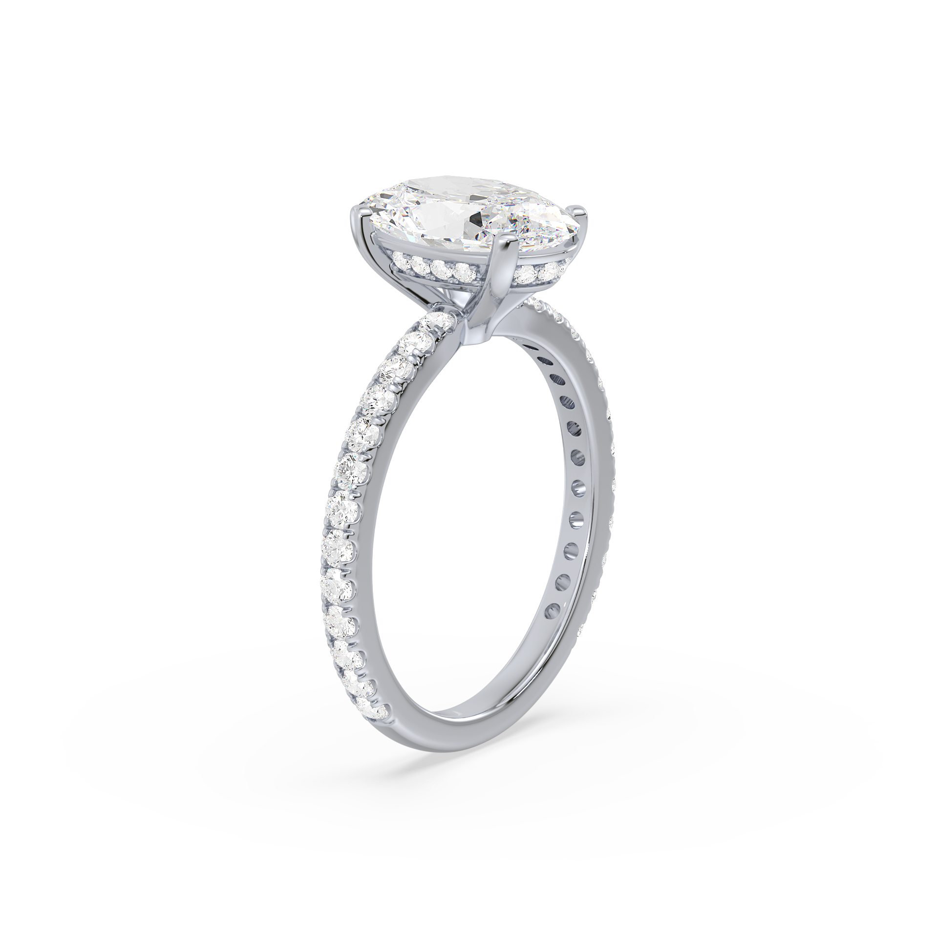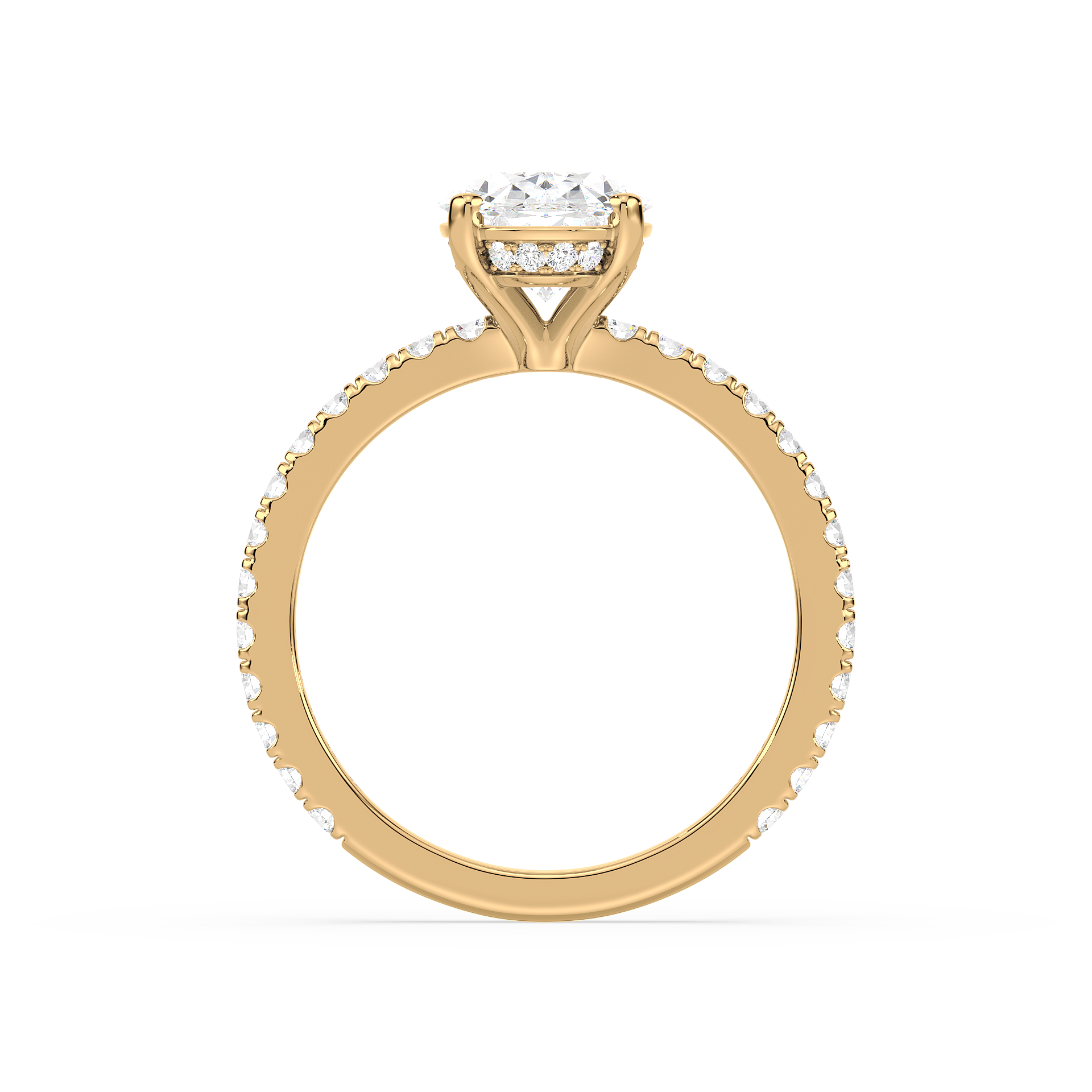 The Hidden Halo Oval Radiance ring is a unique piece, featuring an oval diamond at its core with a hidden halo that adds extra sparkle from the side. A stunning design that remains understated from the top.