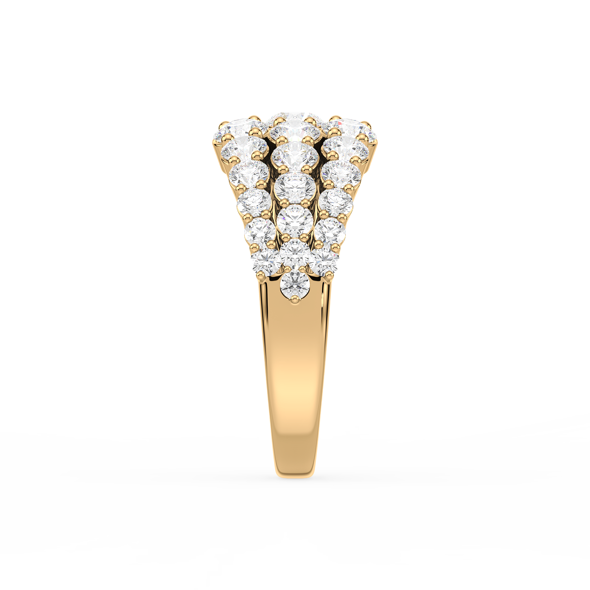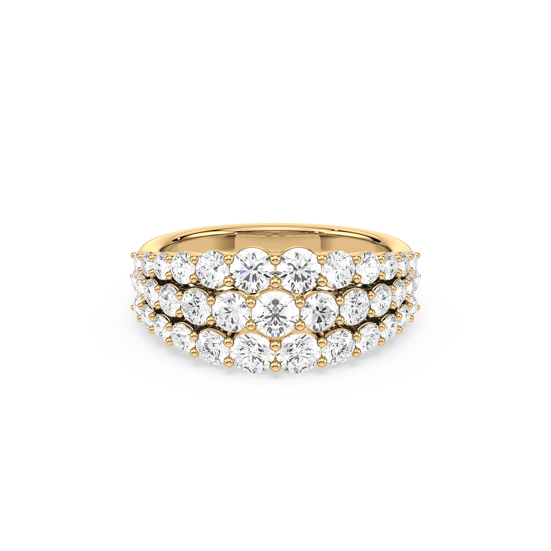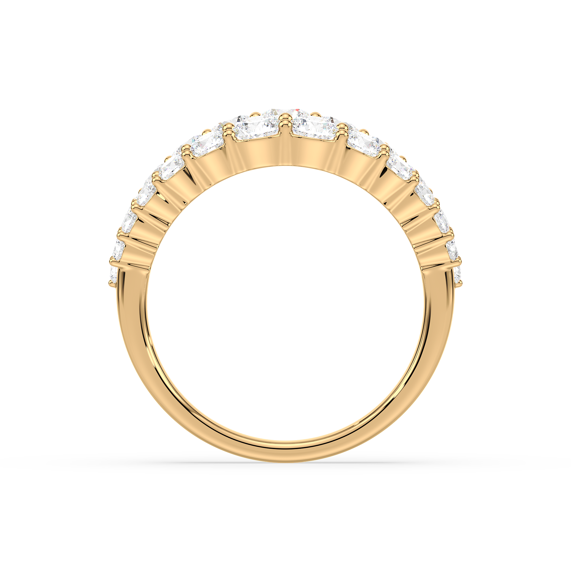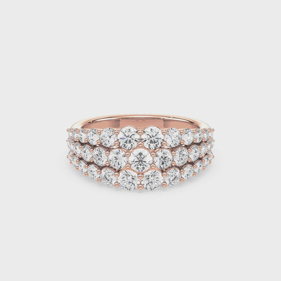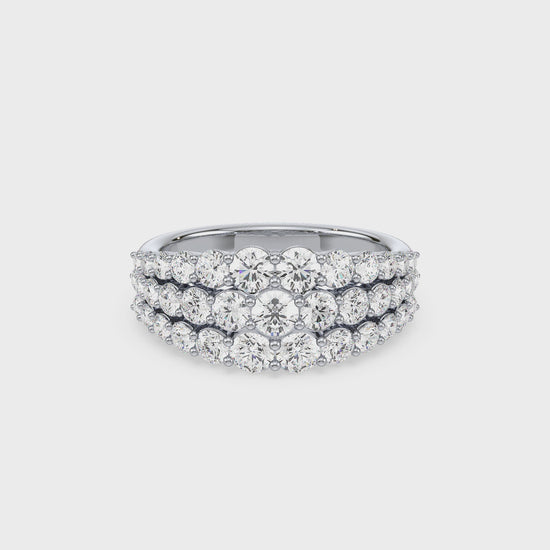 This Majestic Round Cascade Trinity Prong Ring features three round diamonds cascading down the band in a graceful design. Set in prongs, the diamonds sparkle brilliantly, creating a dynamic flow that symbolises love’s progression through time.