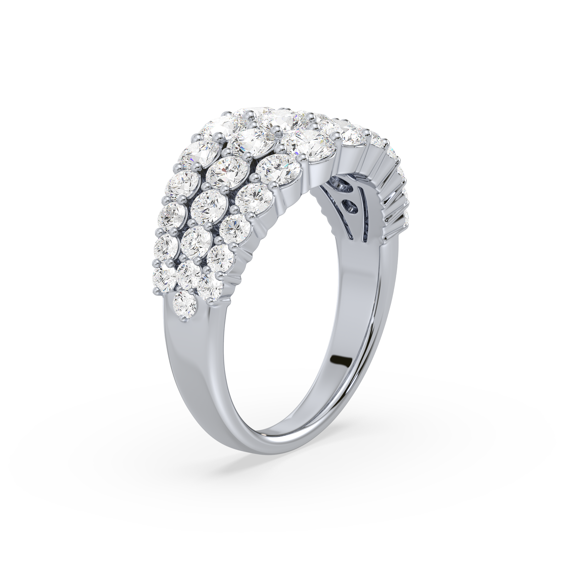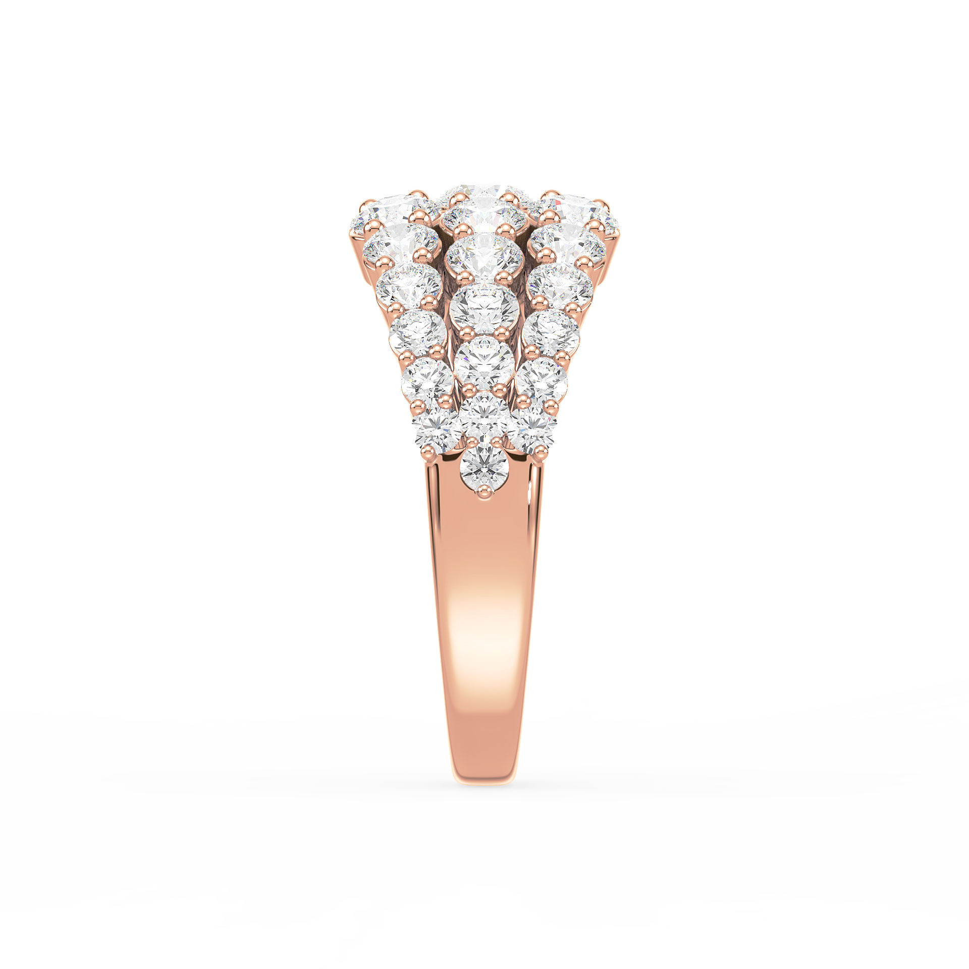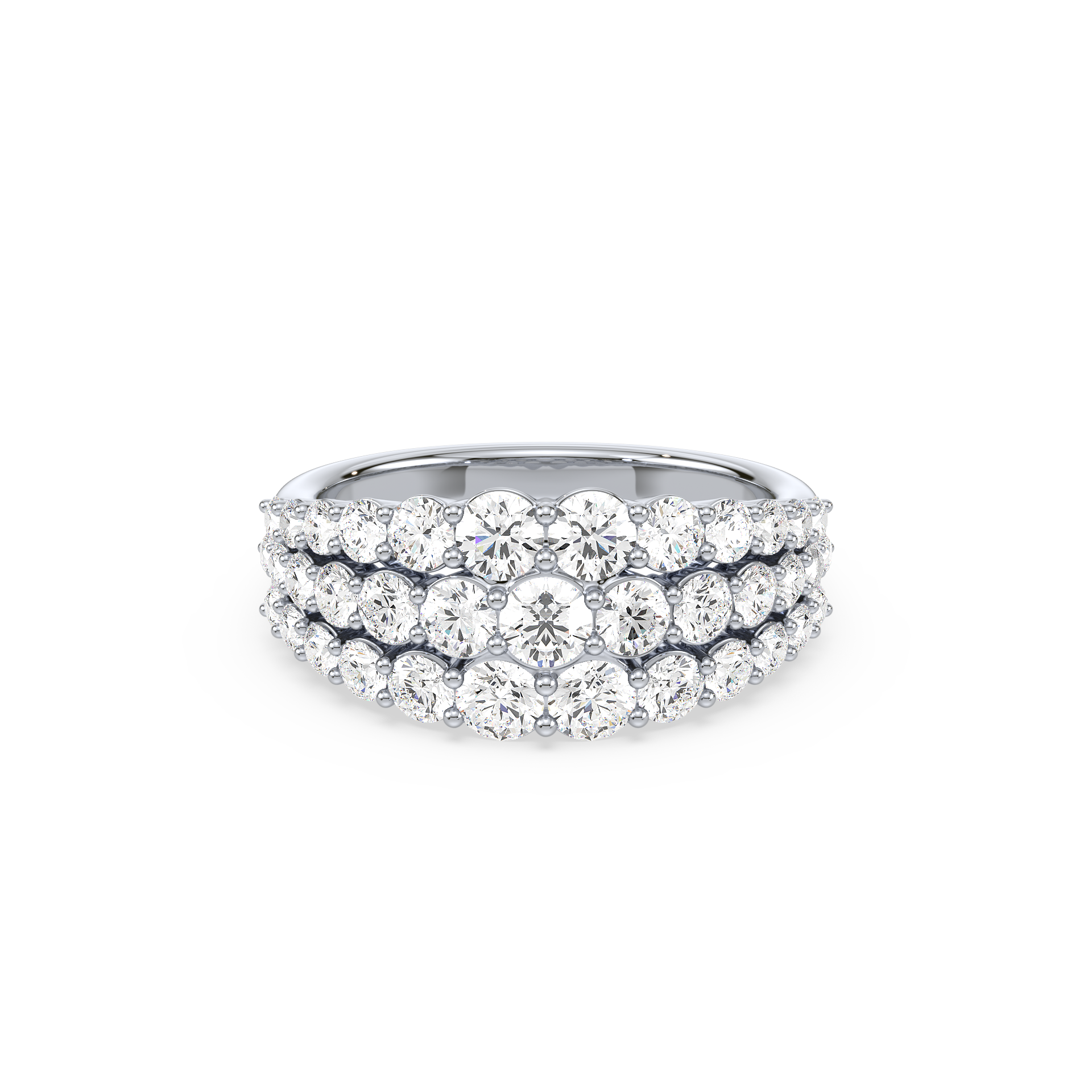 This Majestic Round Cascade Trinity Prong Ring features three round diamonds cascading down the band in a graceful design. Set in prongs, the diamonds sparkle brilliantly, creating a dynamic flow that symbolises love’s progression through time.