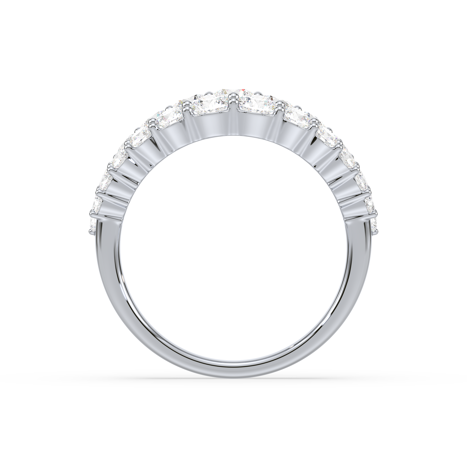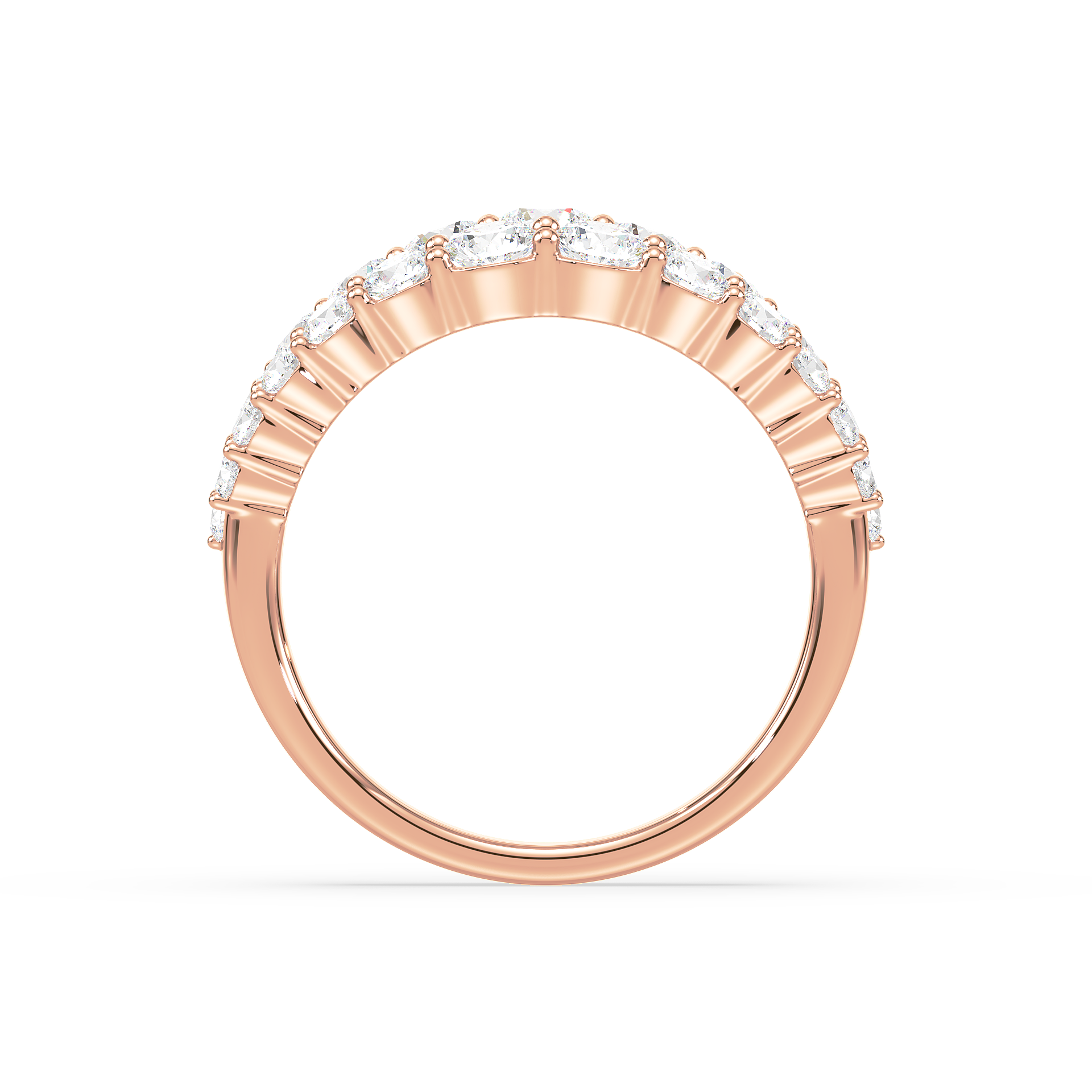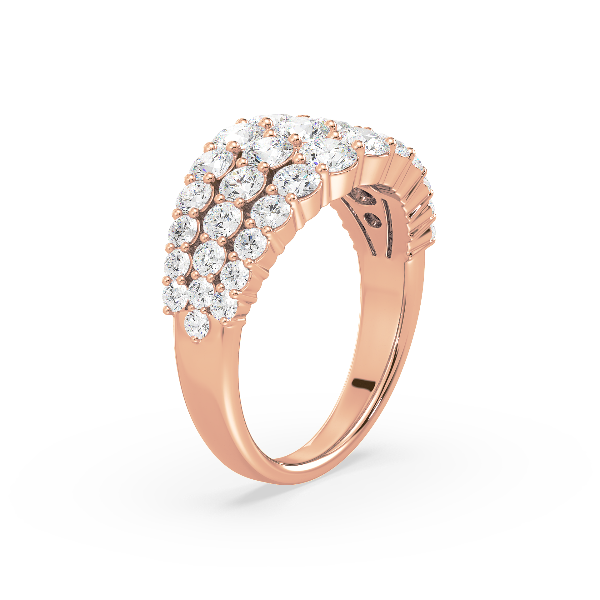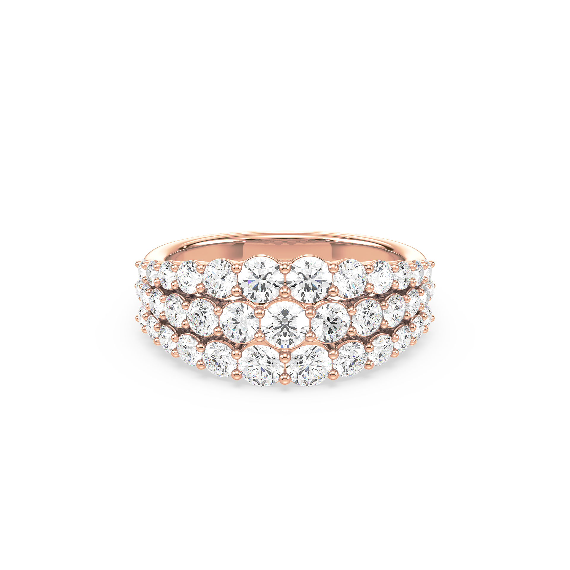 This Majestic Round Cascade Trinity Prong Ring features three round diamonds cascading down the band in a graceful design. Set in prongs, the diamonds sparkle brilliantly, creating a dynamic flow that symbolises love’s progression through time.