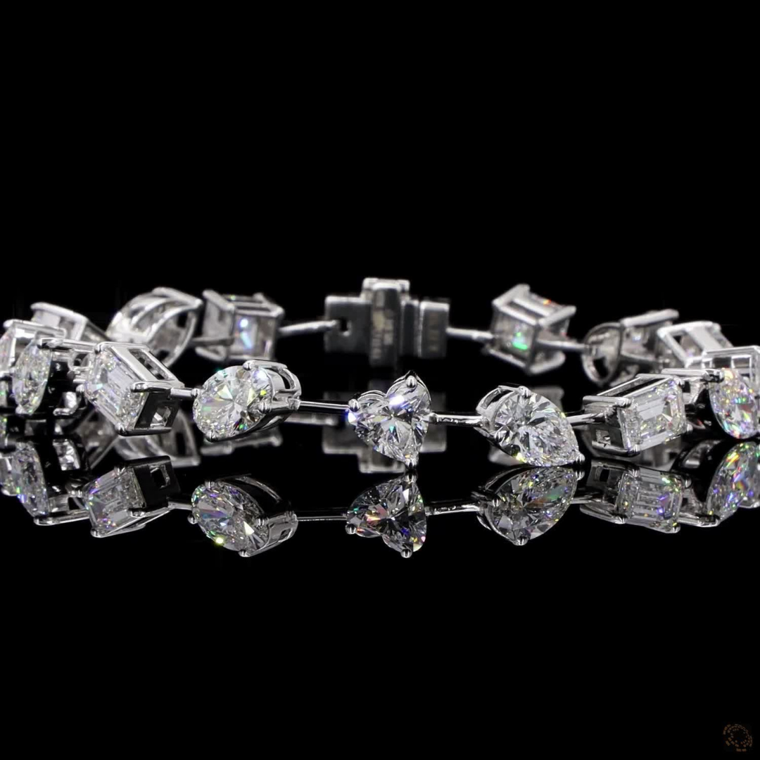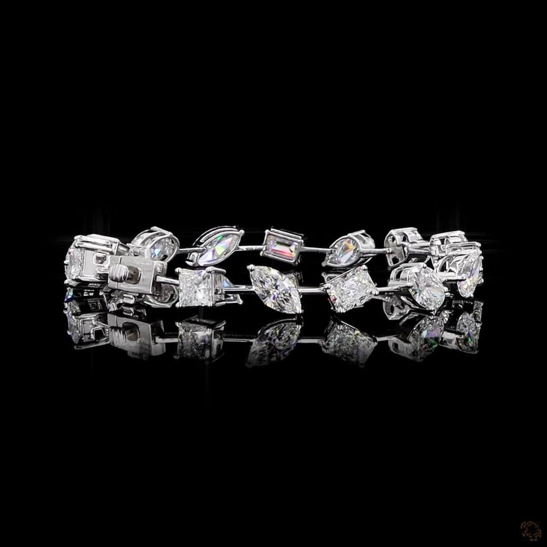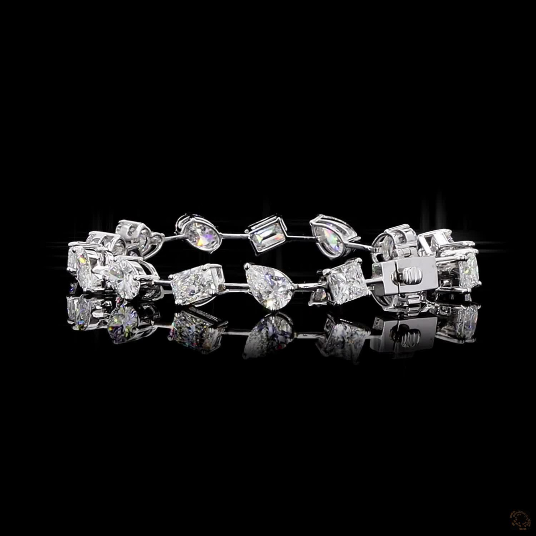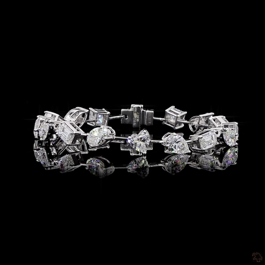 Blend of stunning cuts- Ovals, Emerald, Pear, Cushions, Round, and Long Radiant; this diamond bracelet symbolises elegance through its diverse yet perfectly balanced design.