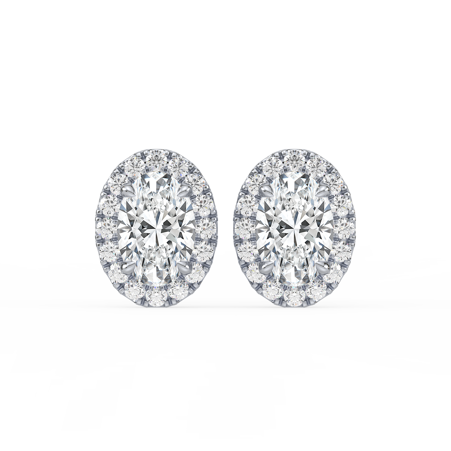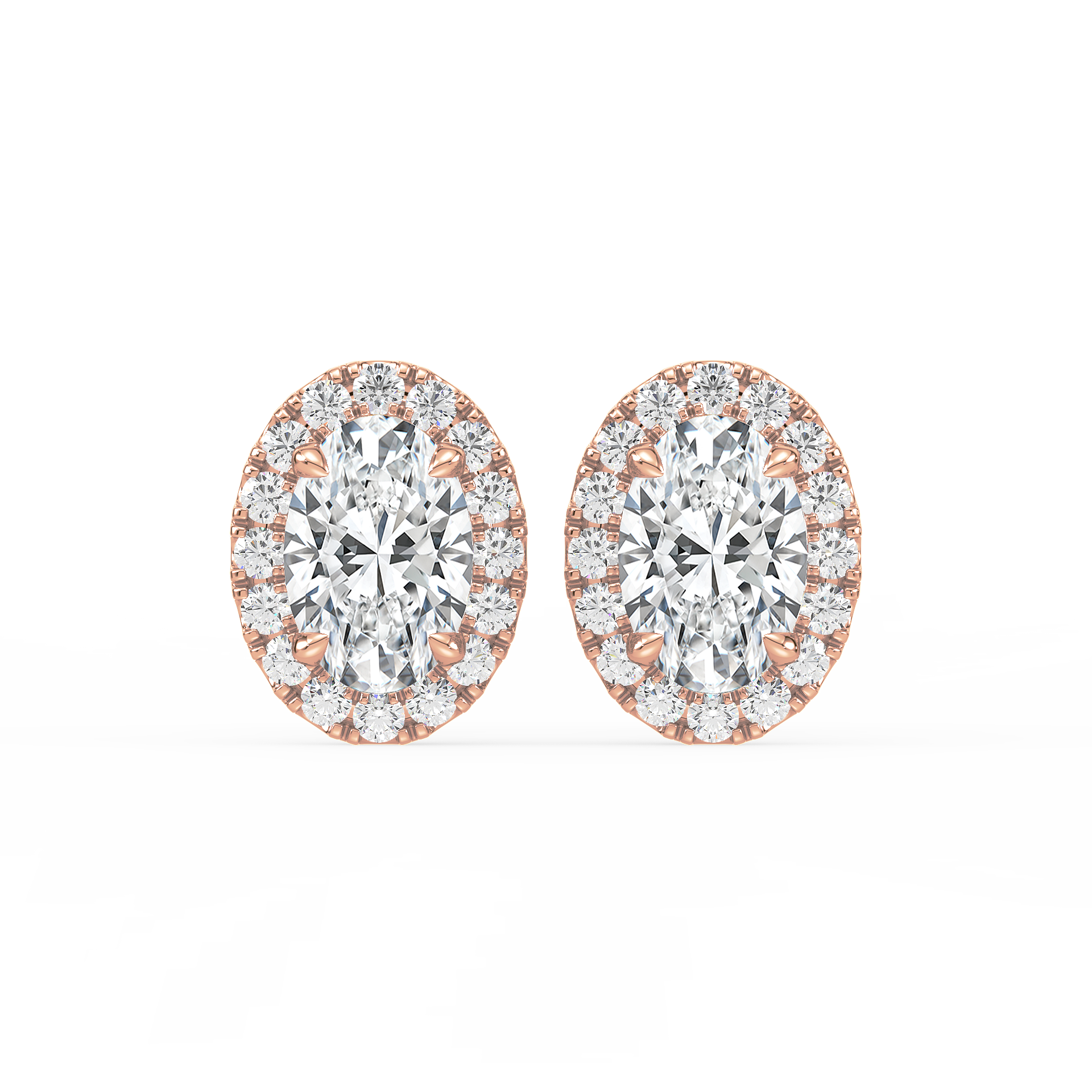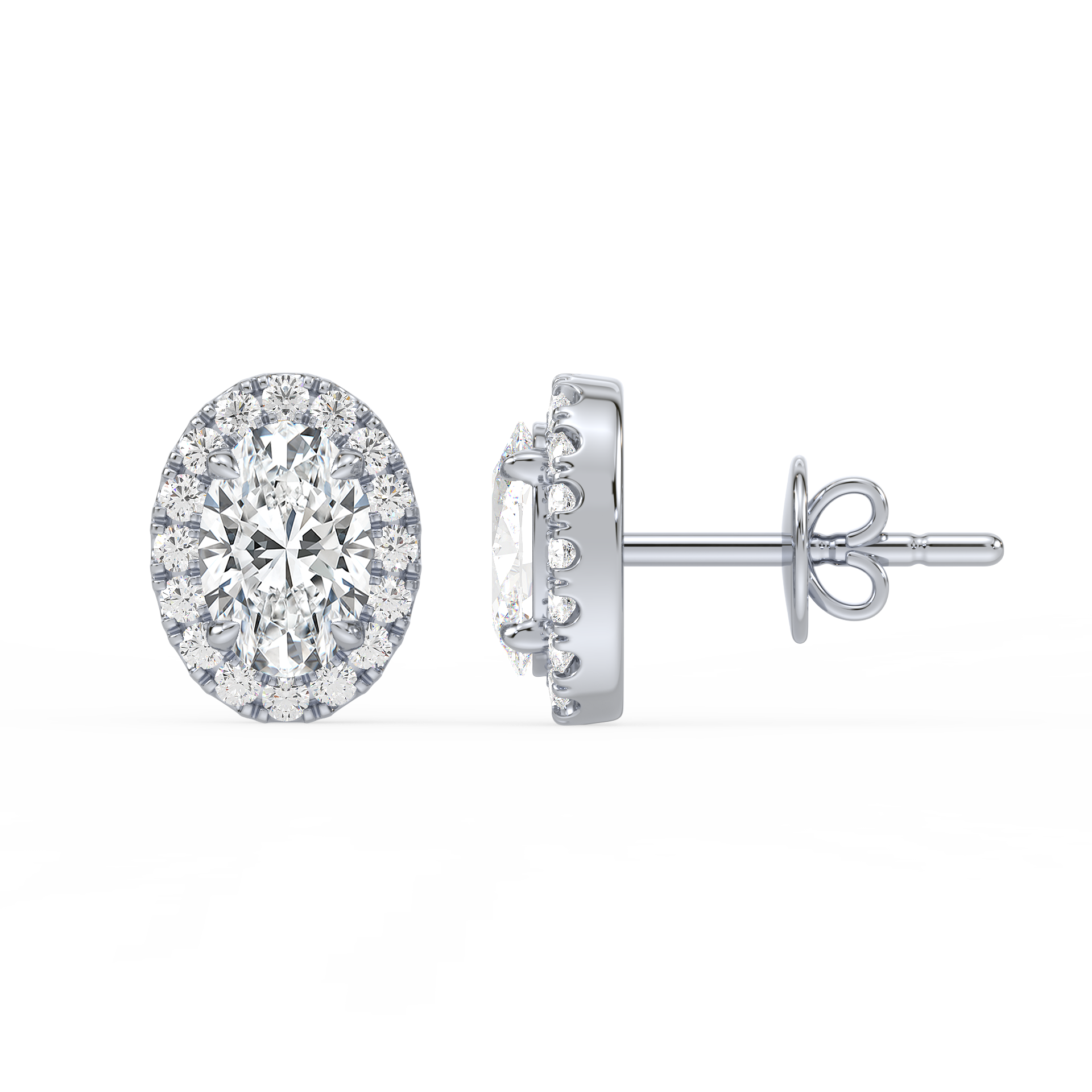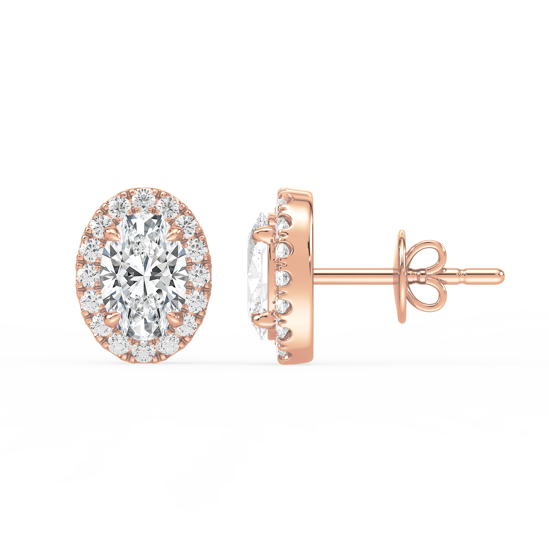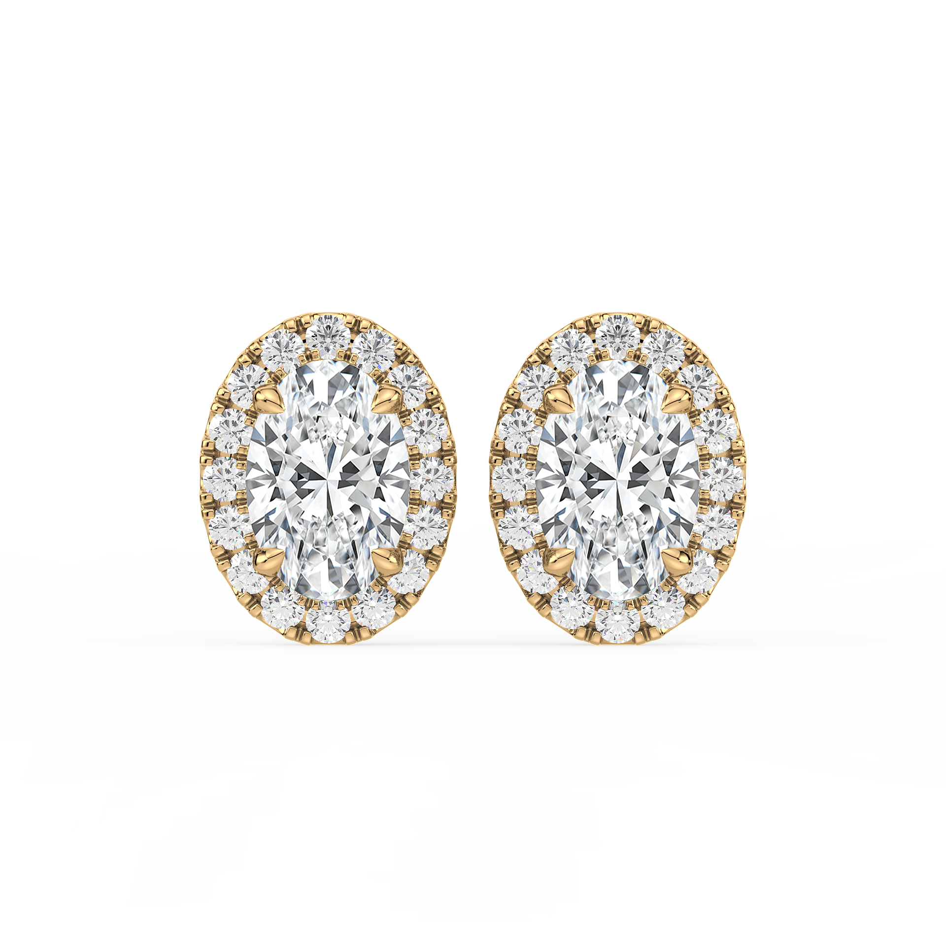 These oval cut diamond studs are encircled by a sparkling halo of smaller diamonds, amplifying their brilliance and creating a flattering, elongated shape. A modern take on a classic design, these studs are perfect for adding a bit of luxury to your everyday look.
