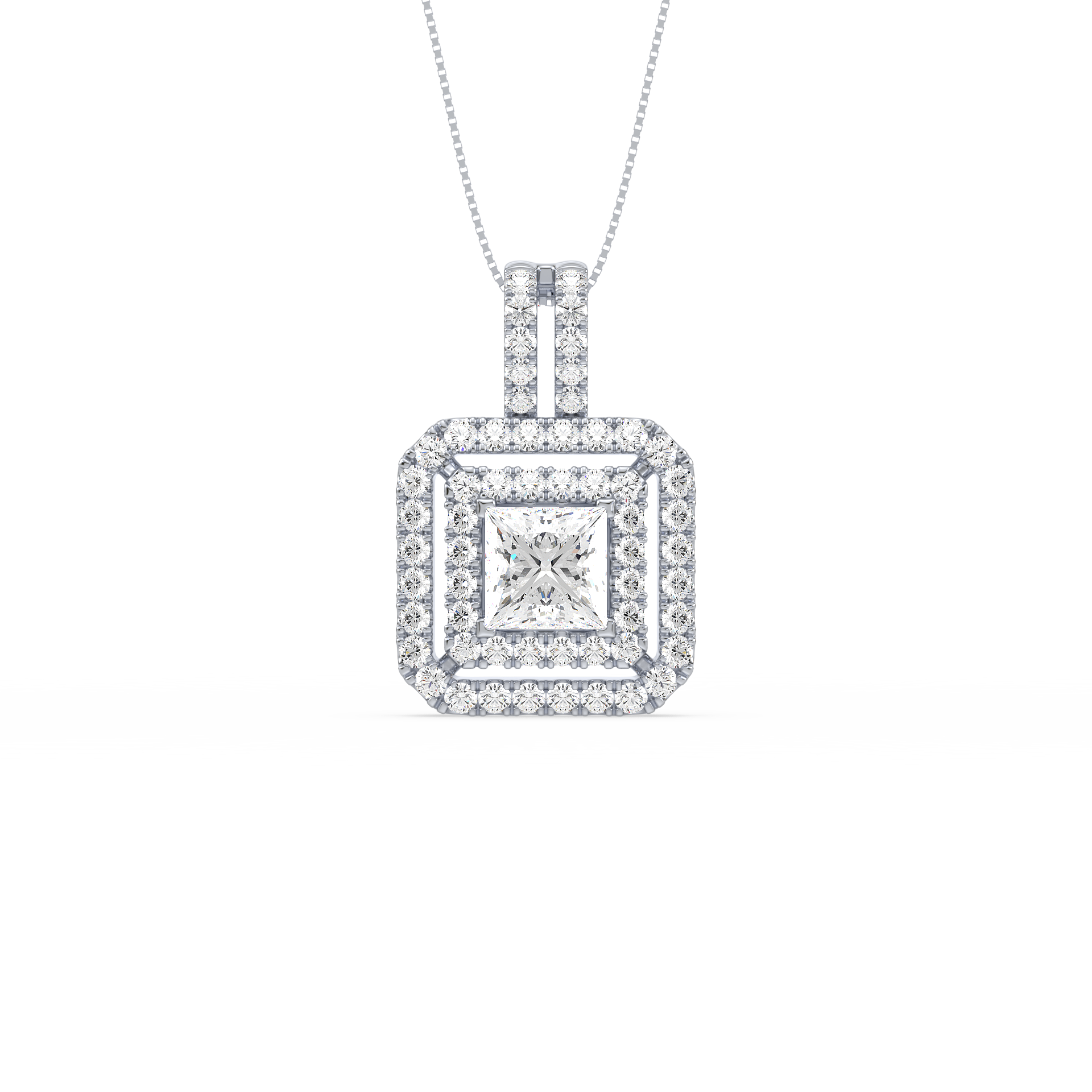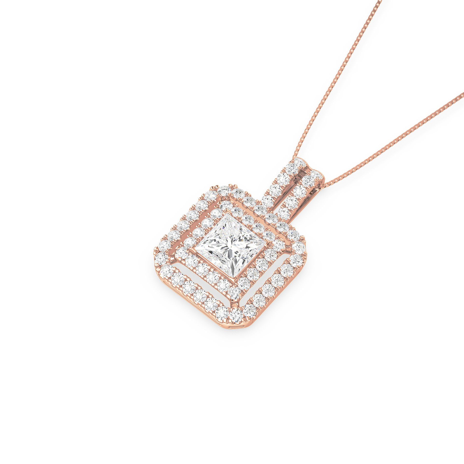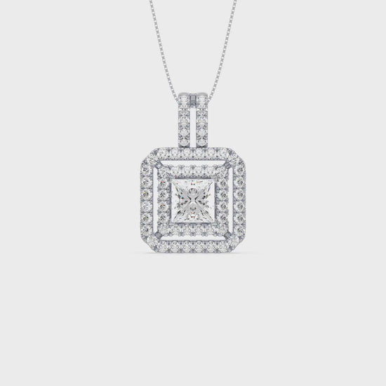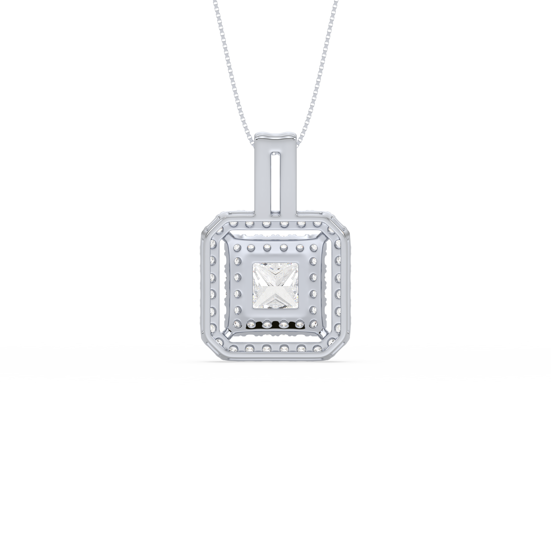 This pendant showcases a brilliant princess cut diamond, set simply to let its shape and sparkle shine. The clean, sharp lines of the diamond make it an elegant and modern choice for any occasion.