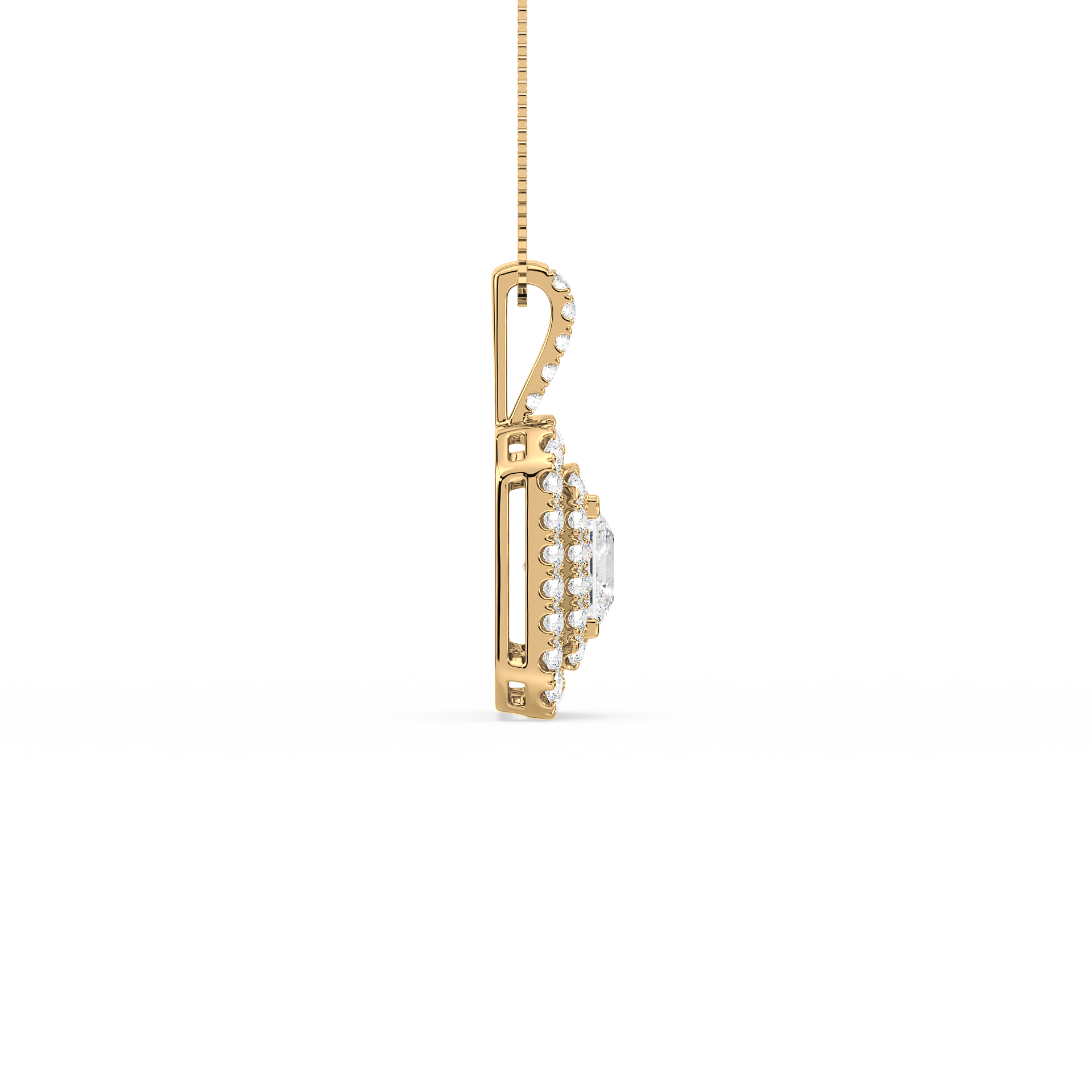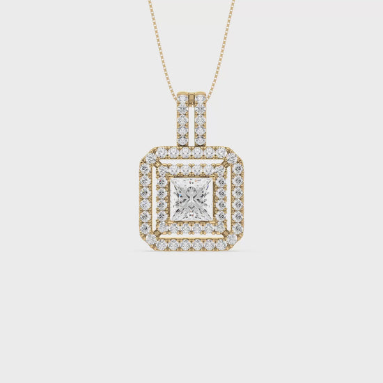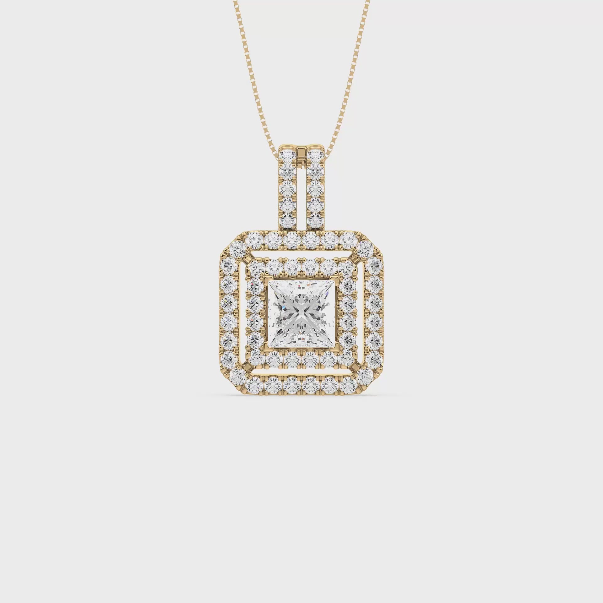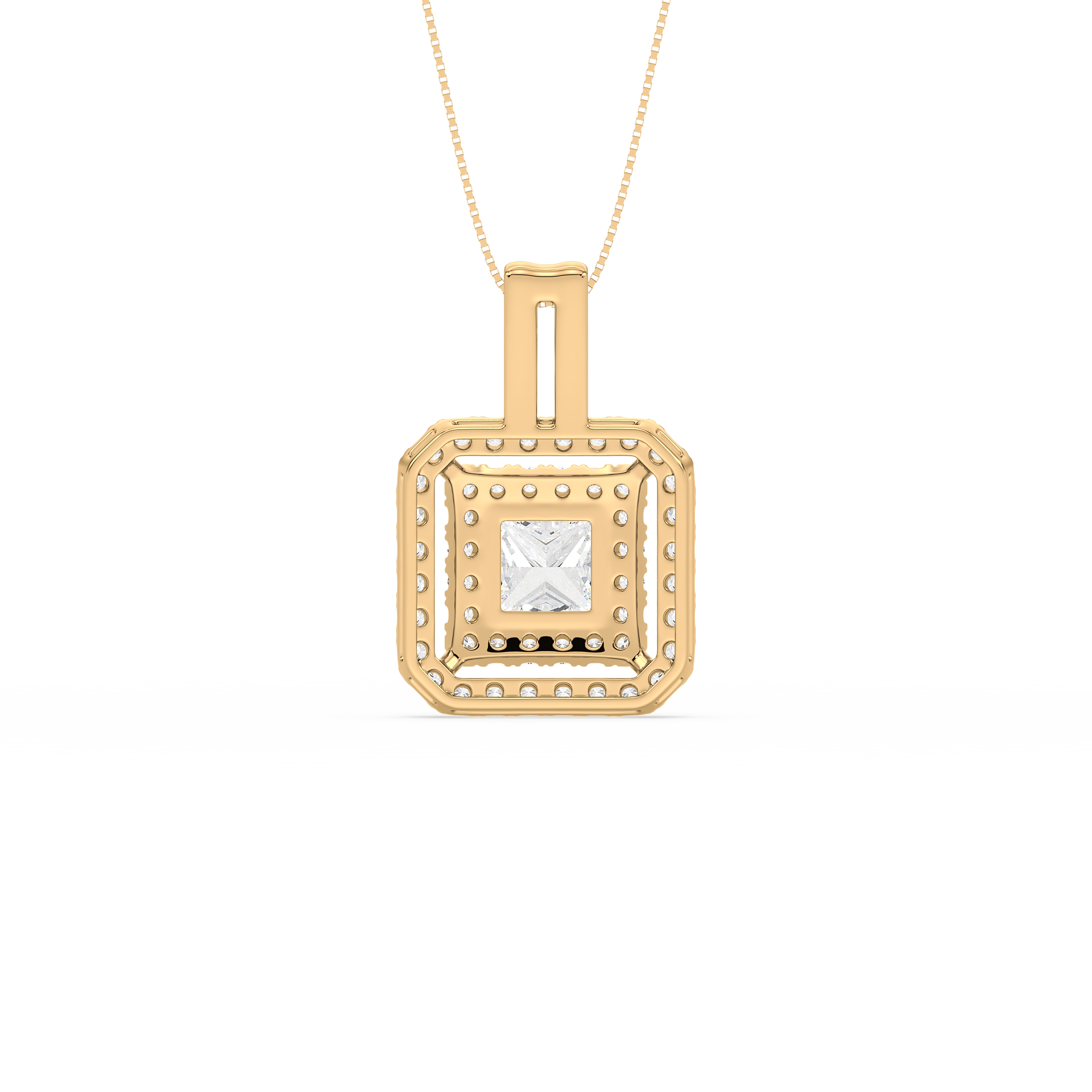 This pendant showcases a brilliant princess cut diamond, set simply to let its shape and sparkle shine. The clean, sharp lines of the diamond make it an elegant and modern choice for any occasion.