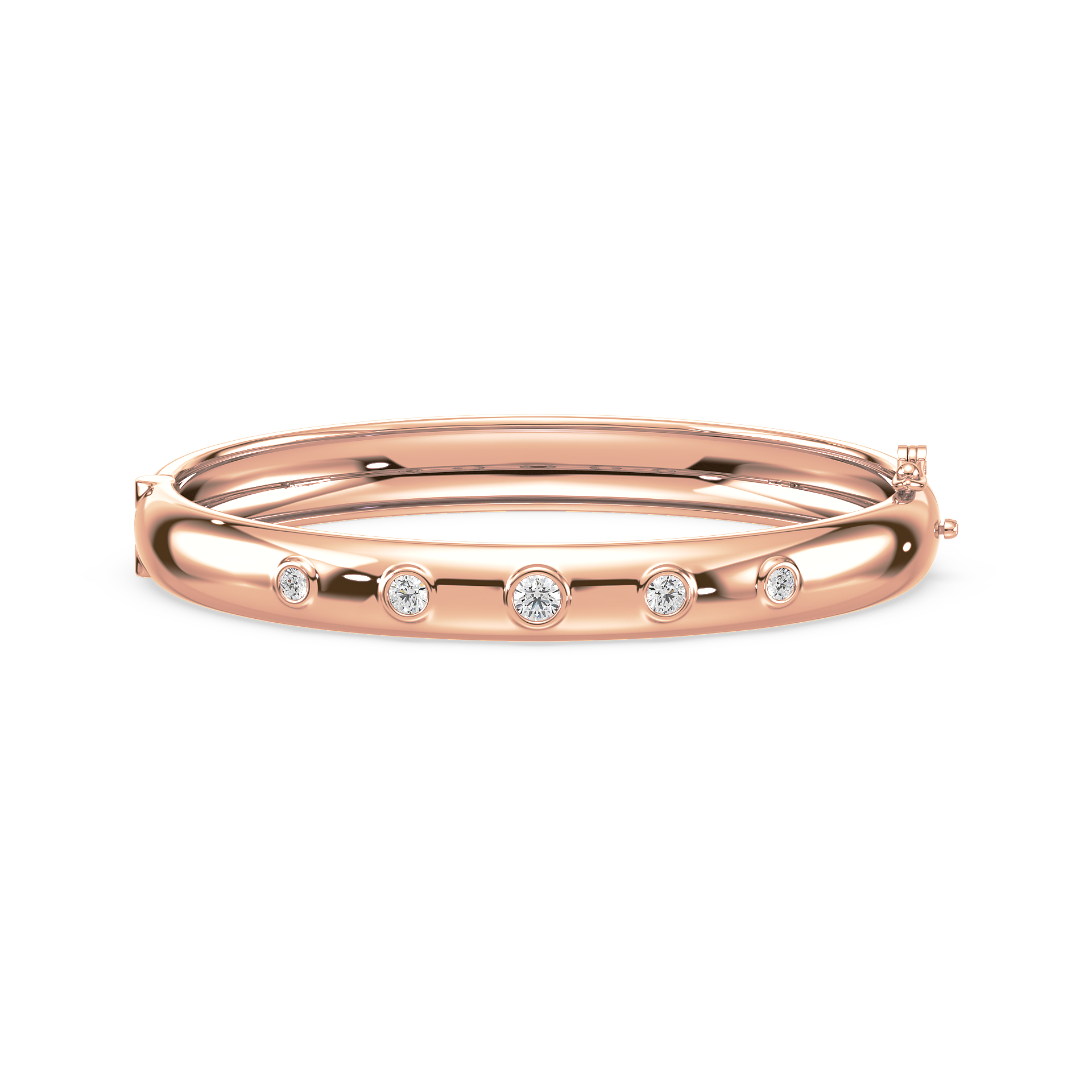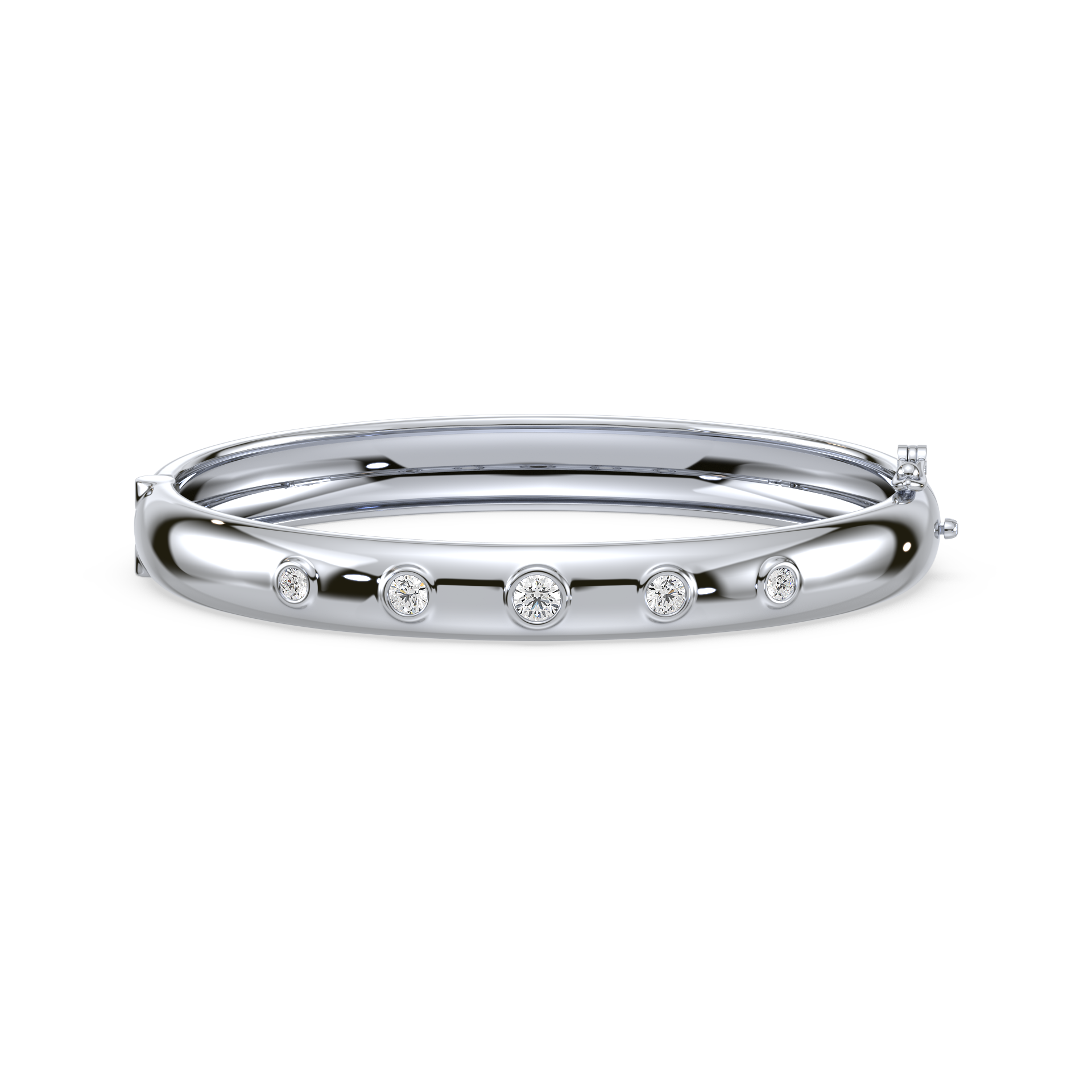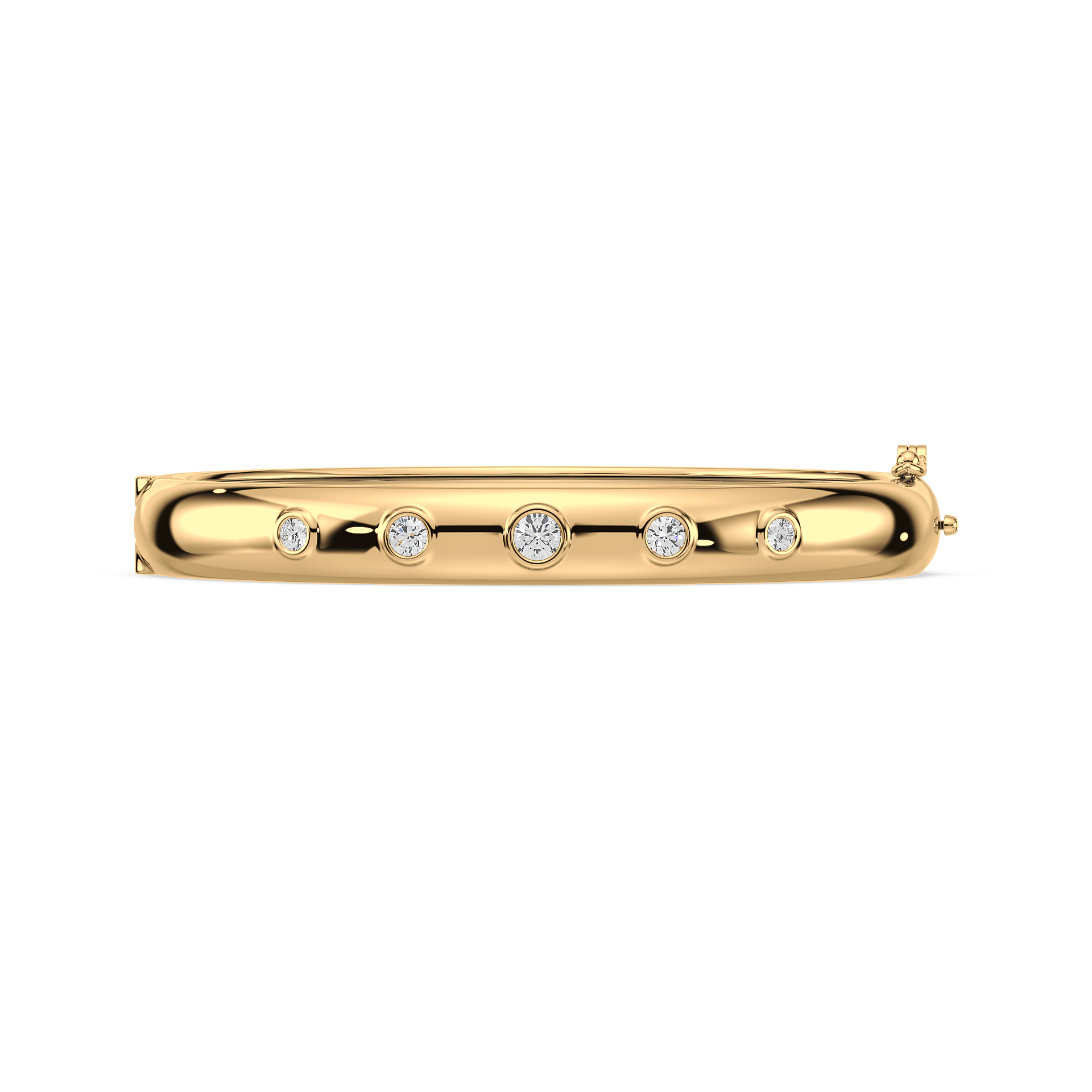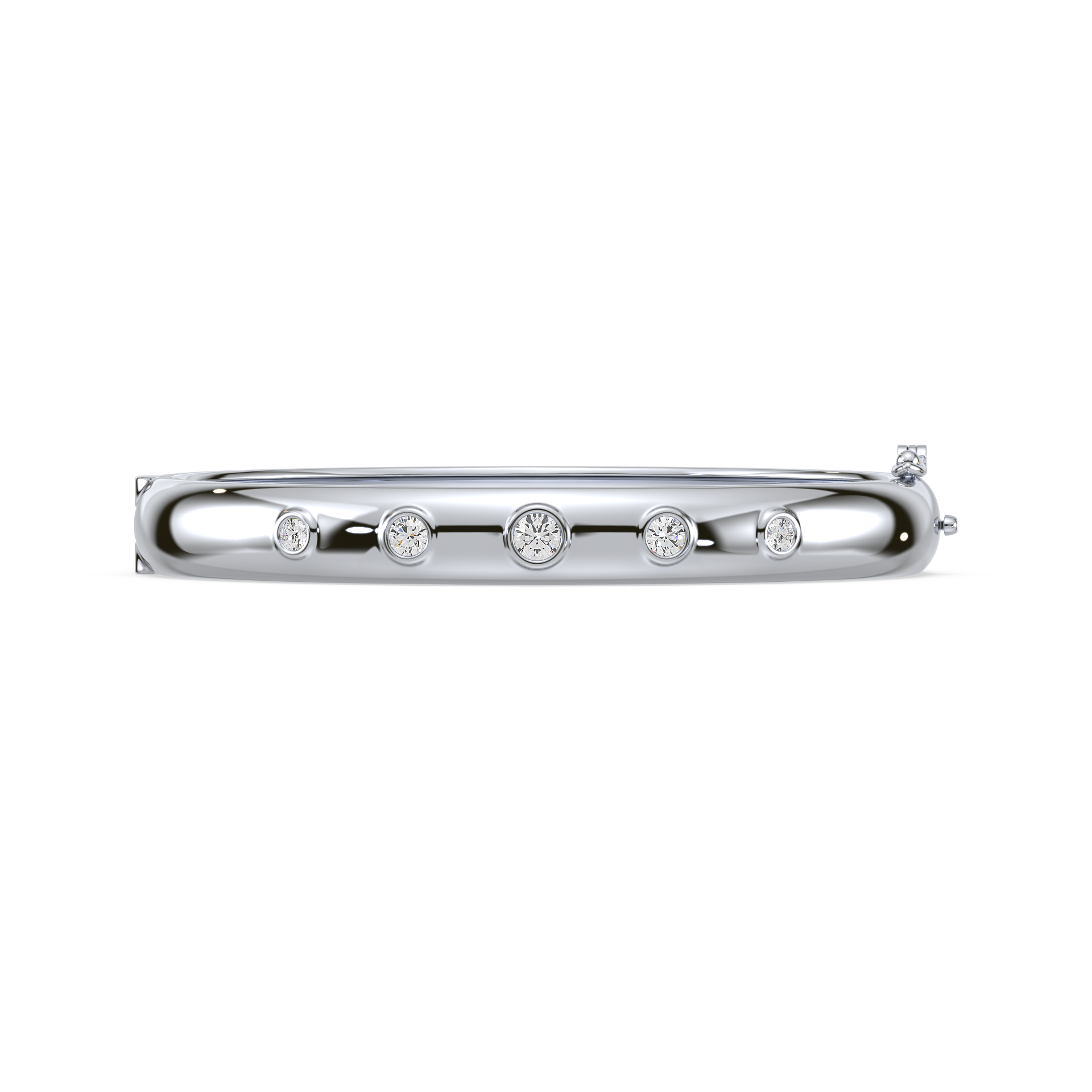 Designed for versatility, this stackable bezel bracelet features a row of bezel set diamonds, offering a continuous line of brilliance. Whether worn alone or stacked with other pieces, it’s the perfect way to add timeless elegance to your collection.