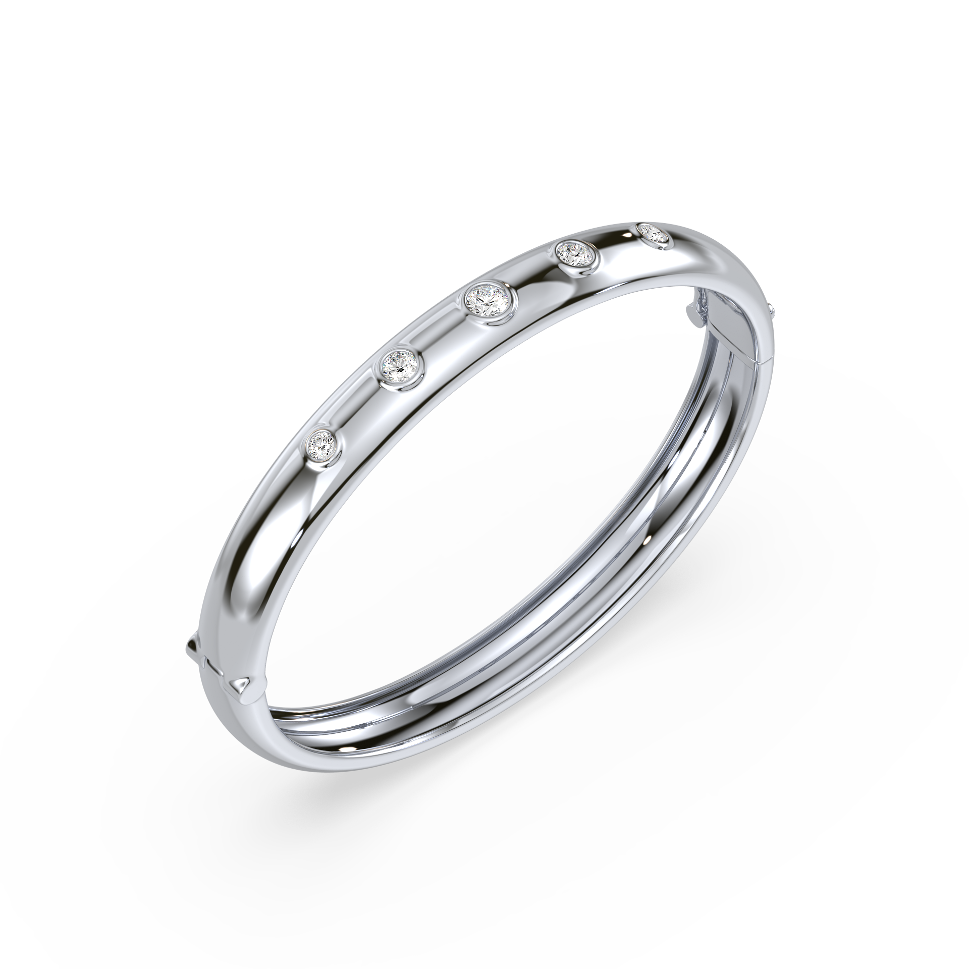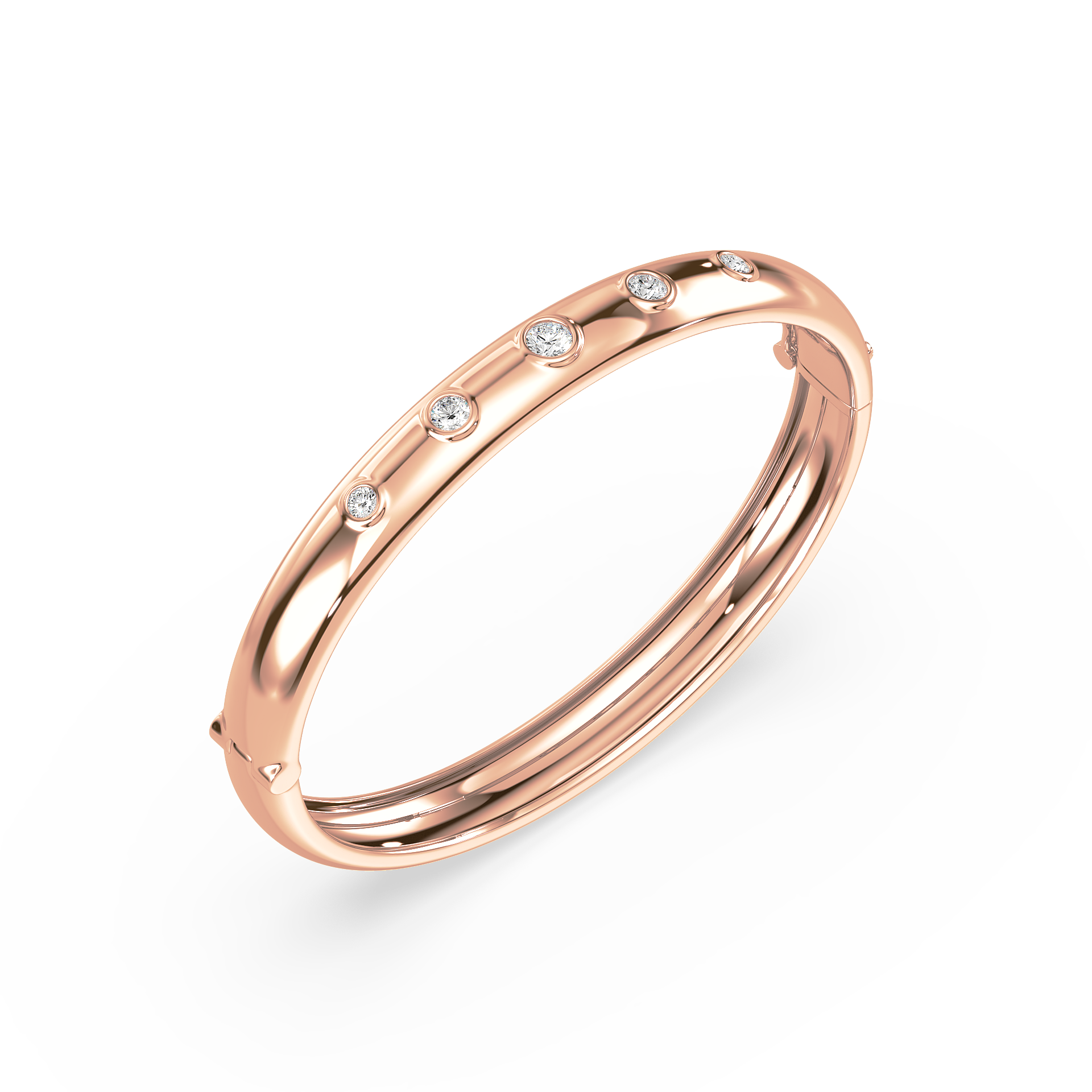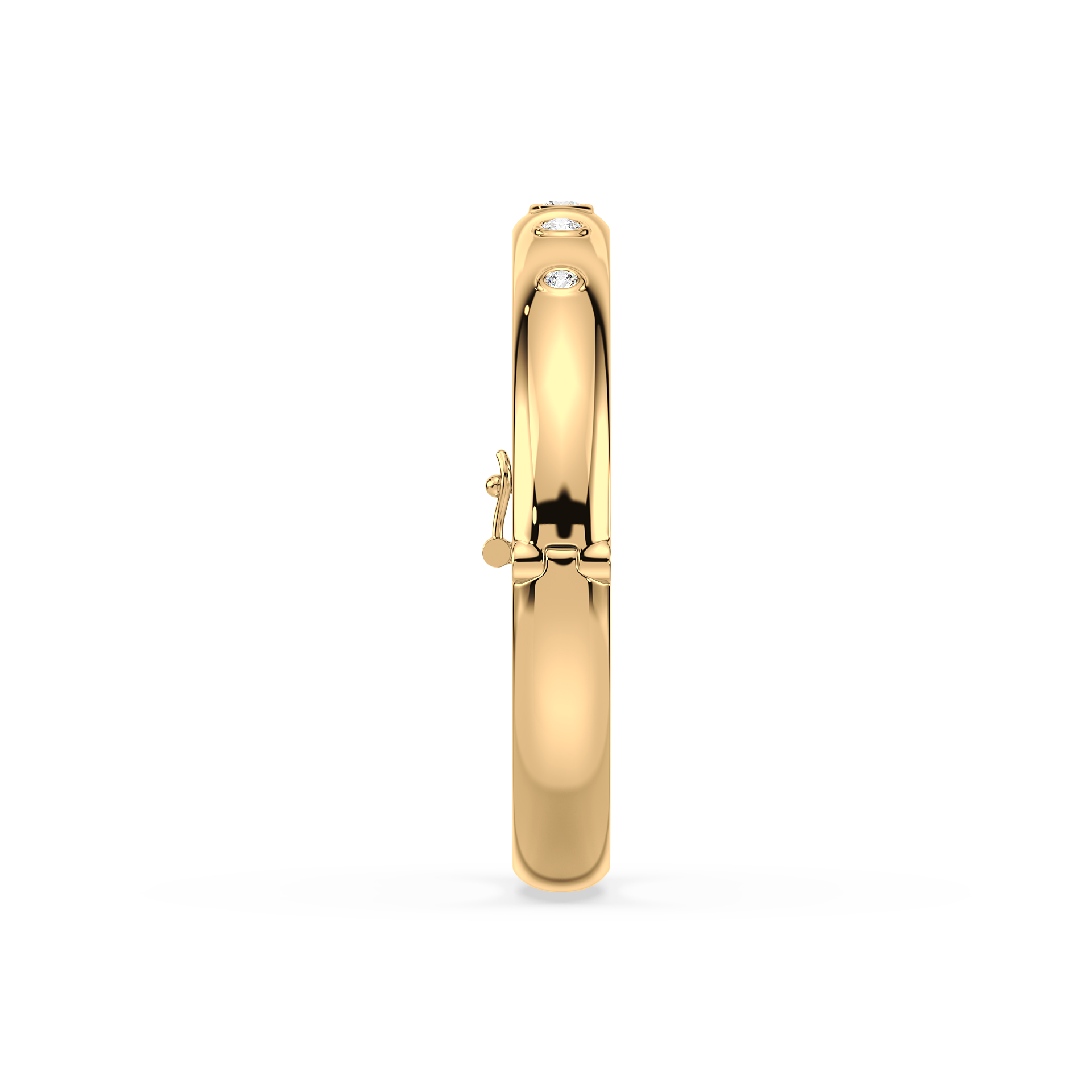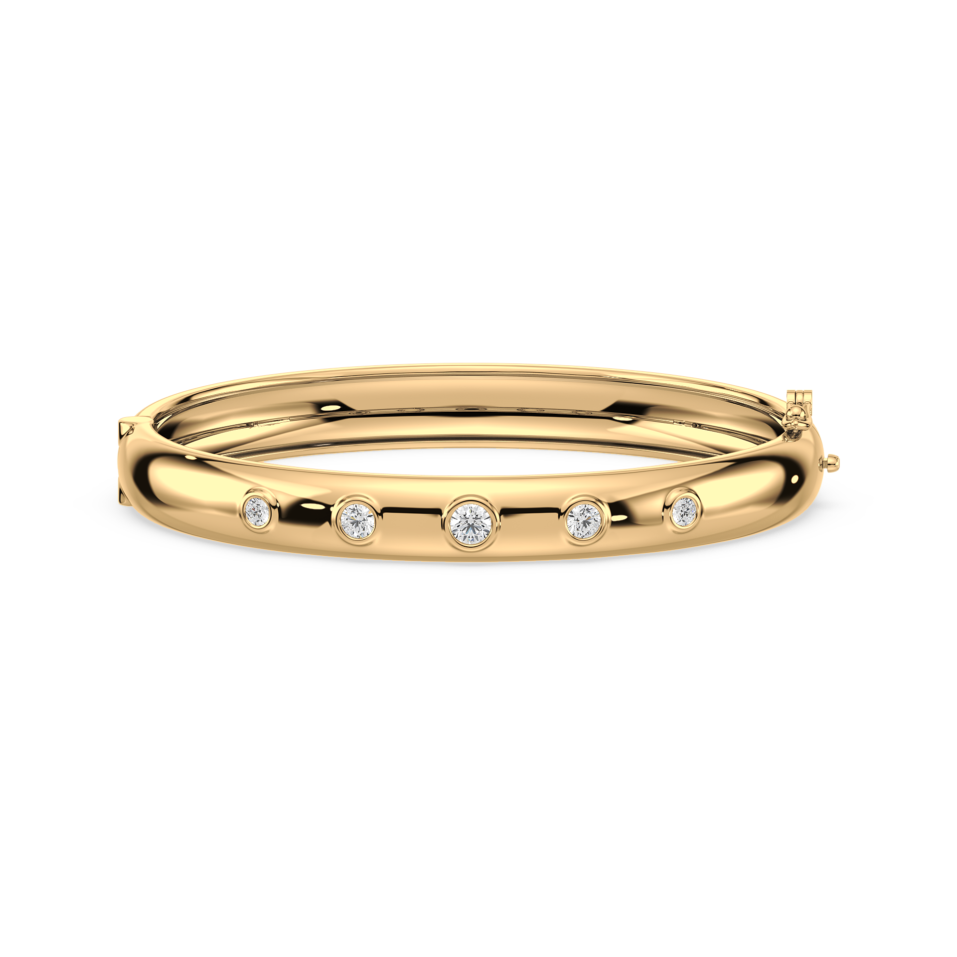 Designed for versatility, this stackable bezel bracelet features a row of bezel set diamonds, offering a continuous line of brilliance. Whether worn alone or stacked with other pieces, it’s the perfect way to add timeless elegance to your collection.