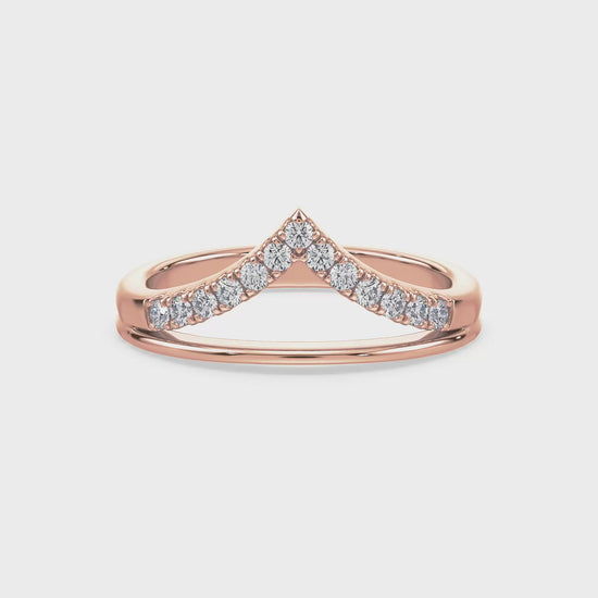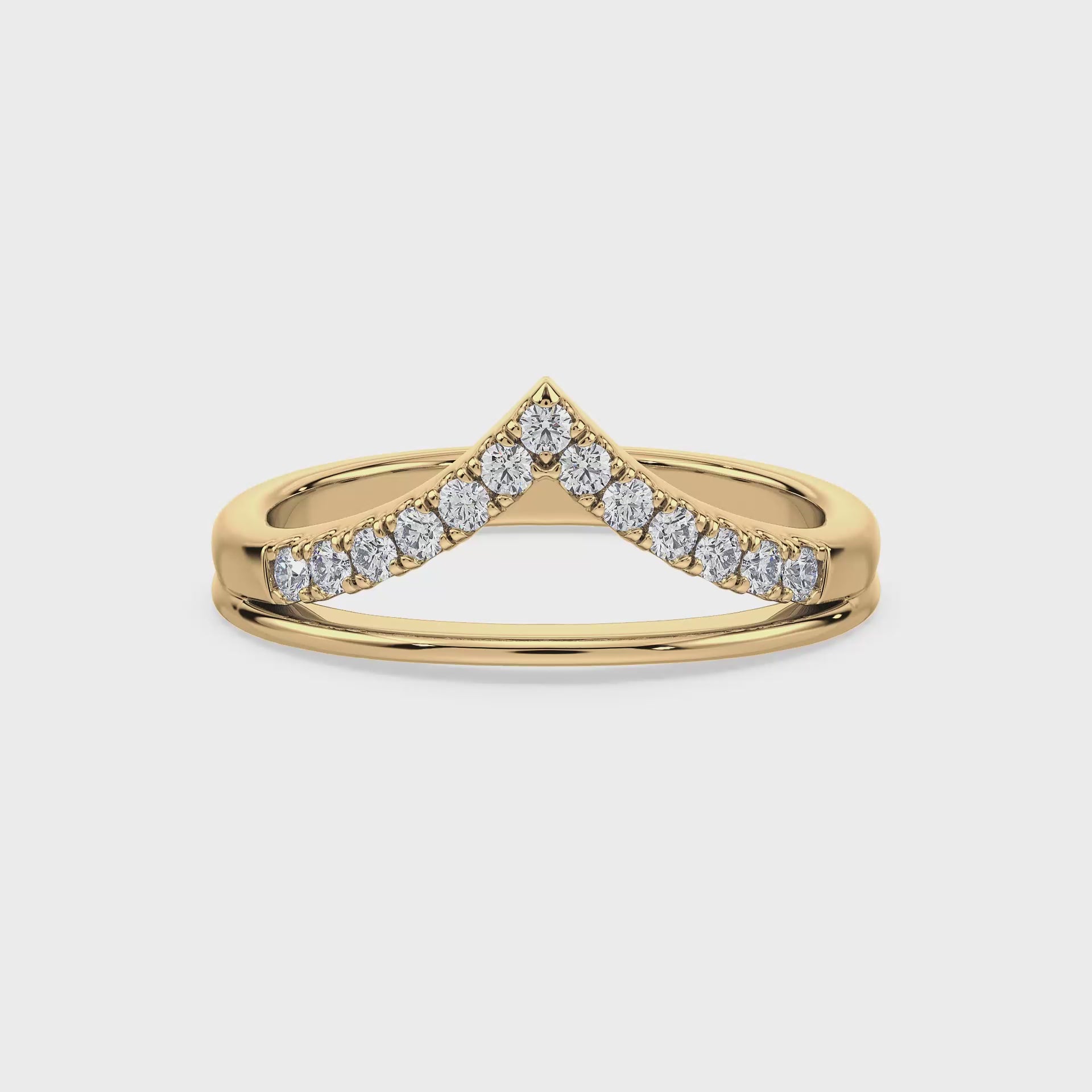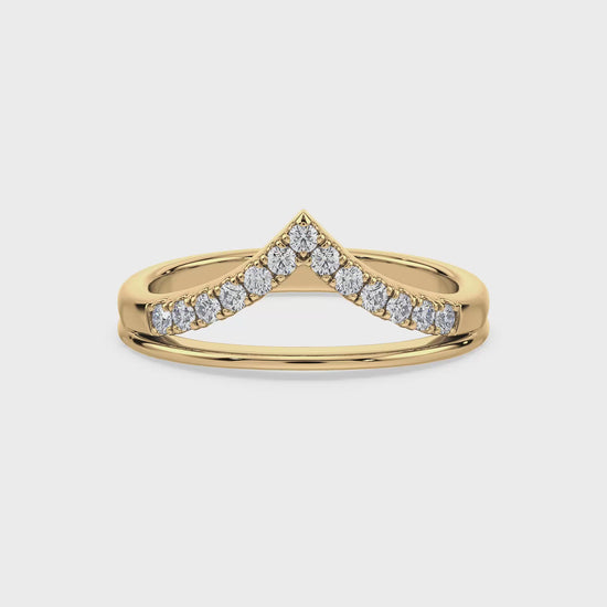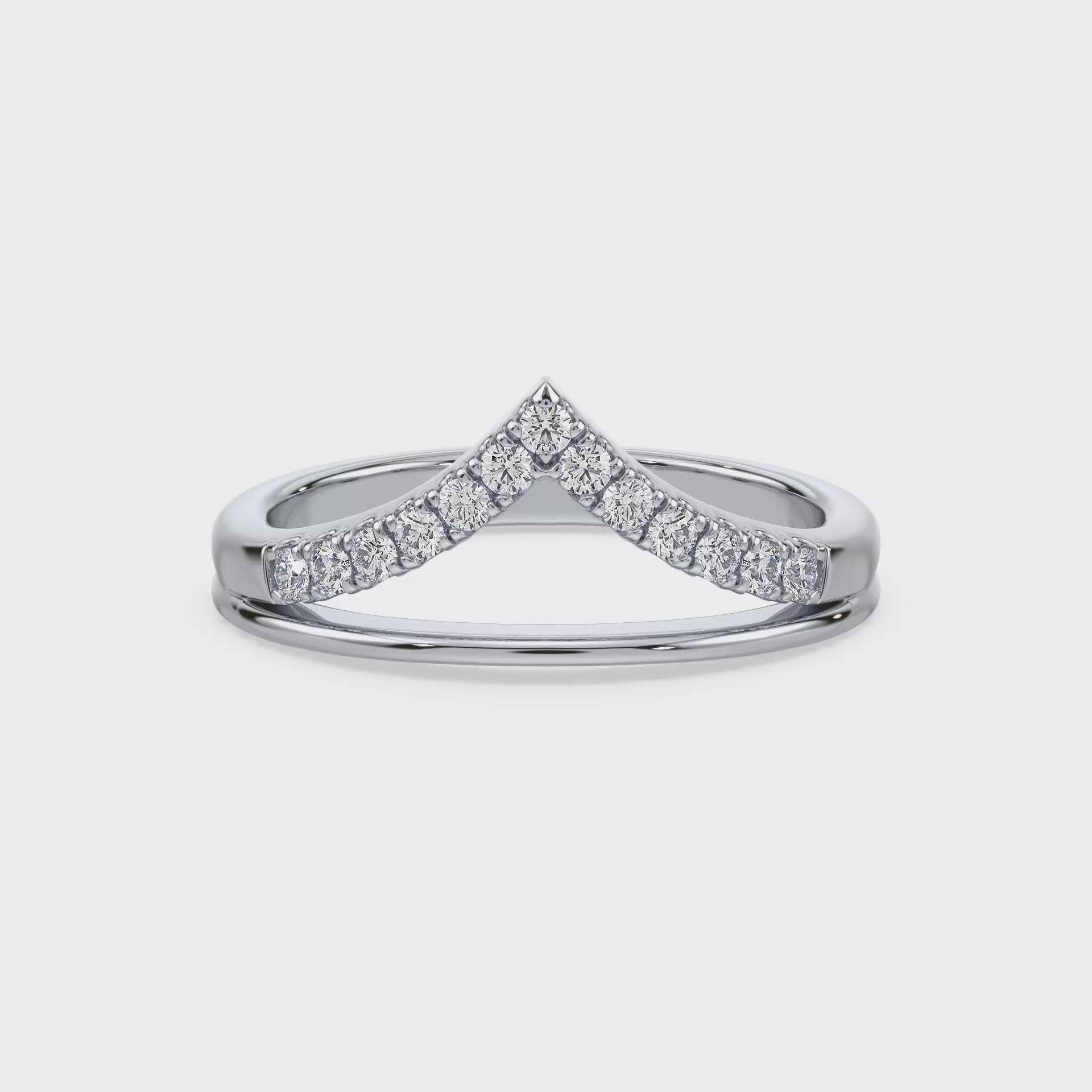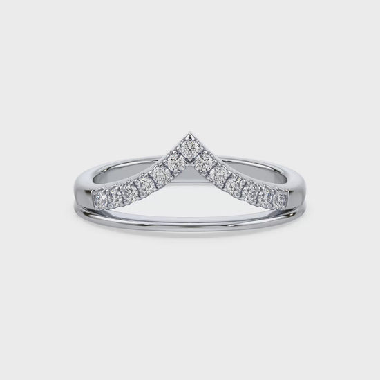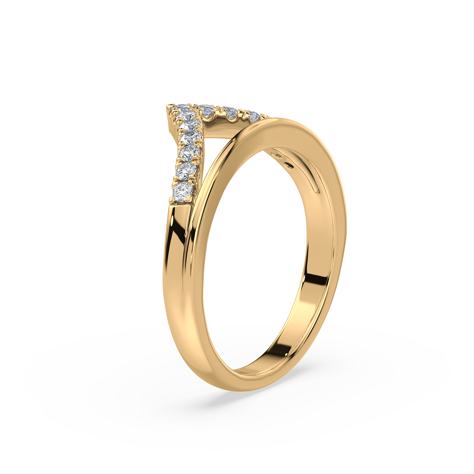 The Vivid V Diamond Ring features a bold, V-shaped band adorned with dazzling diamonds. The unique shape and sparkling stones make this ring a modern statement piece, ideal for those who love to stand out with their jewellery choices.